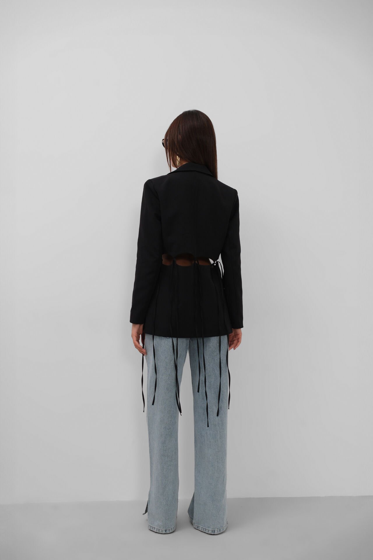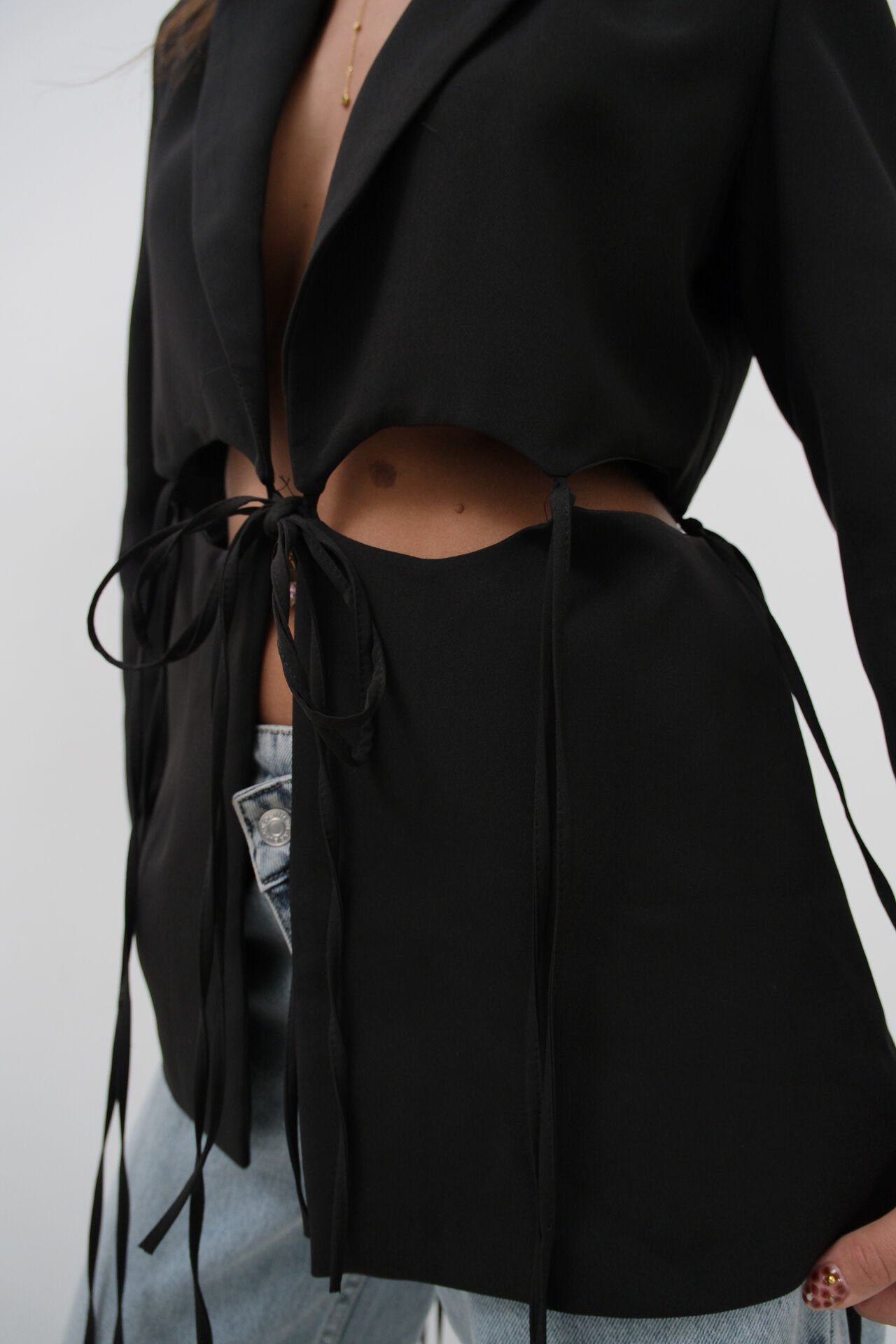 Toptan Bağcık Detaylı Tasarım Siyah Ceket