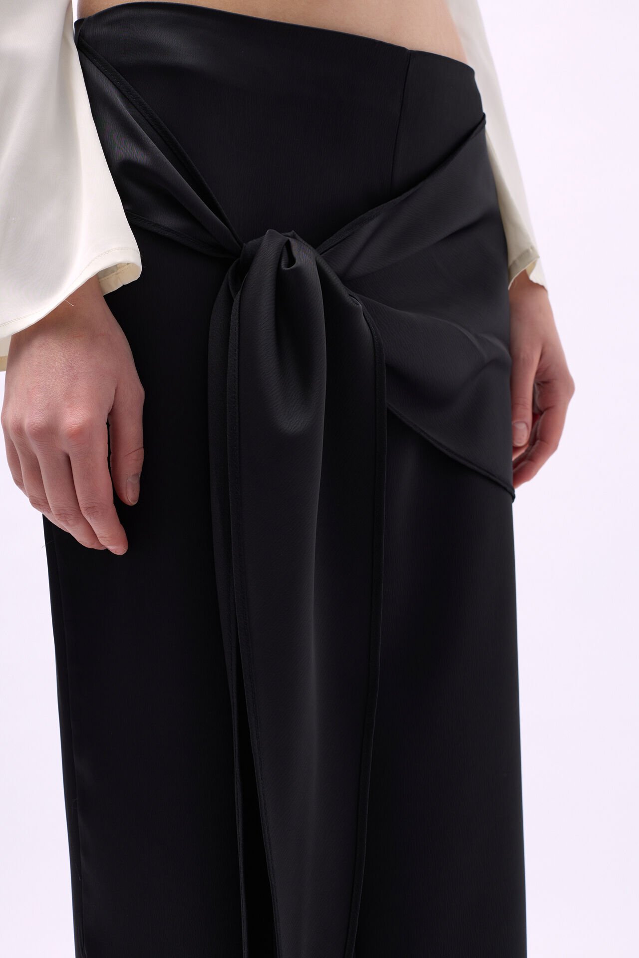 Toptan Önden Bağlamalı Siyah Saten Pantolon