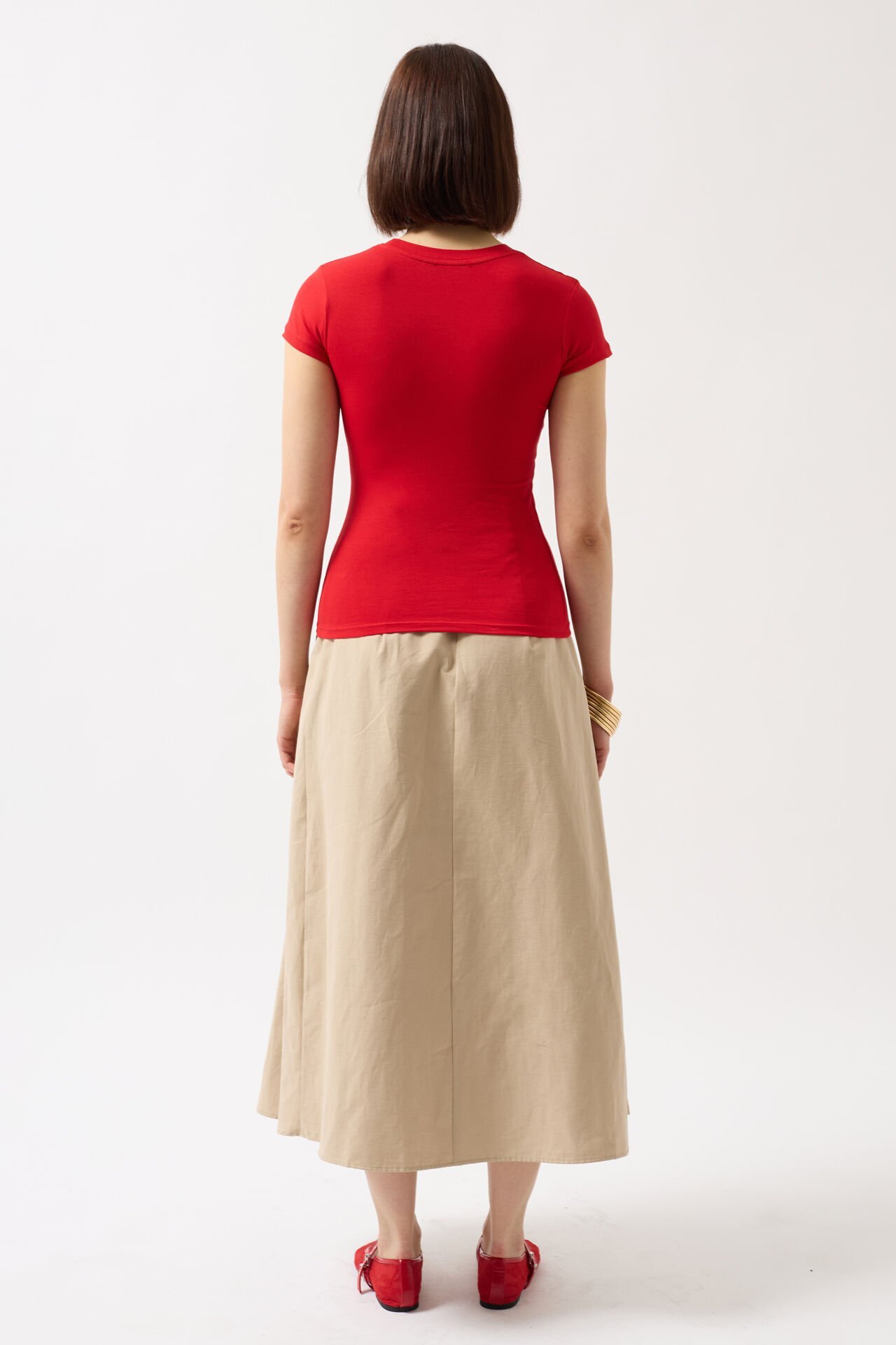 Toptan Baskılı Likralı Crop Kırmızı T-Shirt