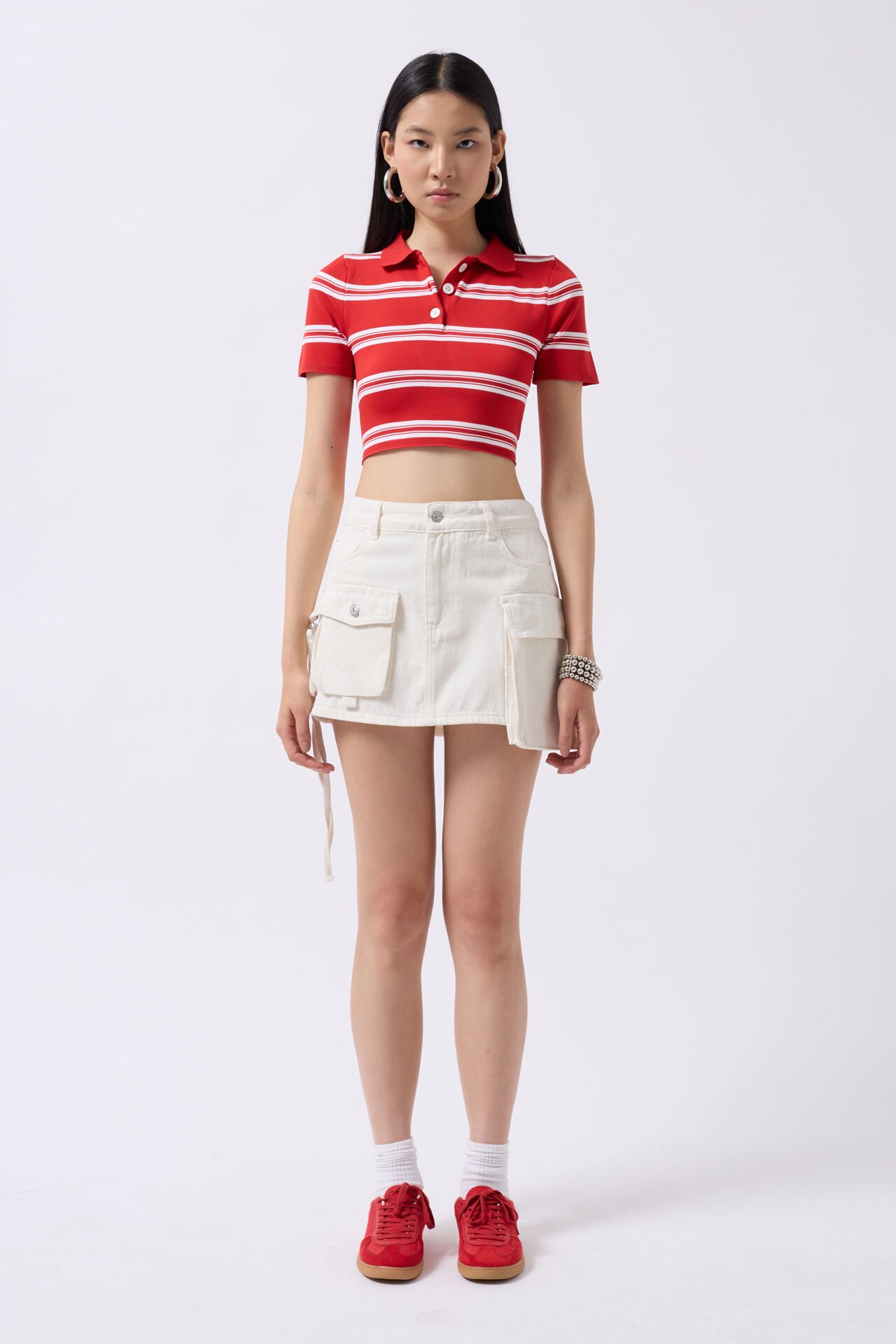 Toptan Kargo Cep Mini Beyaz Kot Etek