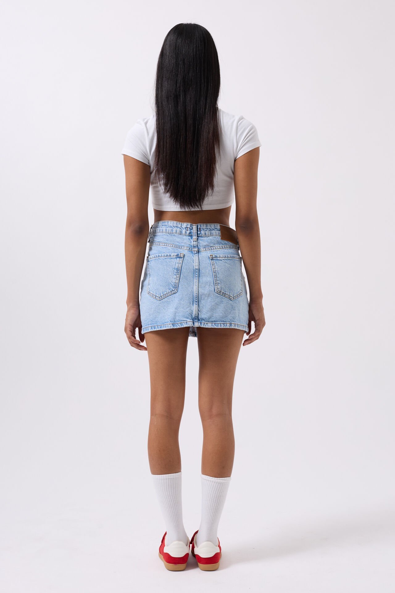 Toptan Asimetrik Bel Denim Mini Mavi Etek