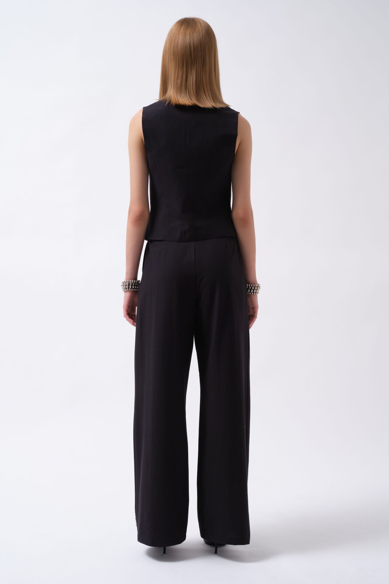 Toptan Çift Pileli Palazzo Lacivert Pantolon