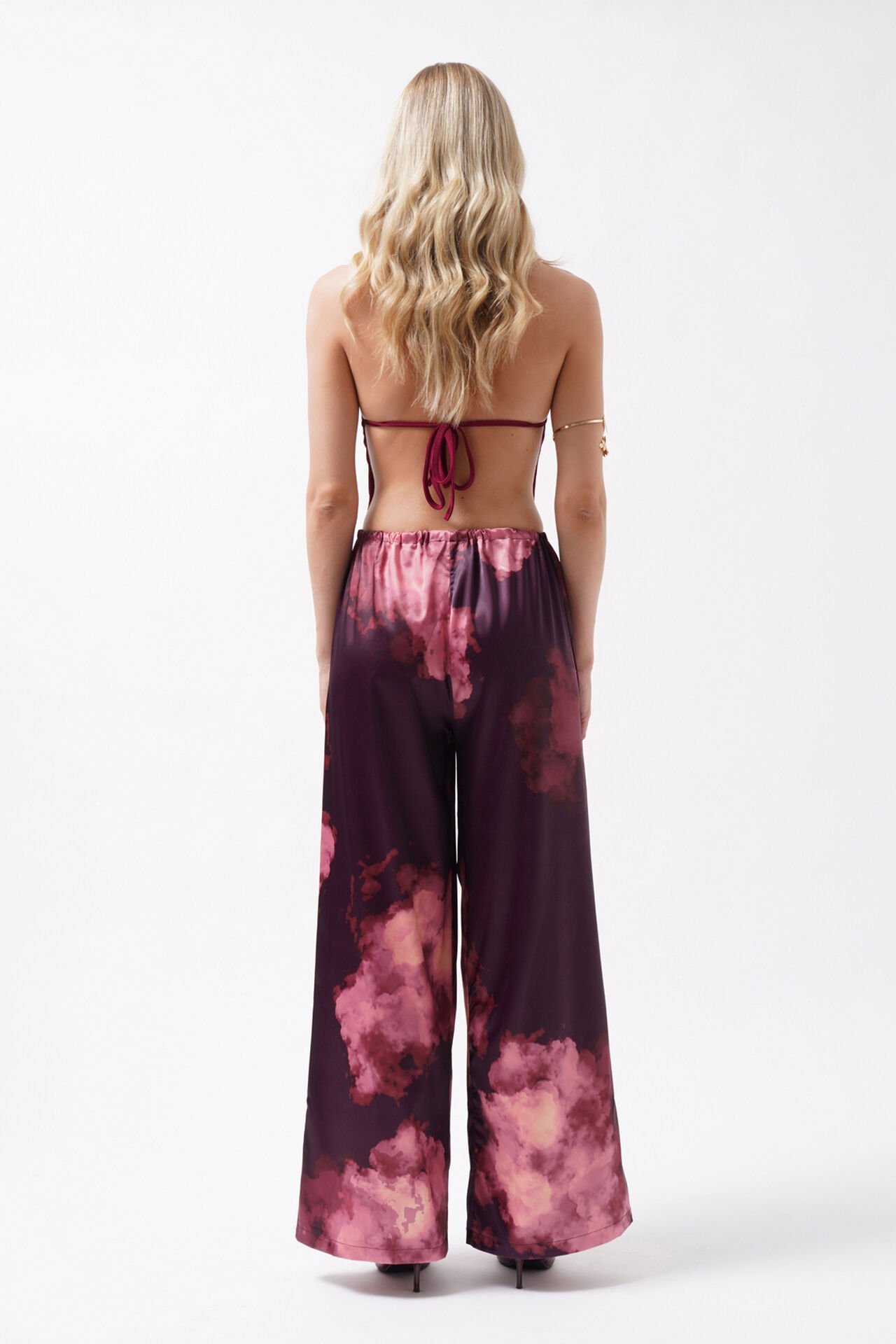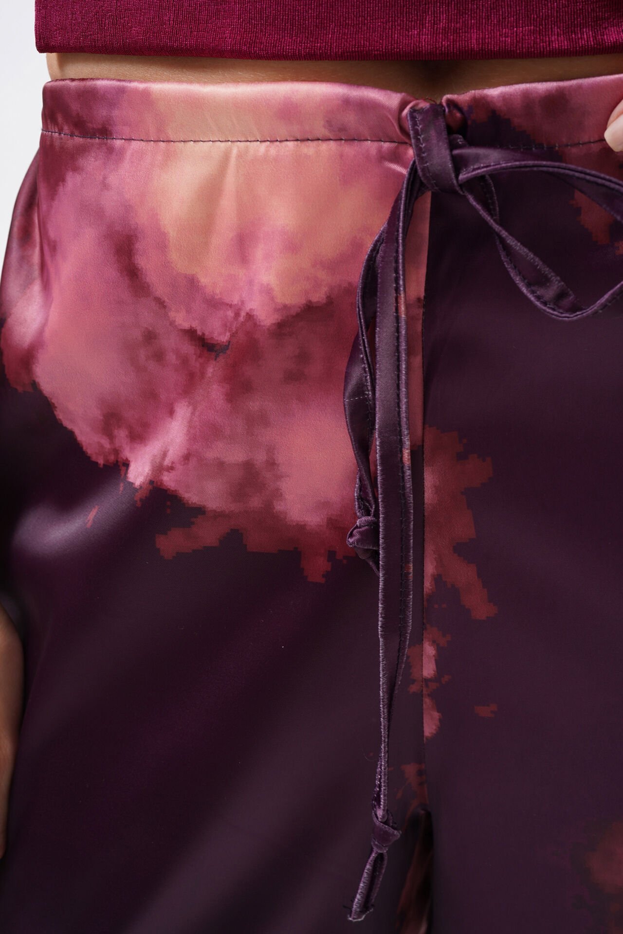 Toptan Bel Lastikli Desenli Saten Bordo Pantolon