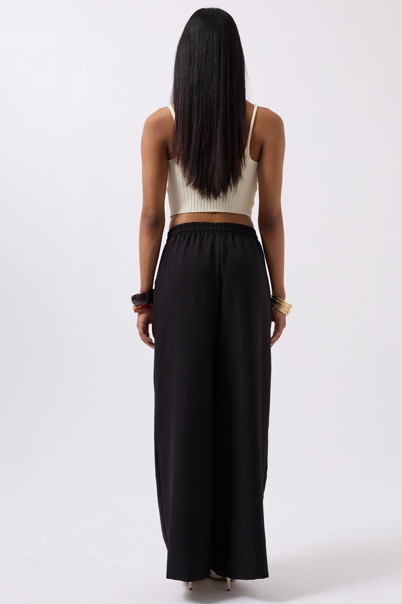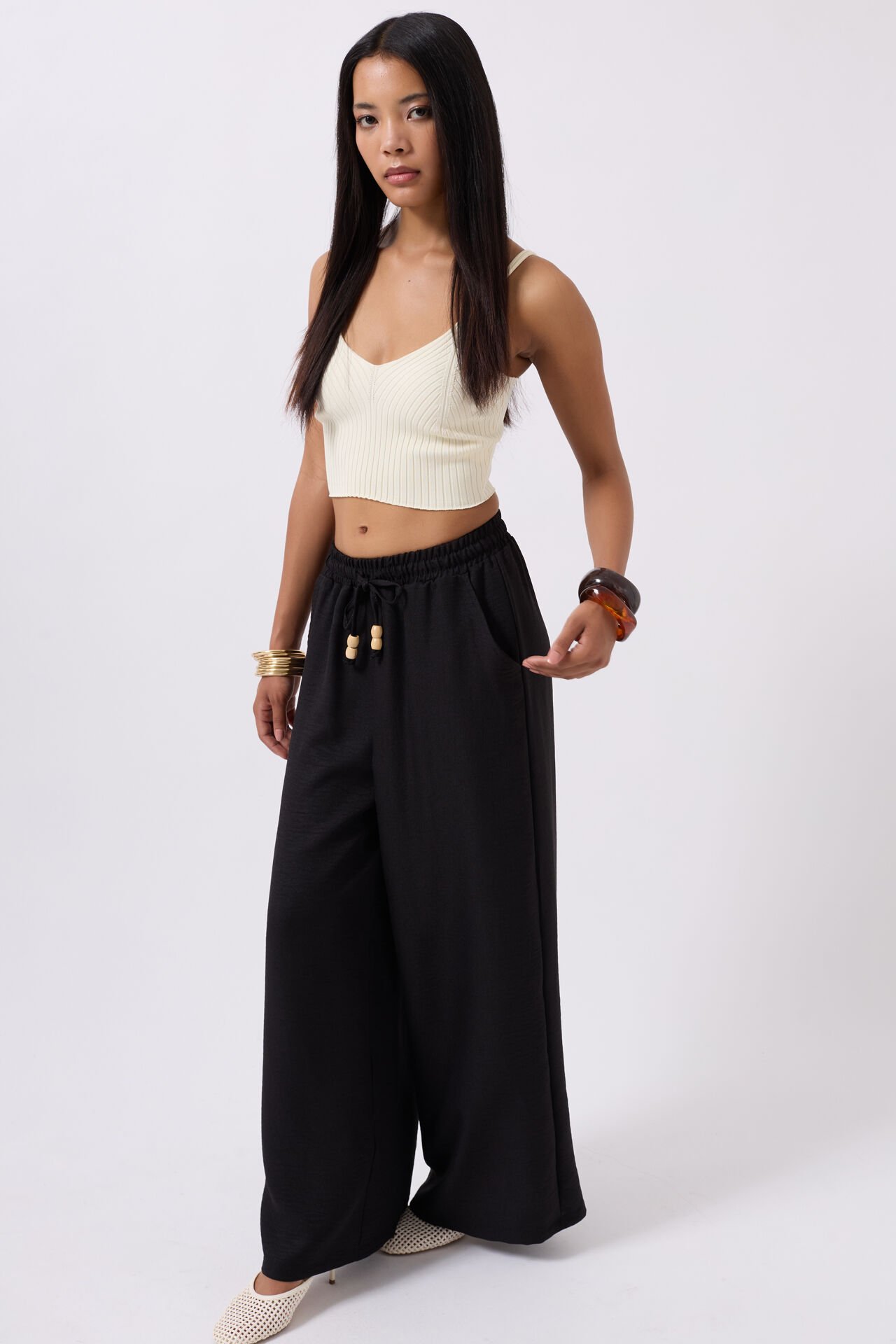 Toptan Beli Lastikli Bağlama Detaylı Siyah Pantolon