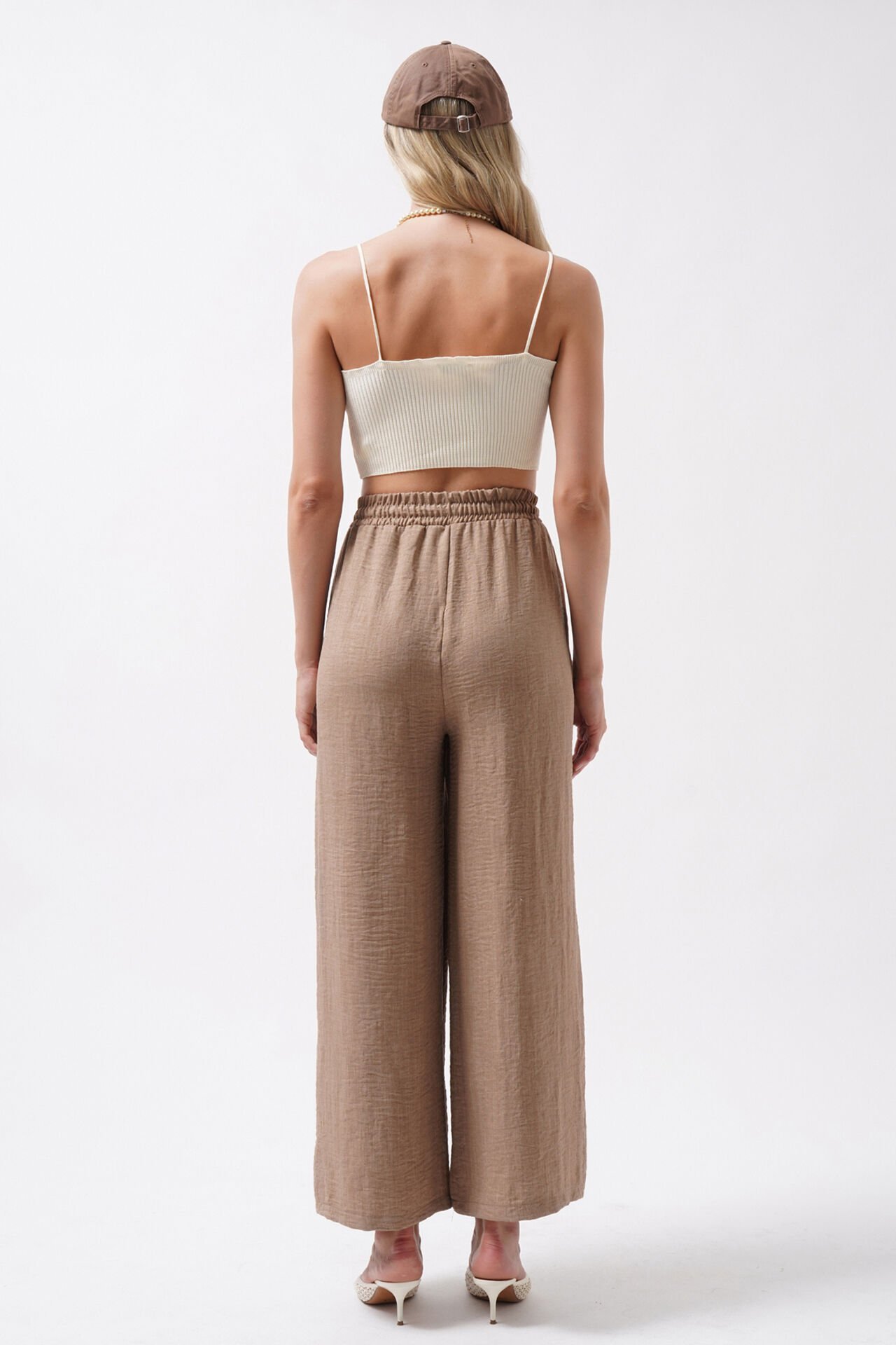 Toptan Beli Lastikli Bağlama Detaylı Kahverengi Pantolon
