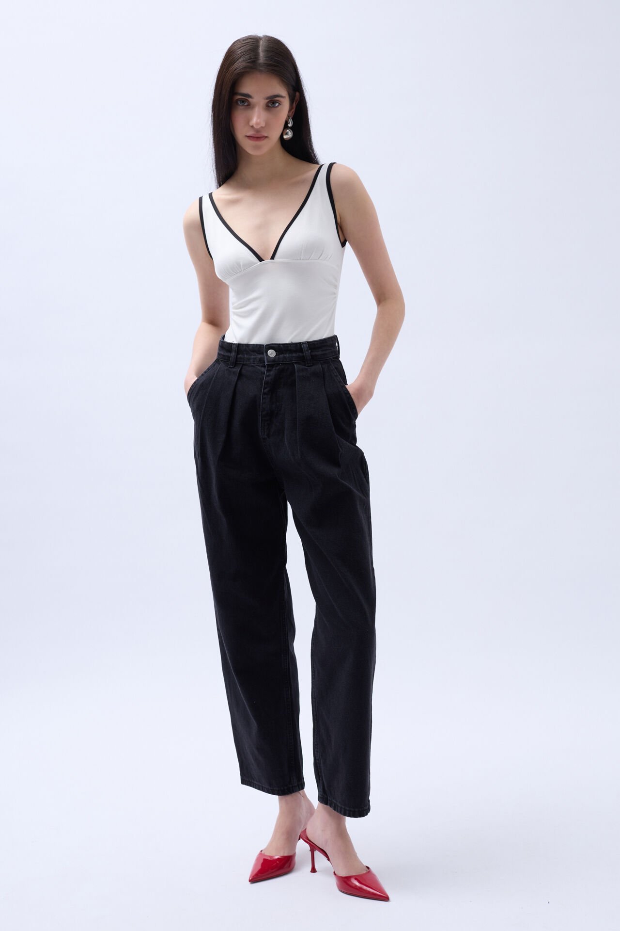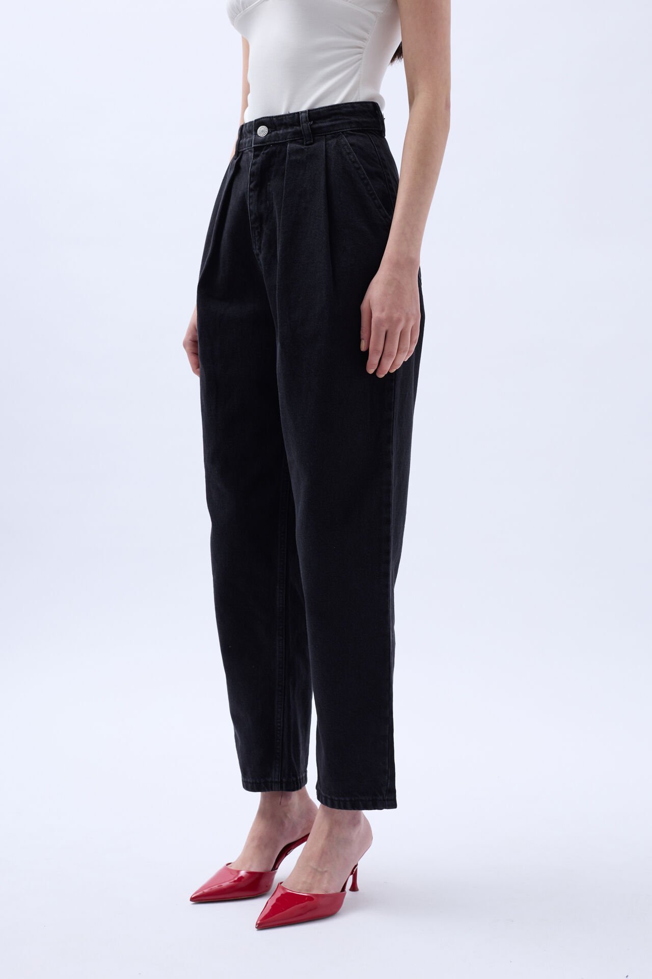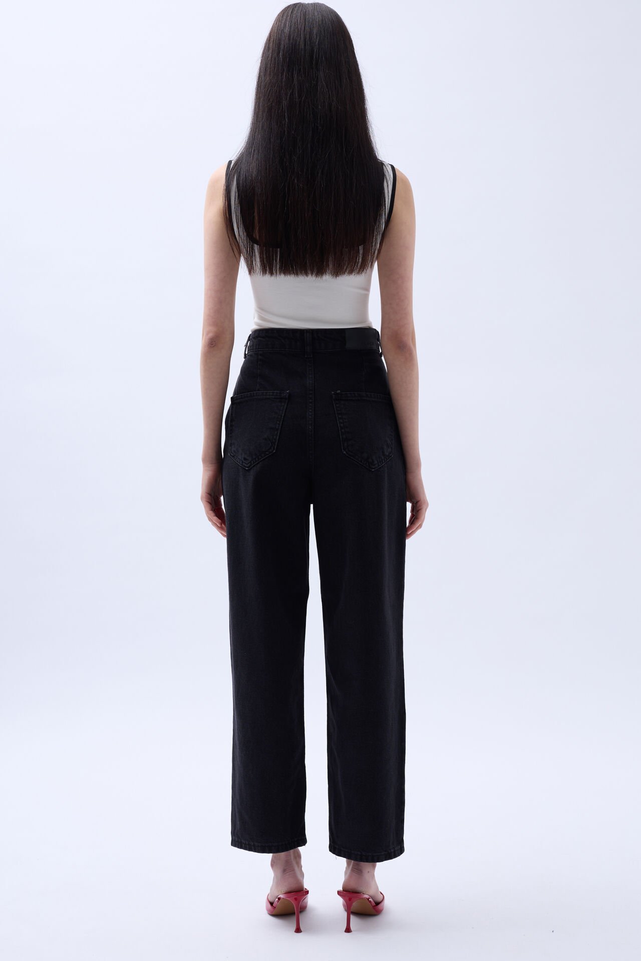 Darted, Five Pockets, High Waist, Mom Jean, Bell-bottomed, Zippered Front, Metal Buttons