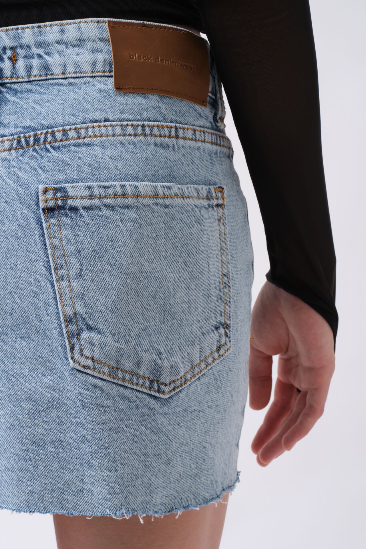 Toptan Lazer Kesim Denim Mini Mavi Etek