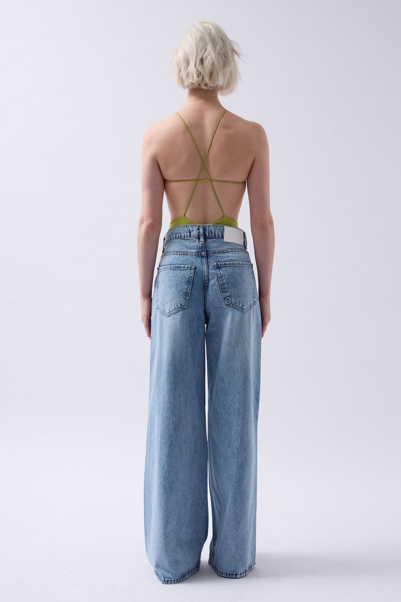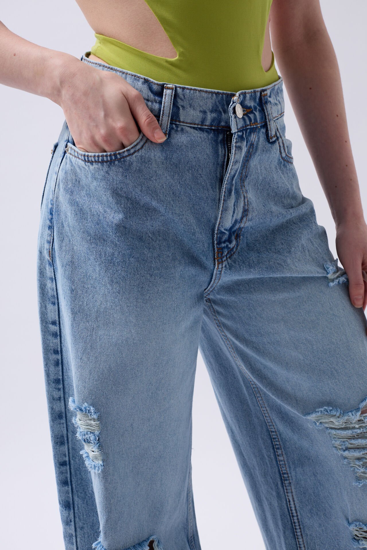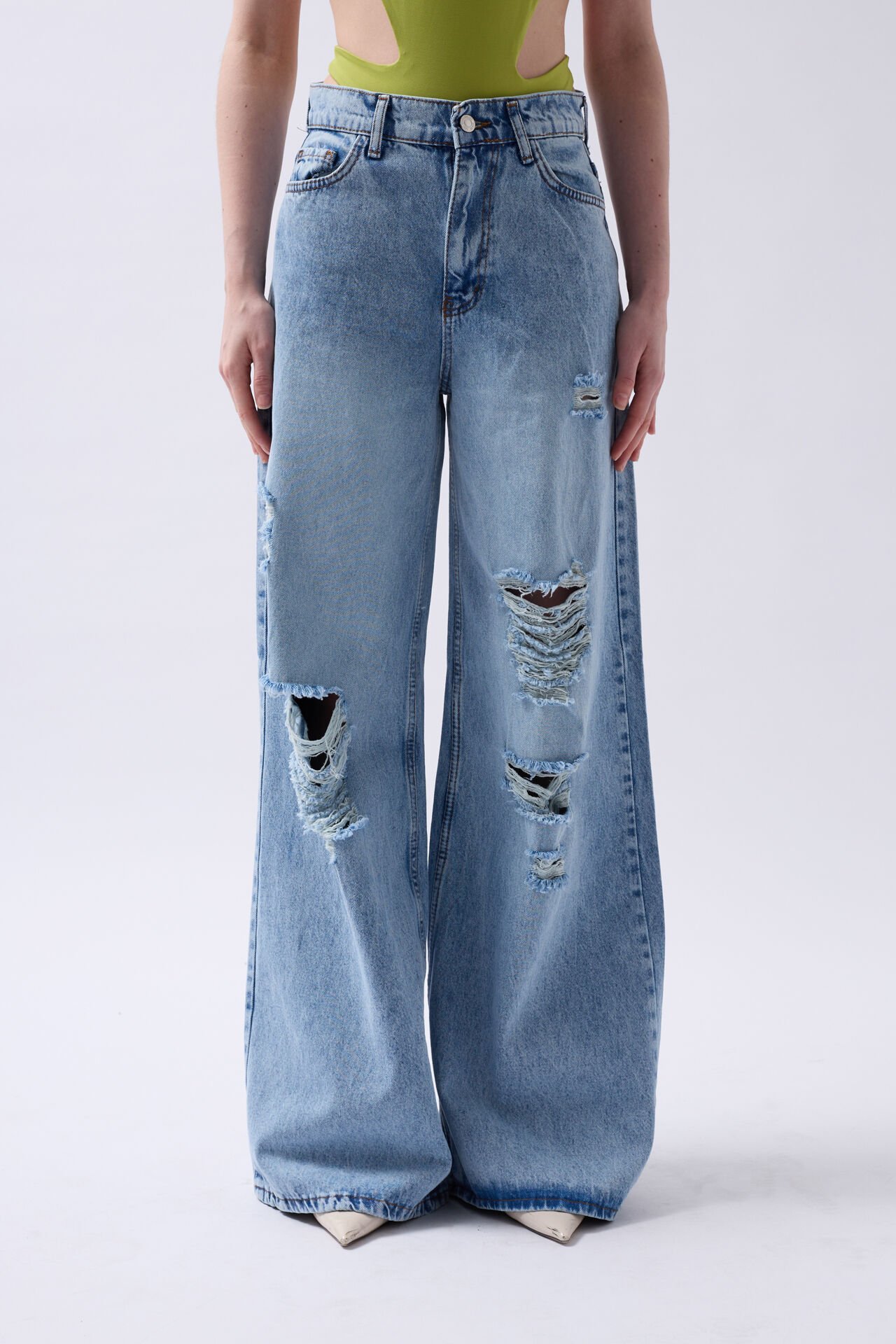 Toptan Lazer Kesim Geniş Paça Yüksek Bel Mavi Jean