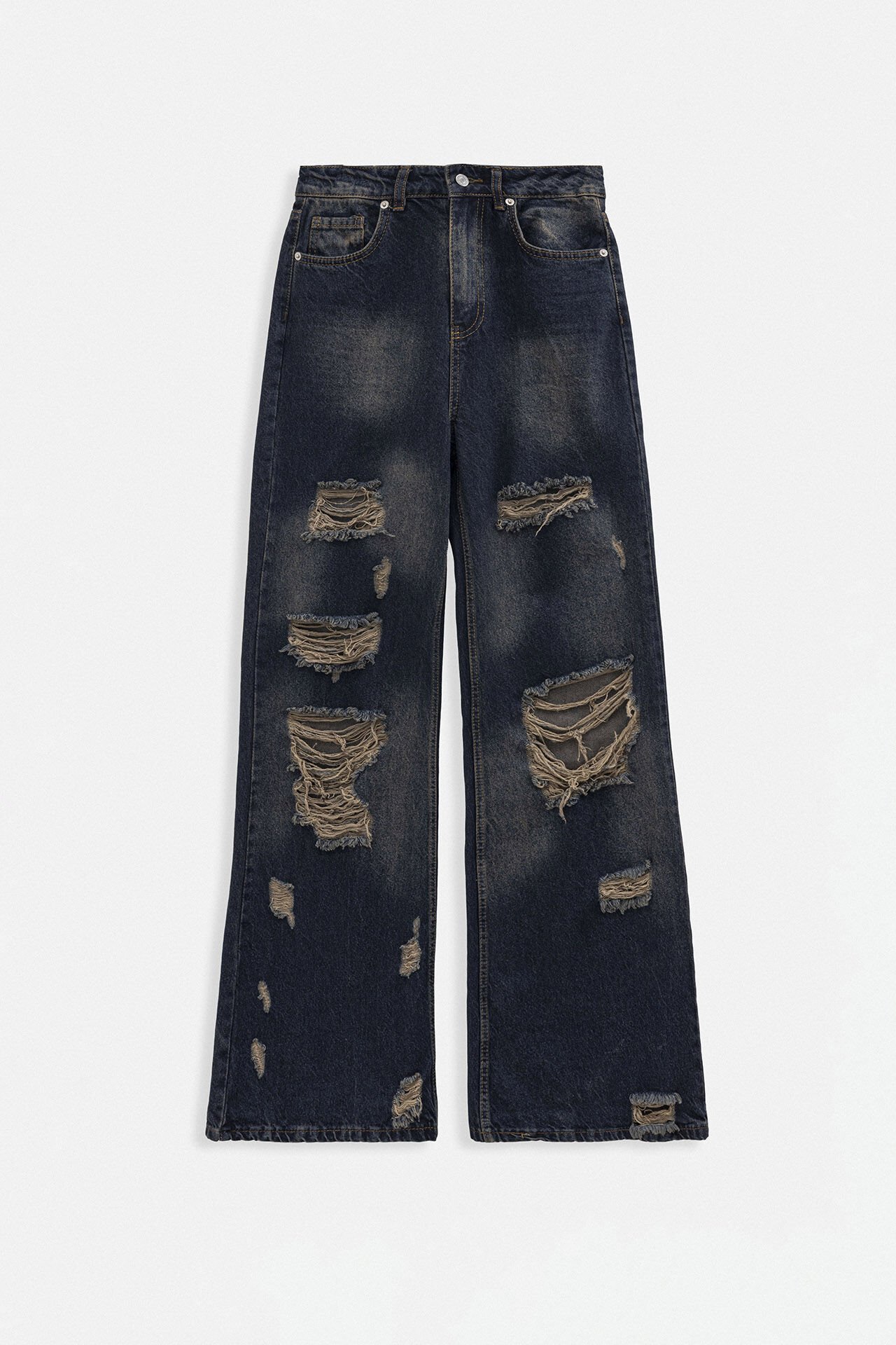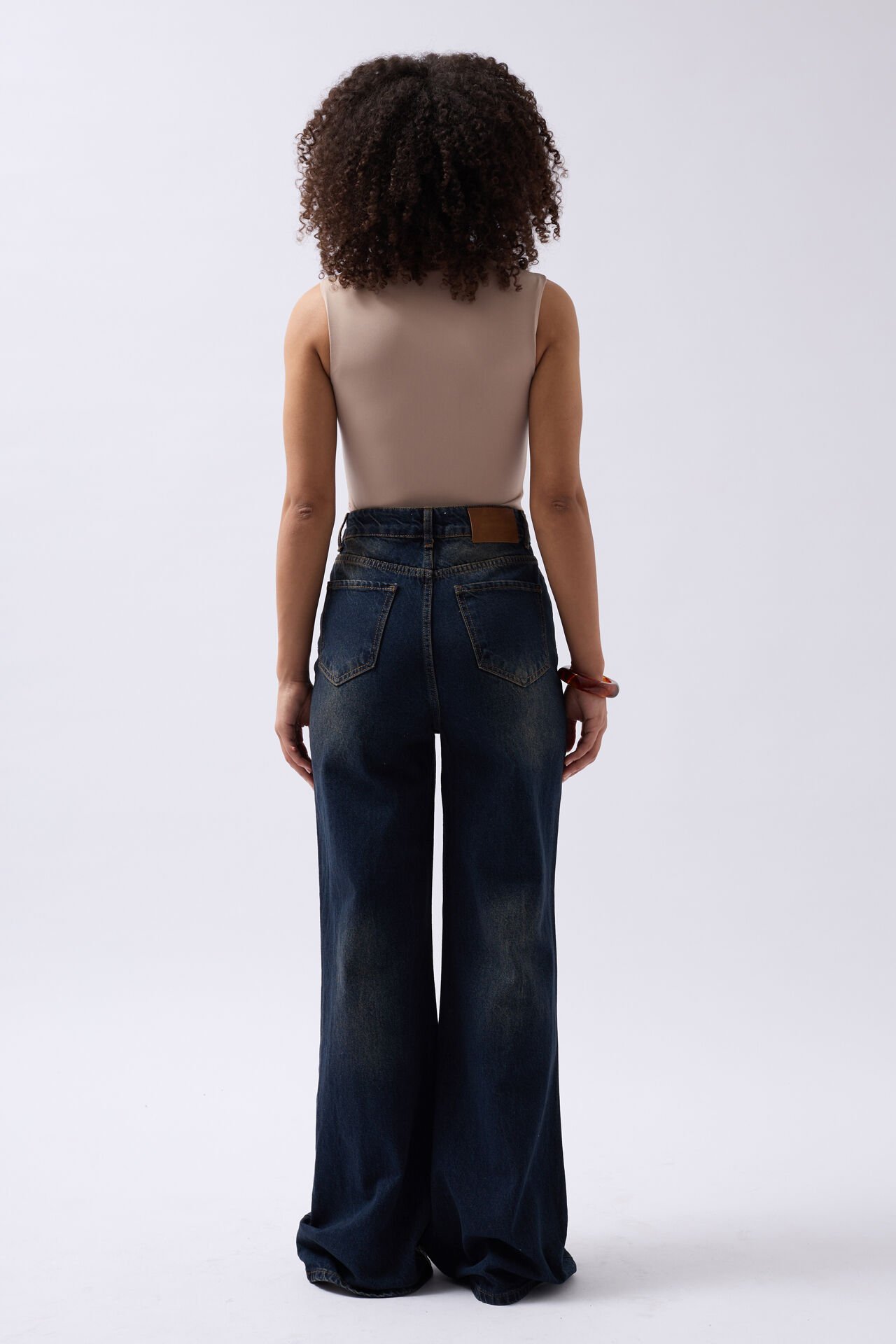 Toptan Lazerli Bol Paça Yıkamalı Mavi Jean