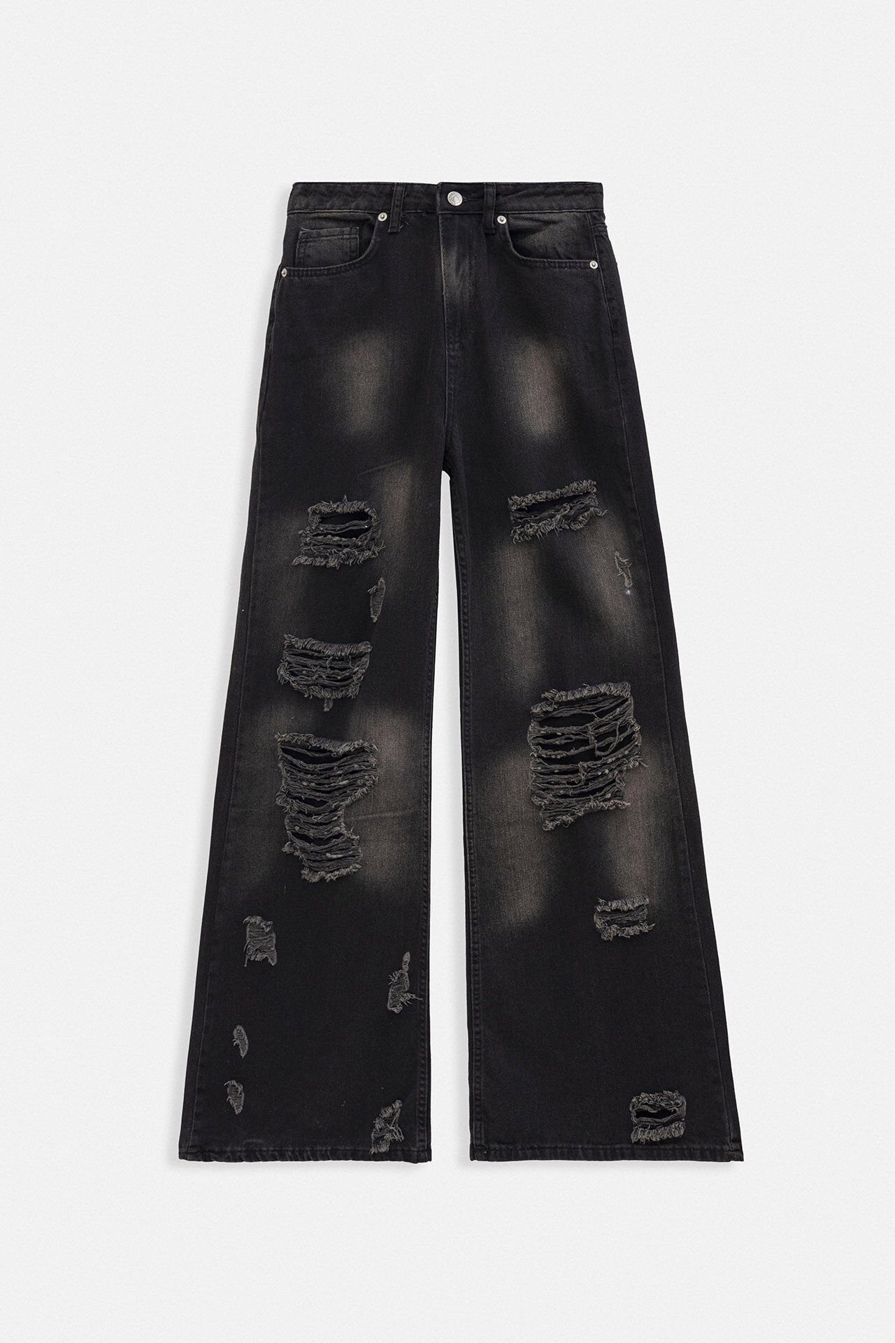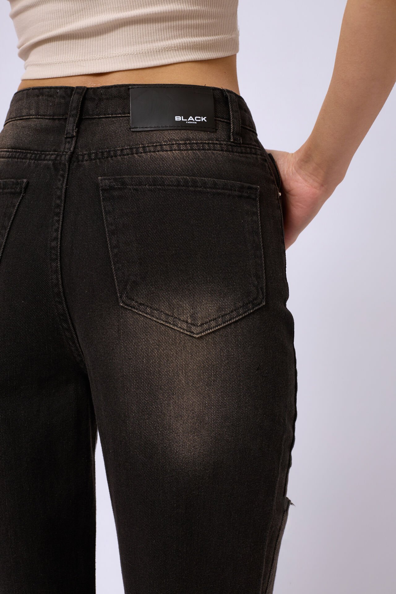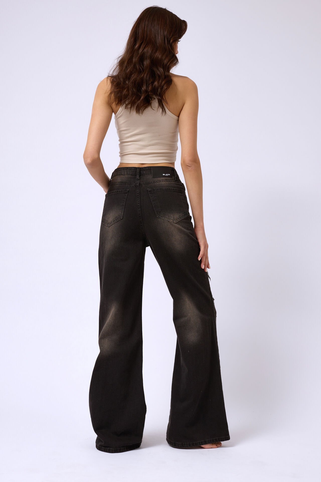 Toptan Lazerli Bol Paça Yıkamalı Siyah Jean
