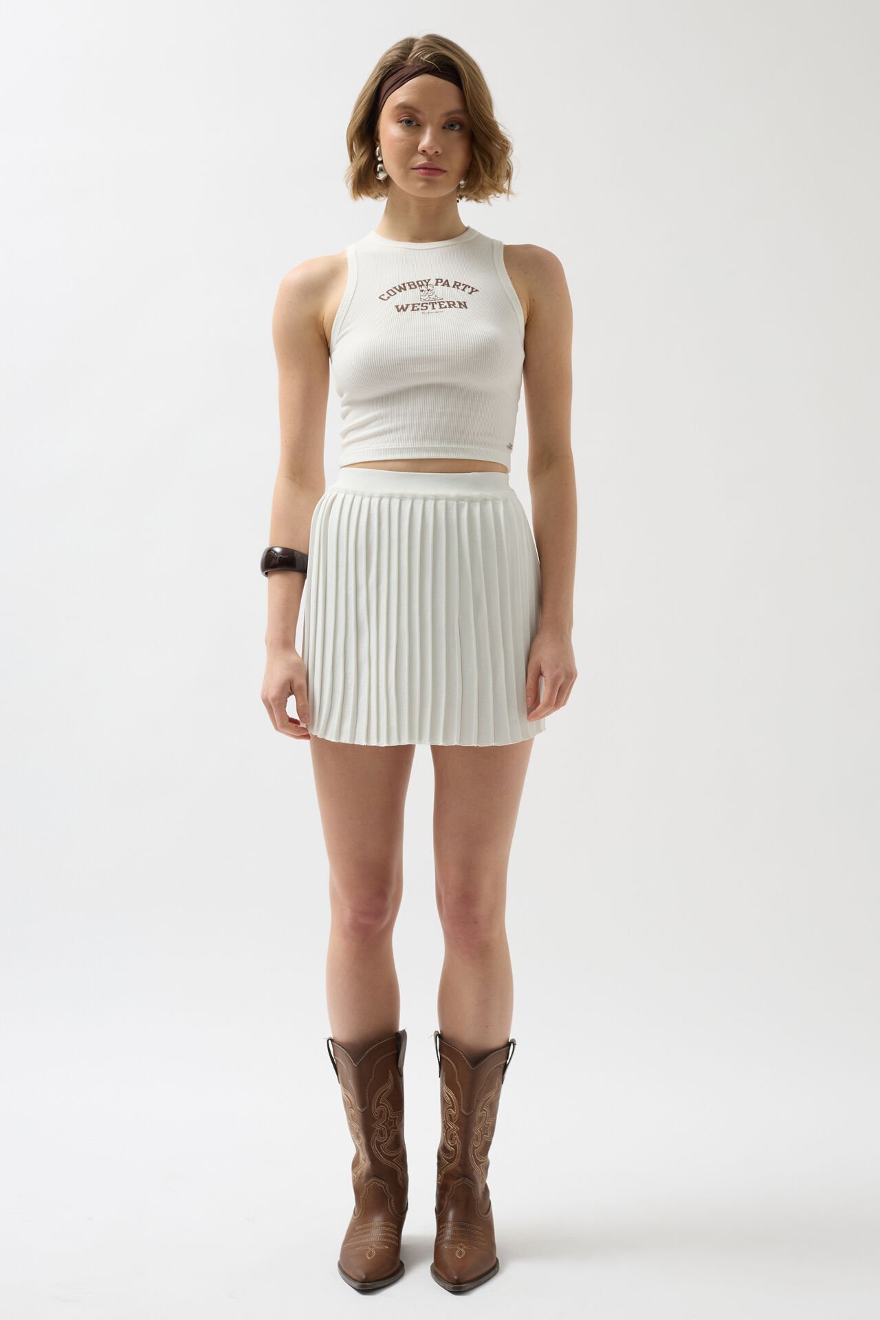 Toptan Piliseli Ekru Triko Etek