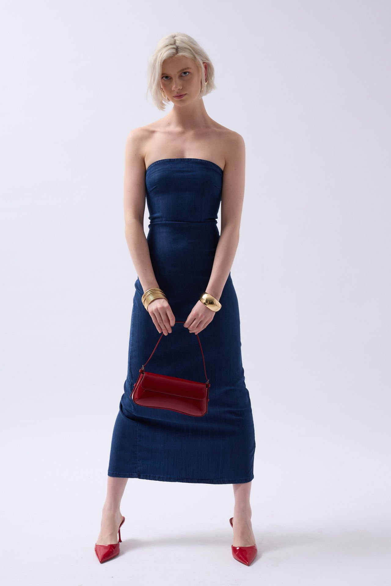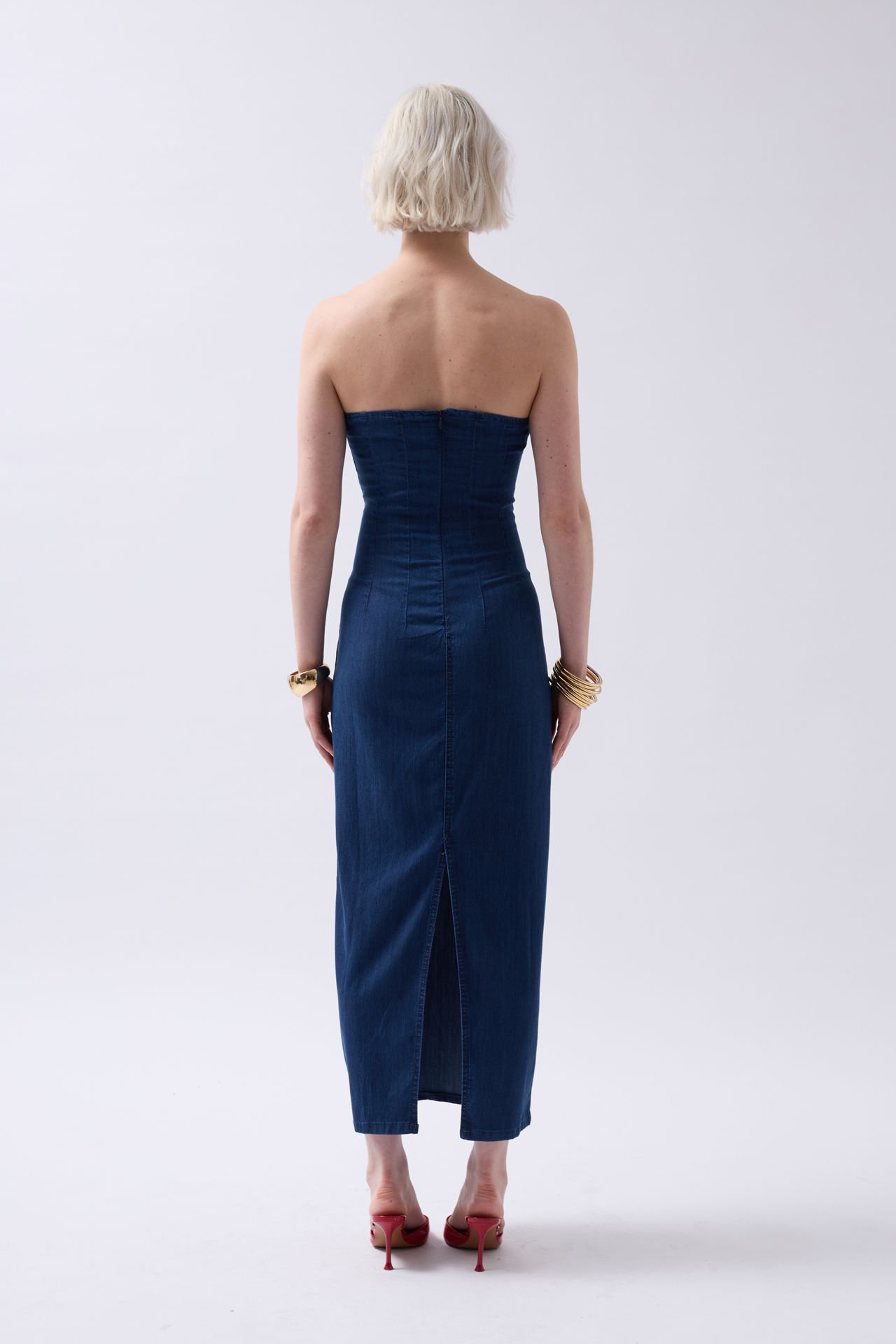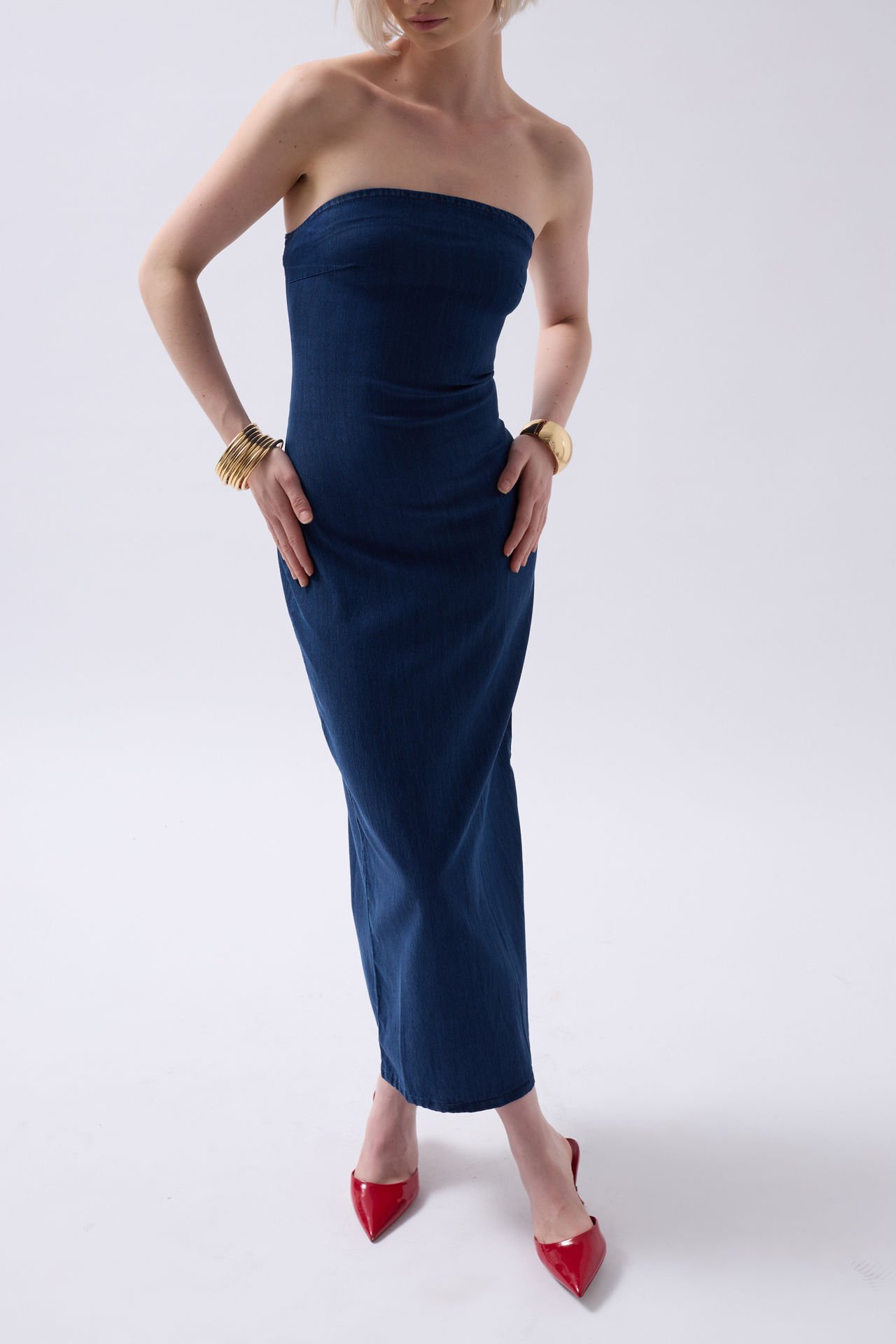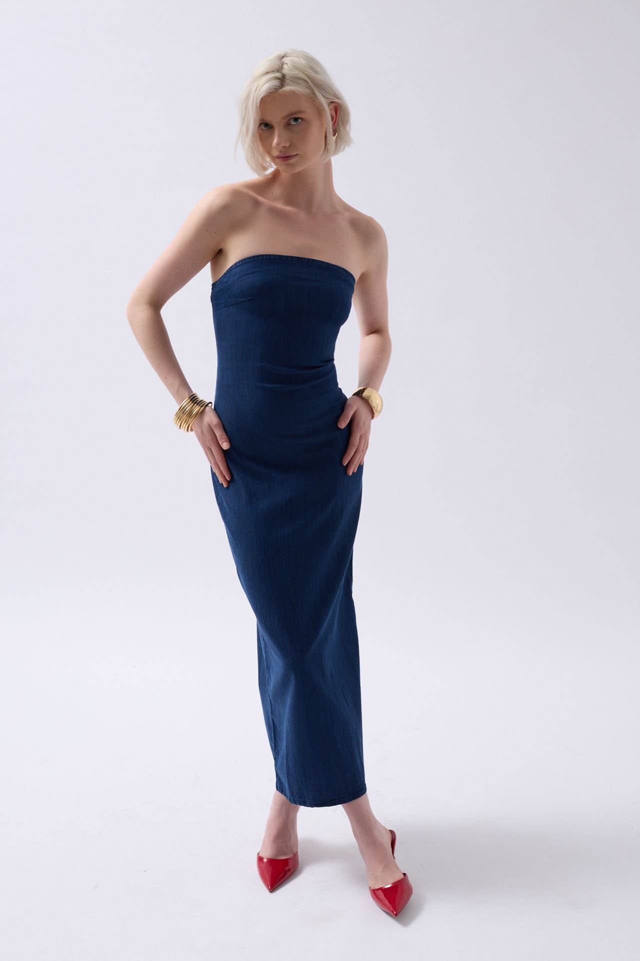 Strapless, Denim, Maxi Length, Body-Concealing, Dress