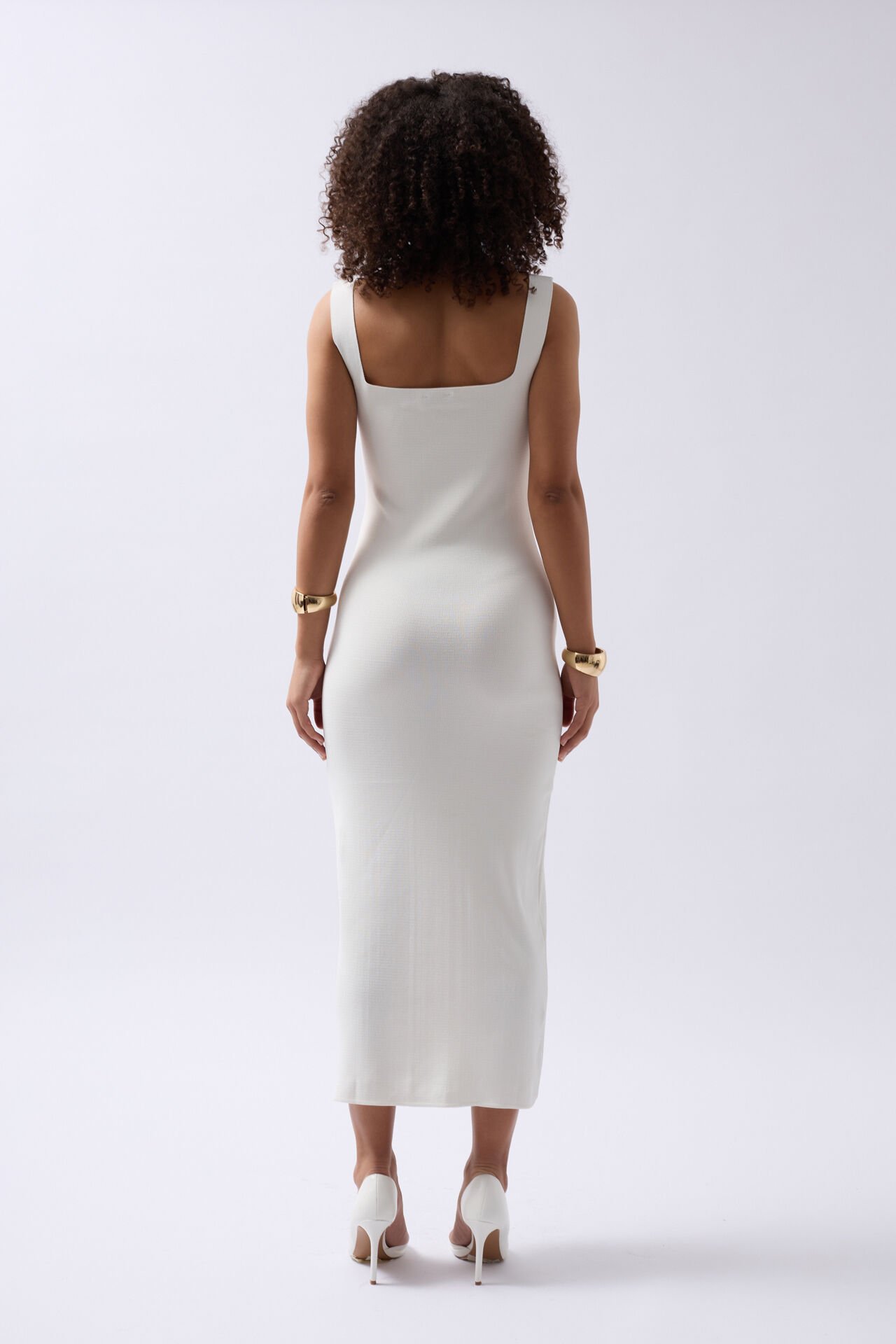 Toptan Kalın Askılı Midi Beyaz Elbise