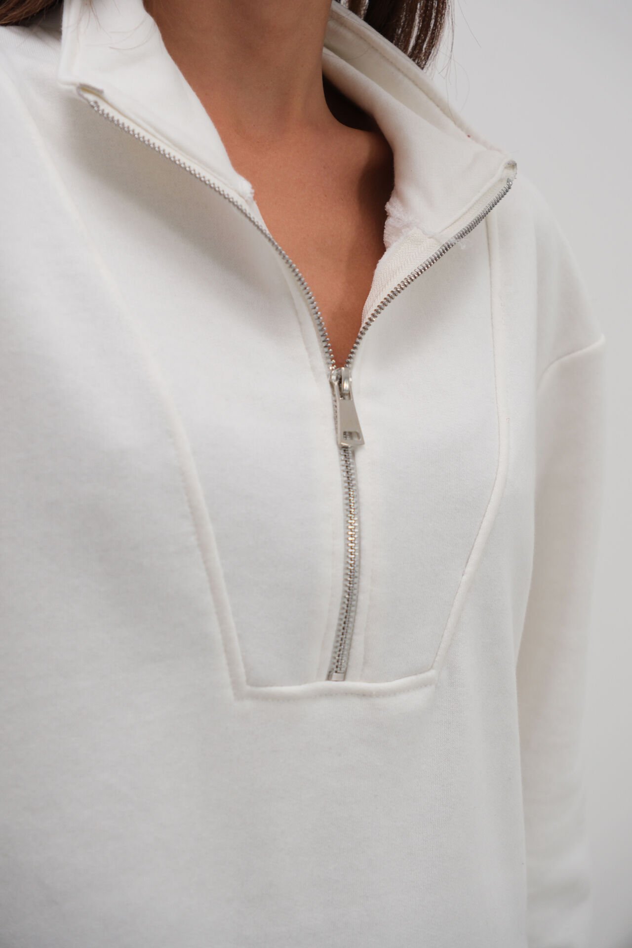 Toptan Fermuar ve Dikiş Detaylı Ekru Sweatshirt