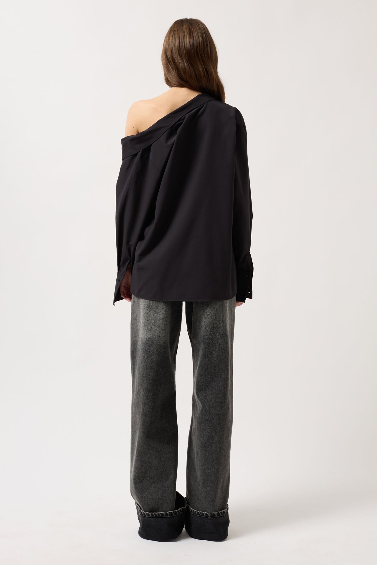 Toptan Asimetrik Şal Yaka Siyah Gömlek
