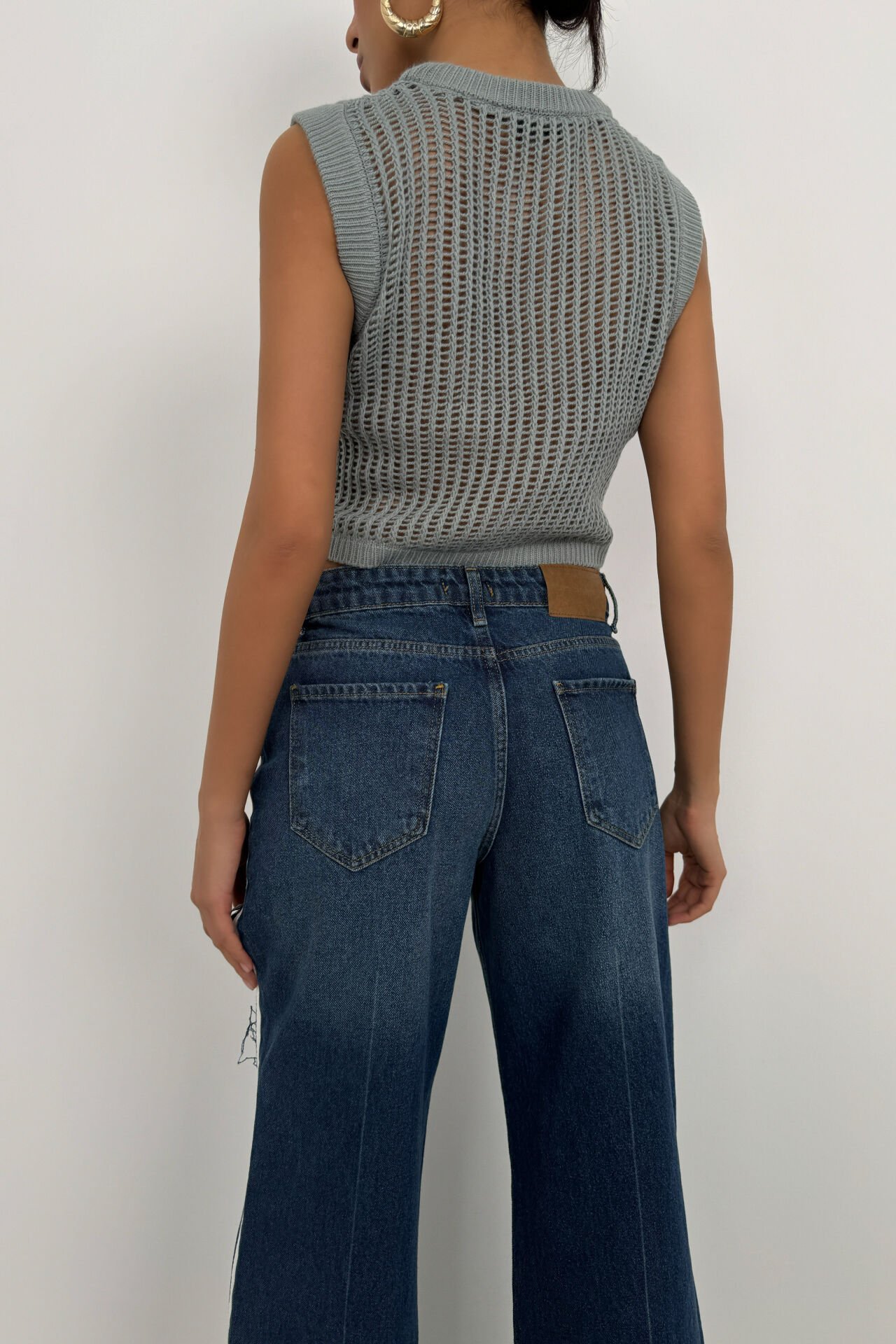 Ажурный трикотаж, Толстый ремень, Круглый вырез, Укороченный крой, Свитер