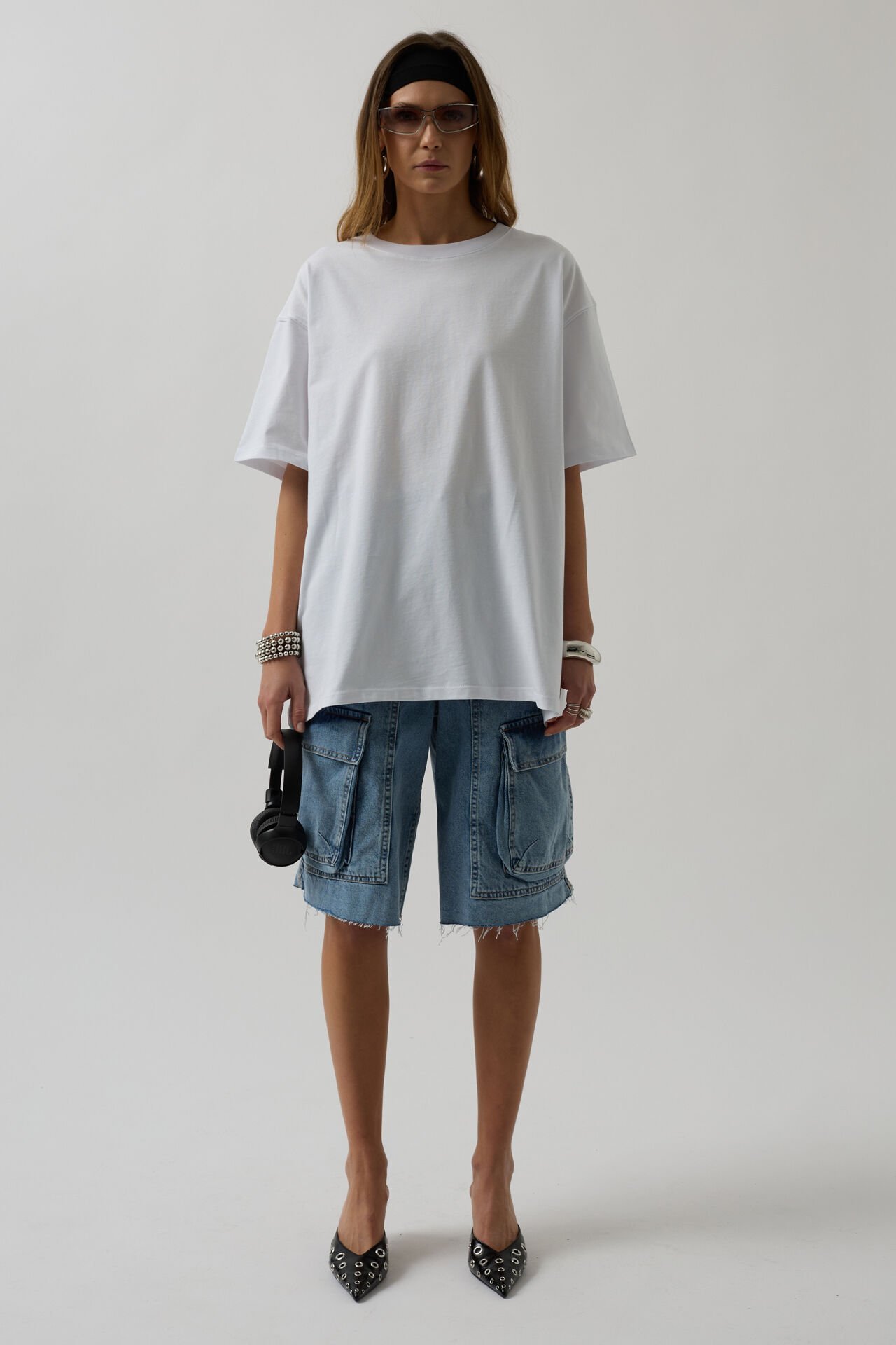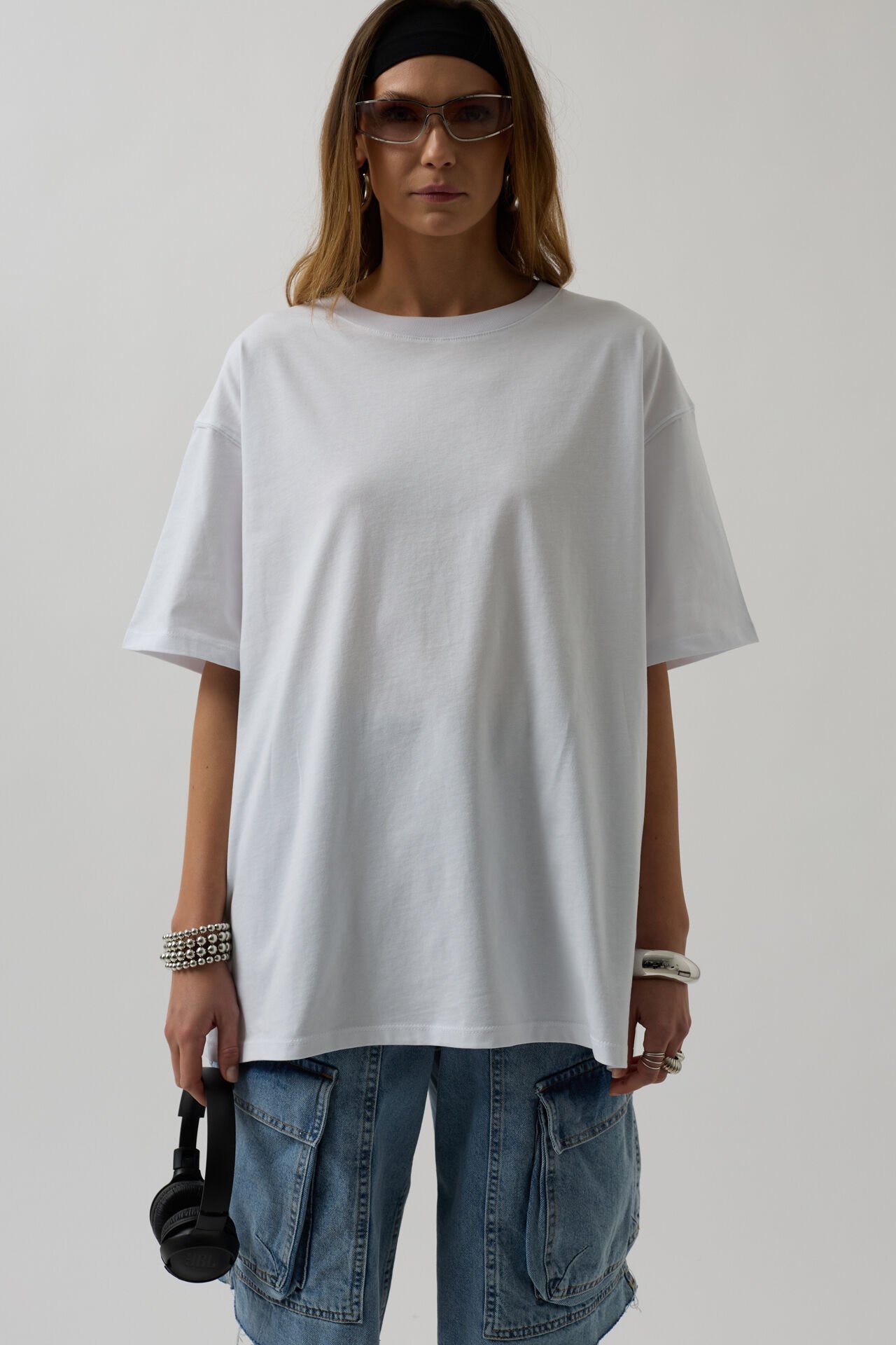 Футболка из хлопчатобумажной ткани, свободного кроя, с отделкой на плечах