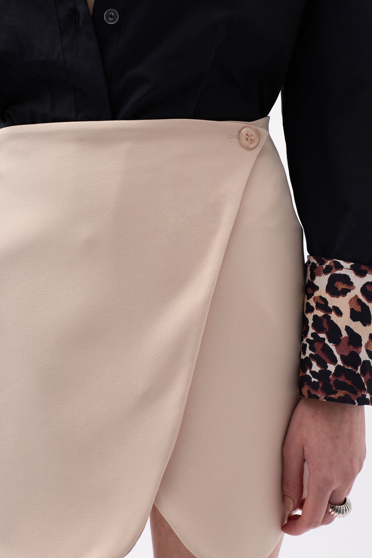 Toptan Düğme Detay Anvelop Mini Bej Etek