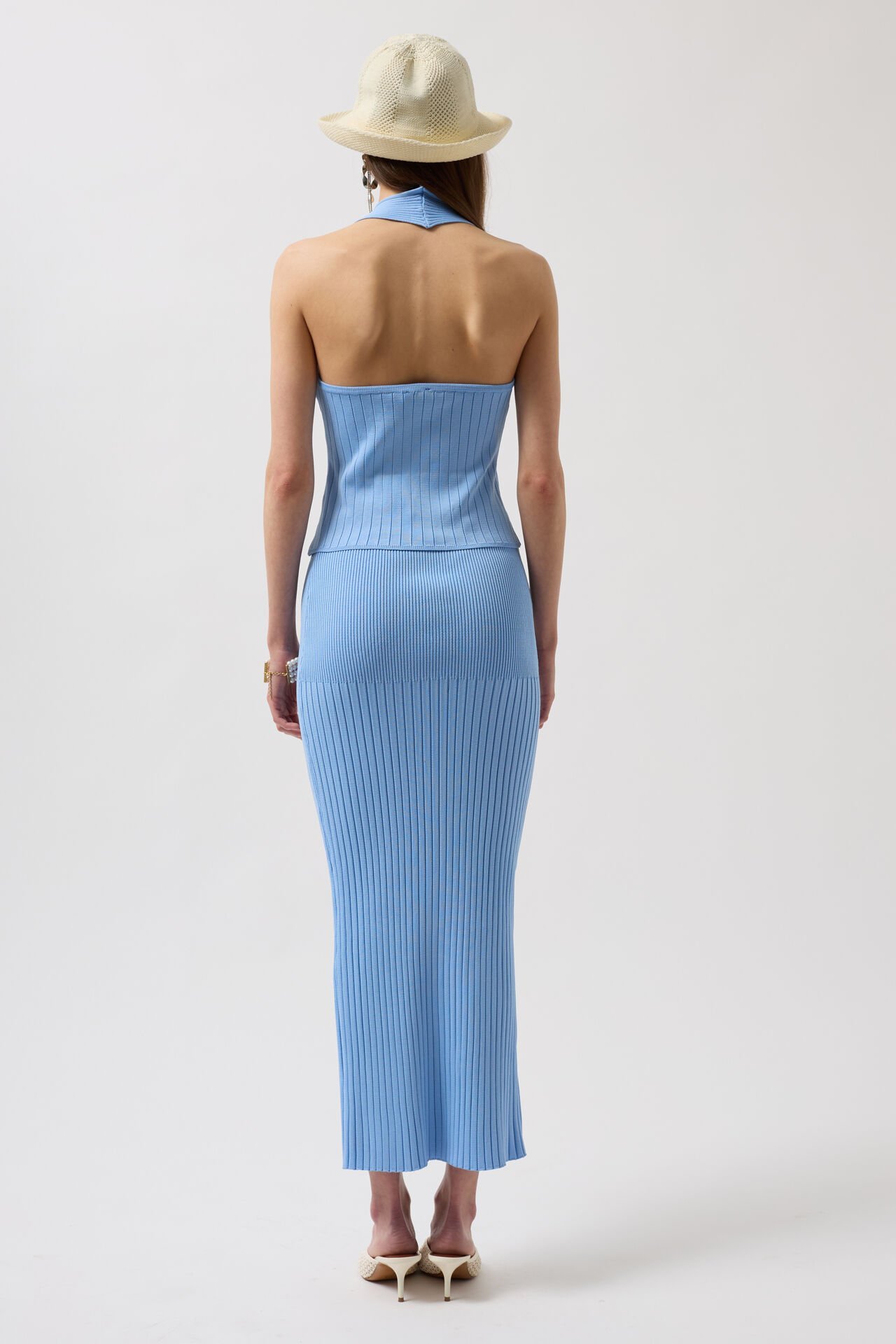 Toptan Yüksek Bel Dokulu Bebe Mavi Etek