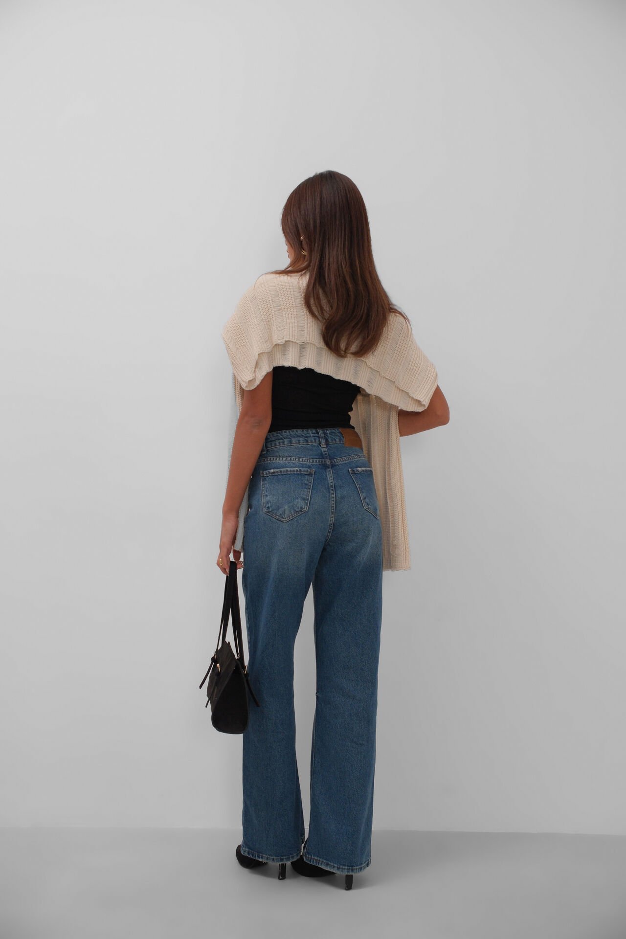 На молнии, черный кожаный жакрон, джинсы-клеш