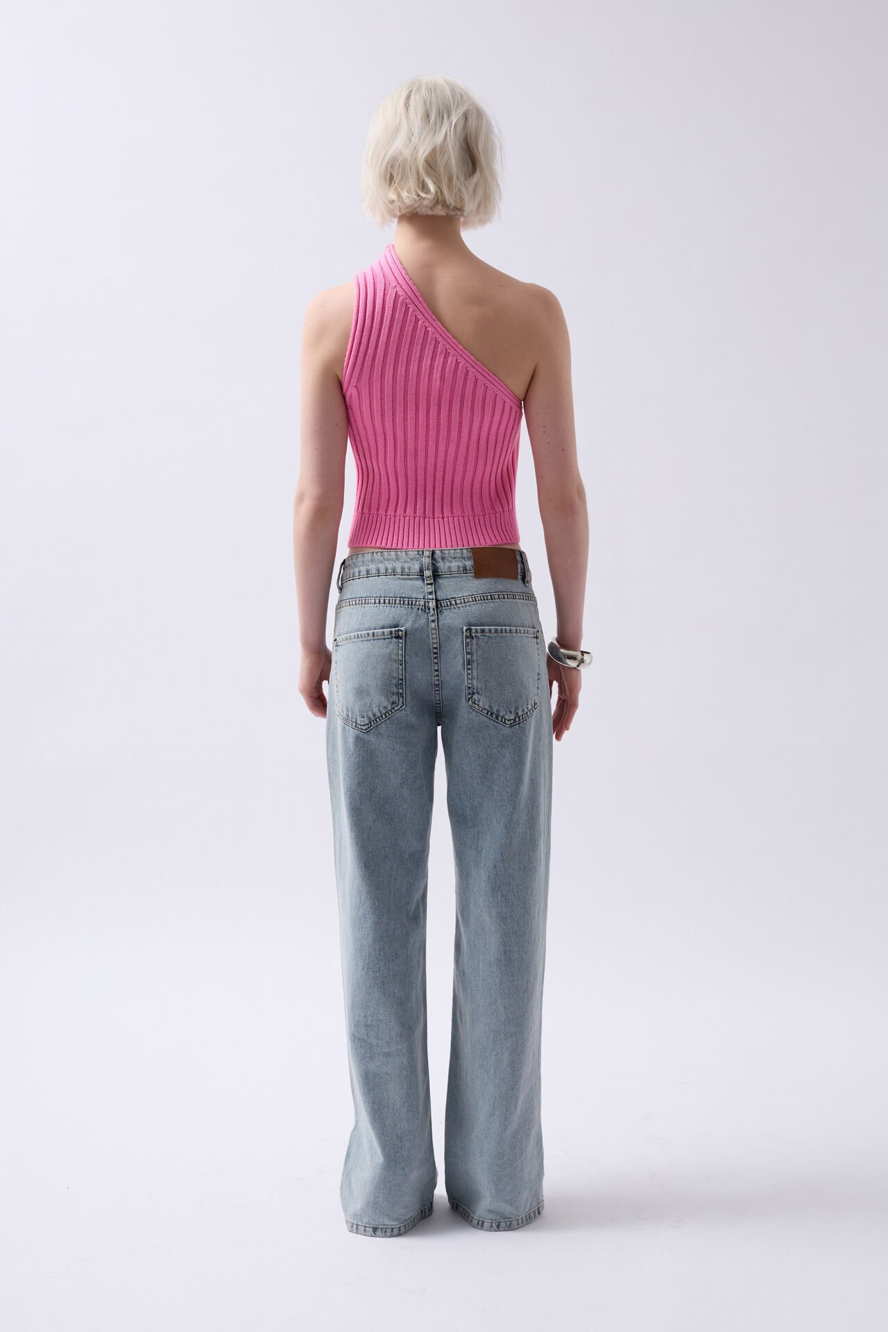 Pamuklu Kumaş, Yumuşak Dokulu, Tek Omuz Triko Crop