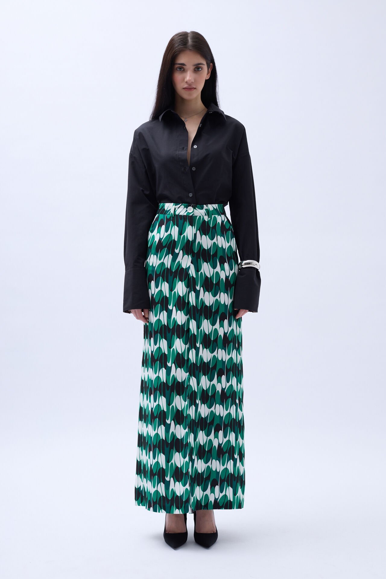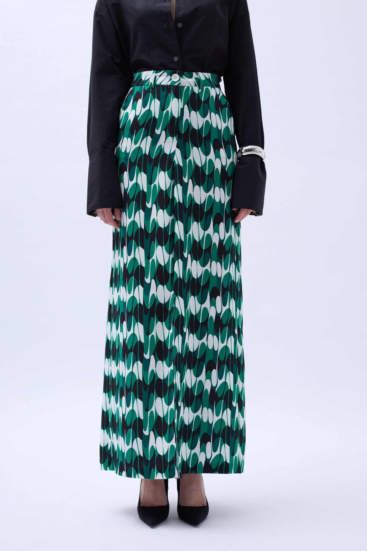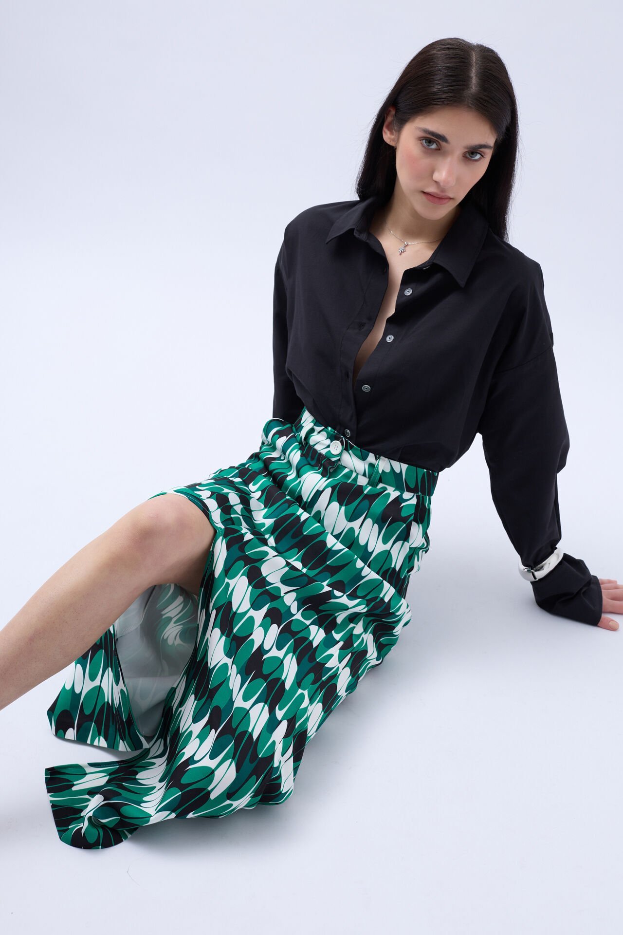 Toptan Baskılı Önü Yırtmaçlı Yeşil Etek