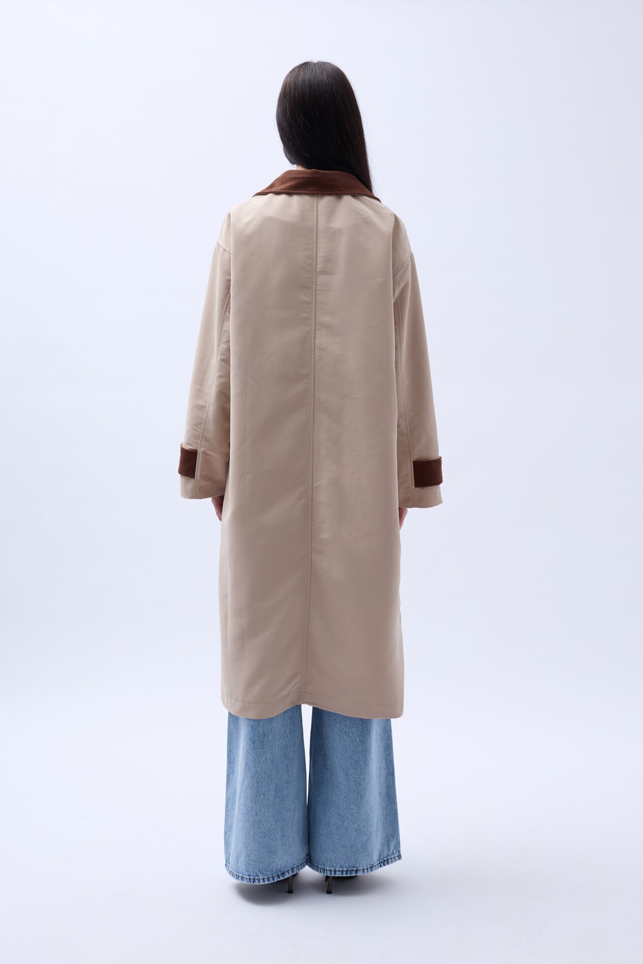 Toptan Yaka Detaylı Oversiz Bej Trençkot