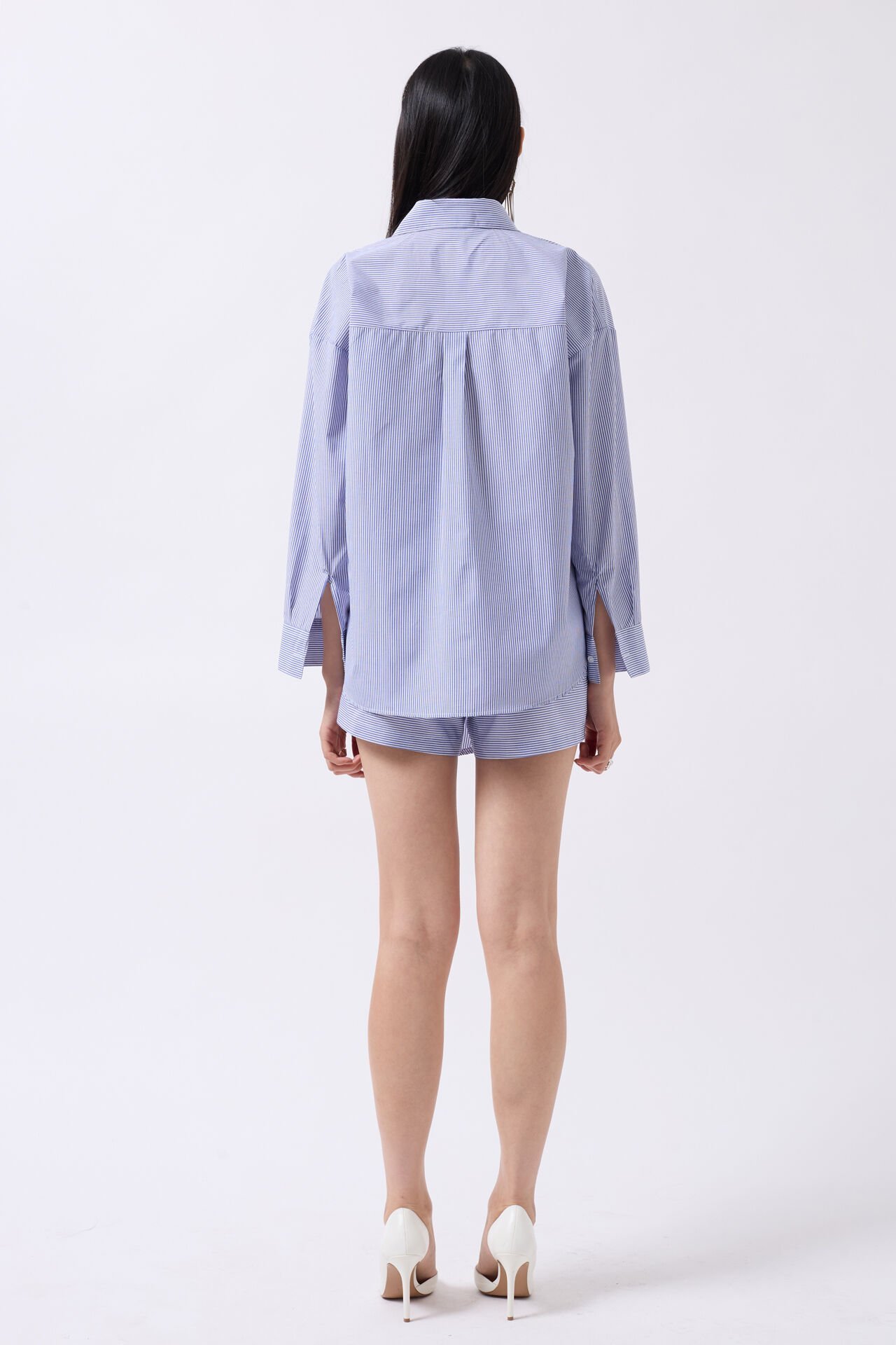 Manşetli Ve Düğmeli, Çizgili Pamuklu Kumaş, Düz Kesim Gömlek