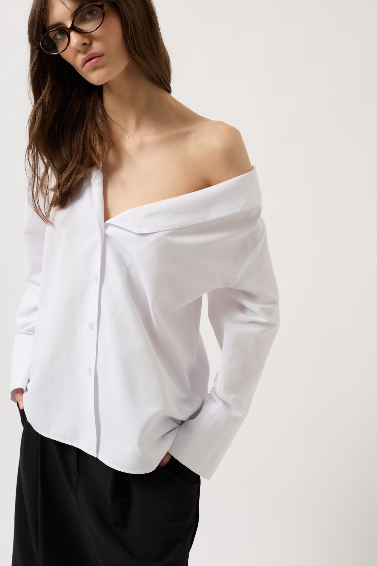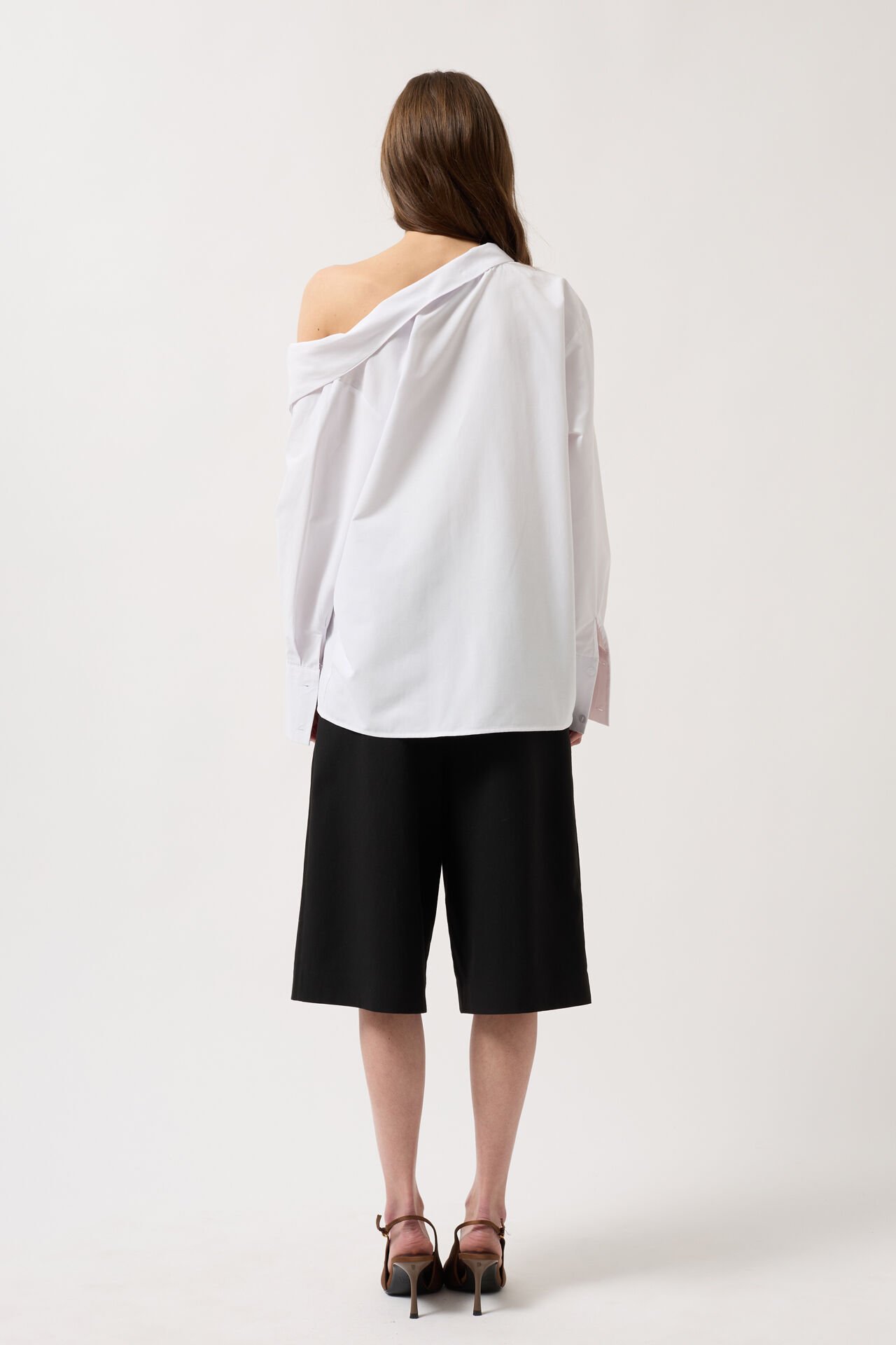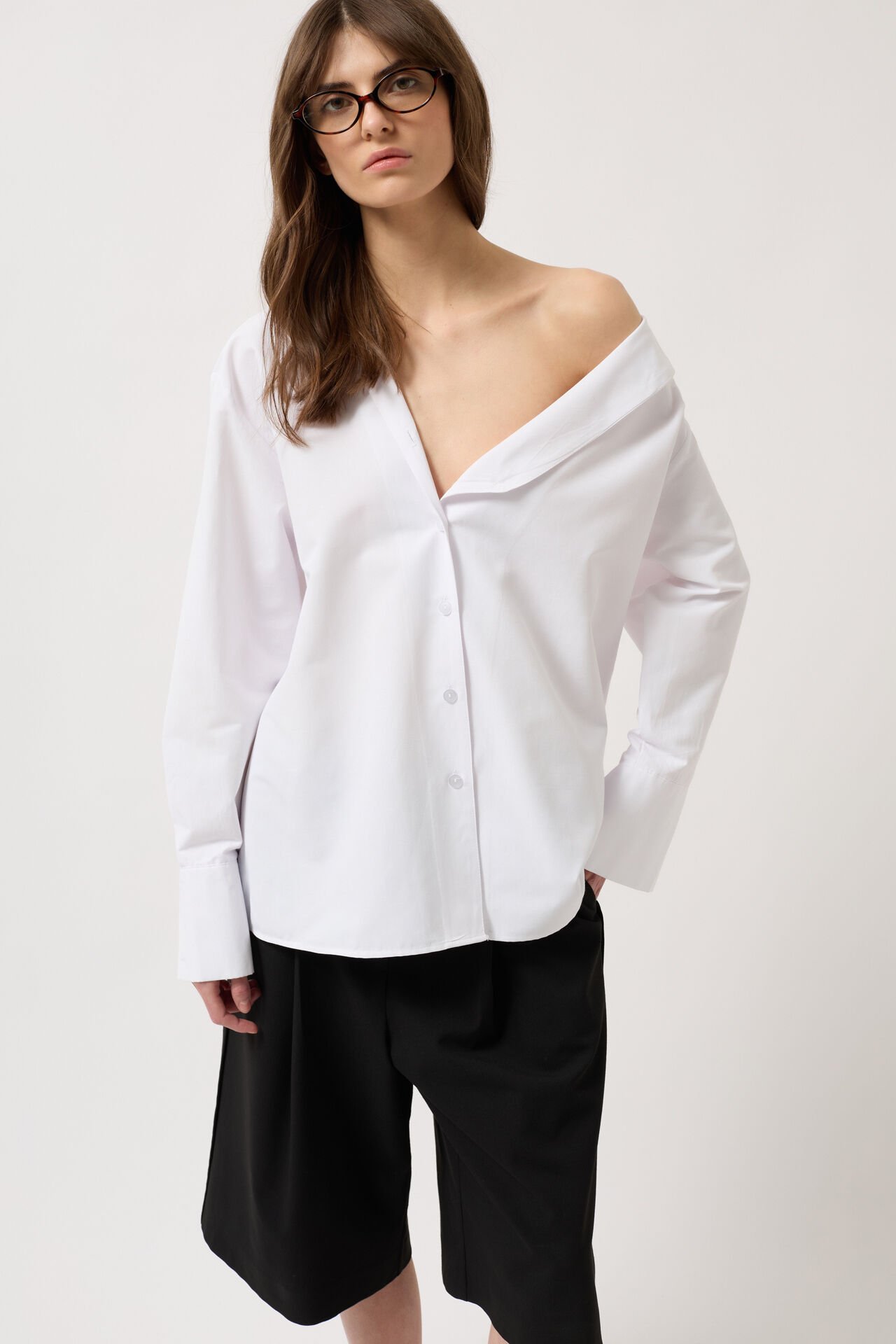 Tek Kolu Düşük, Pamuklu Poplin Kumaş, Düğmeli, Asimetrik Gömlek