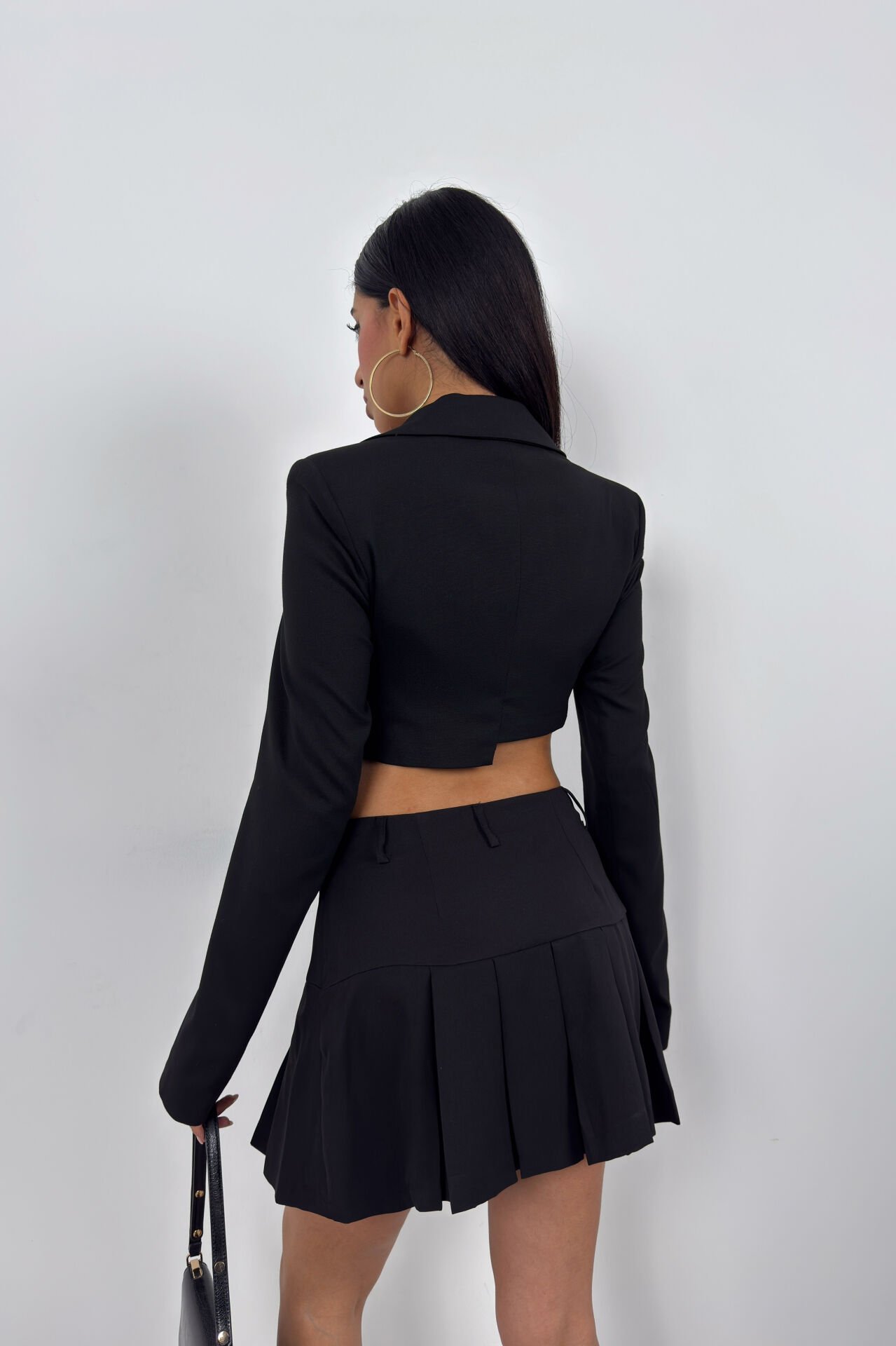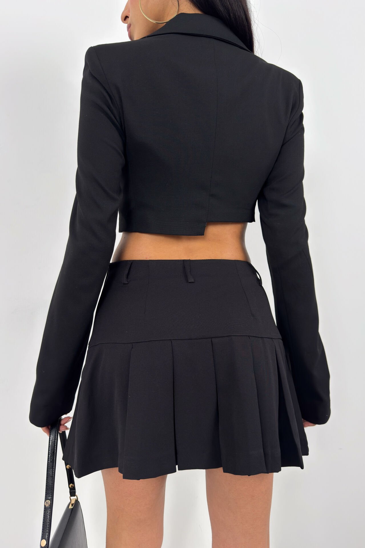 Asimetrik Görünümlü, Katlamalı Yaka, Tek Düğmeli, Crop, Blazer Ceket