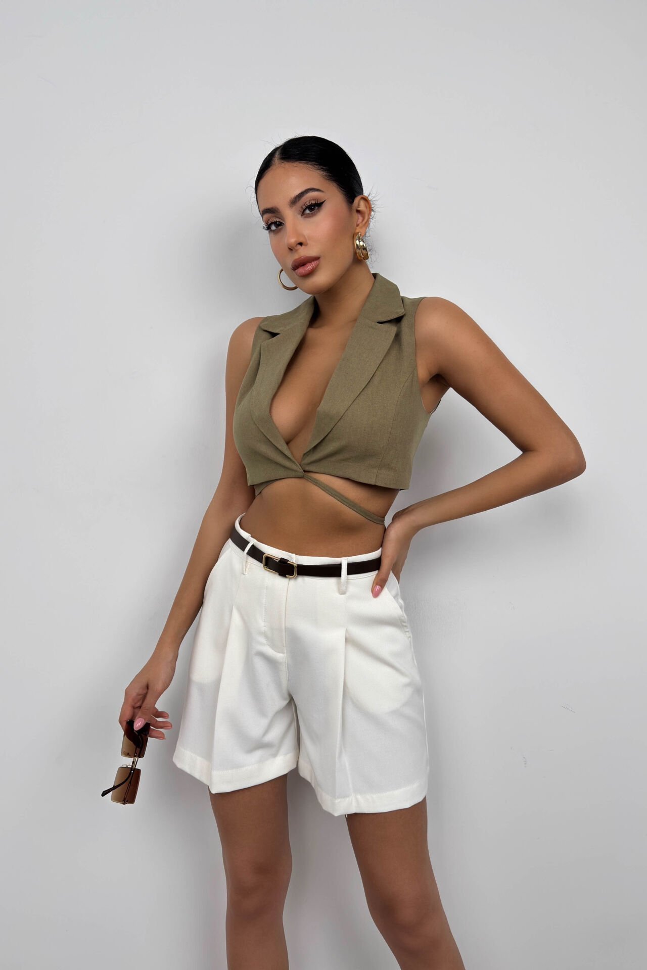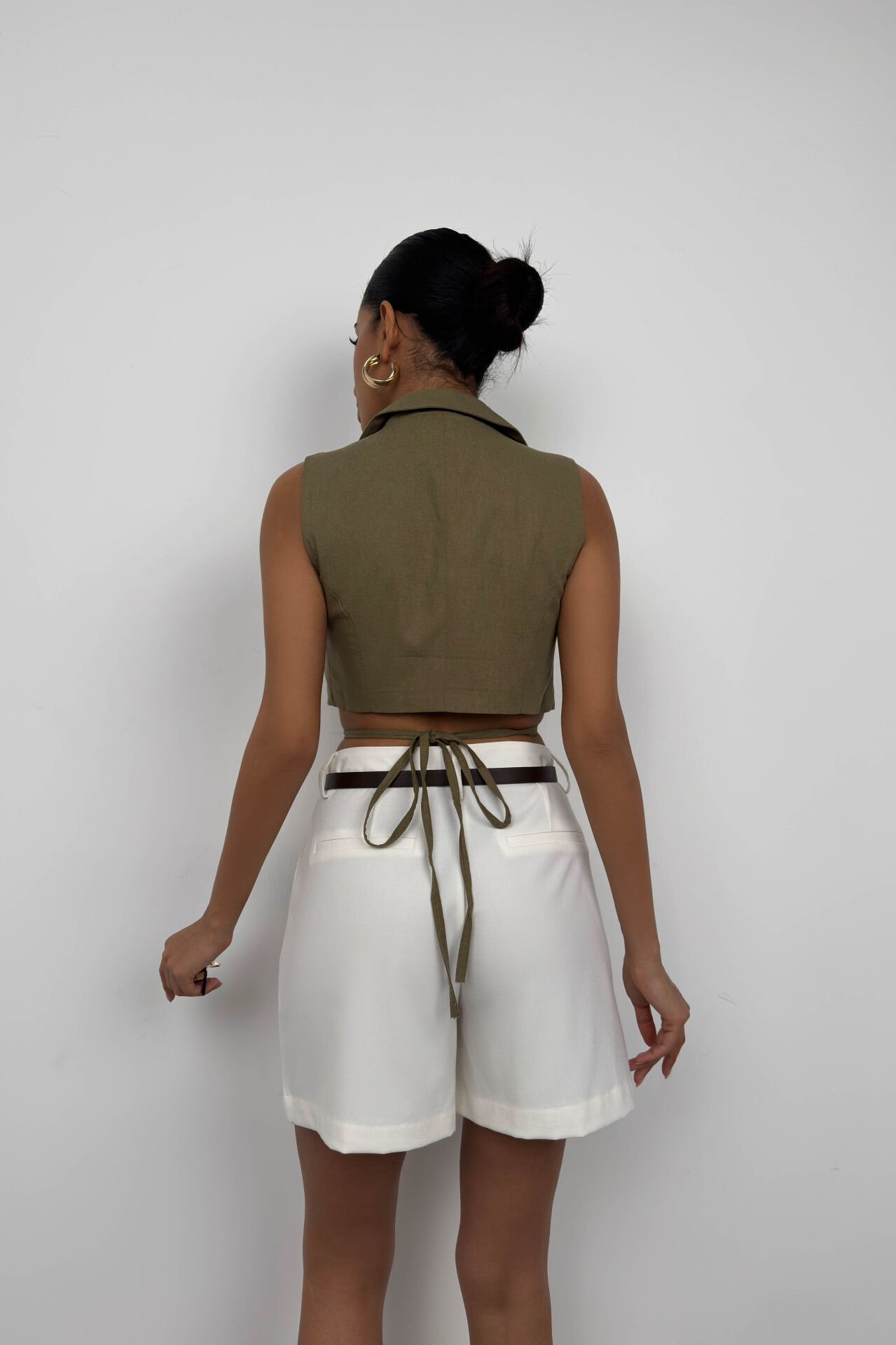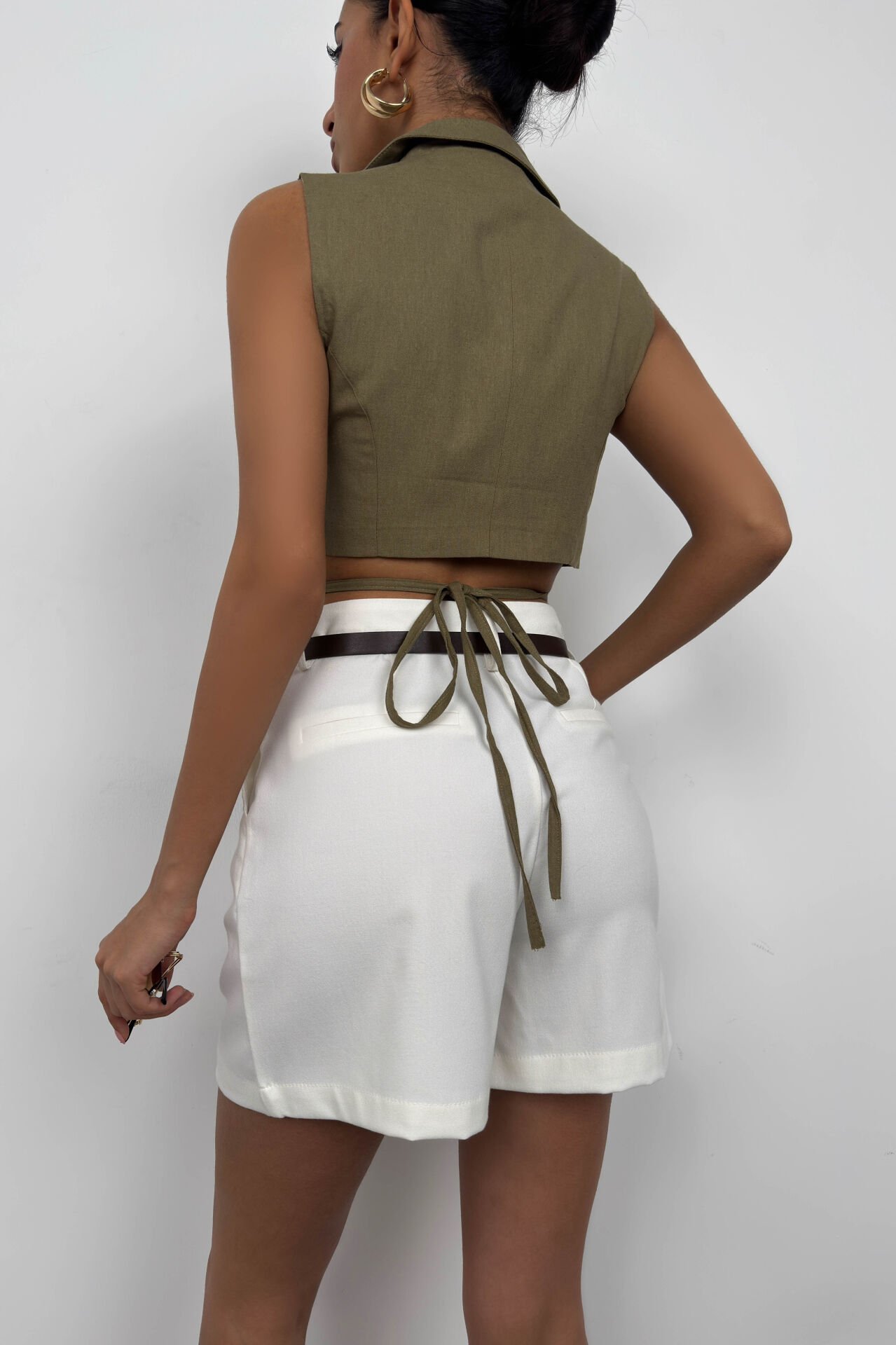 Bağlama Detay, Keten, Crop, V Yaka, Yelek