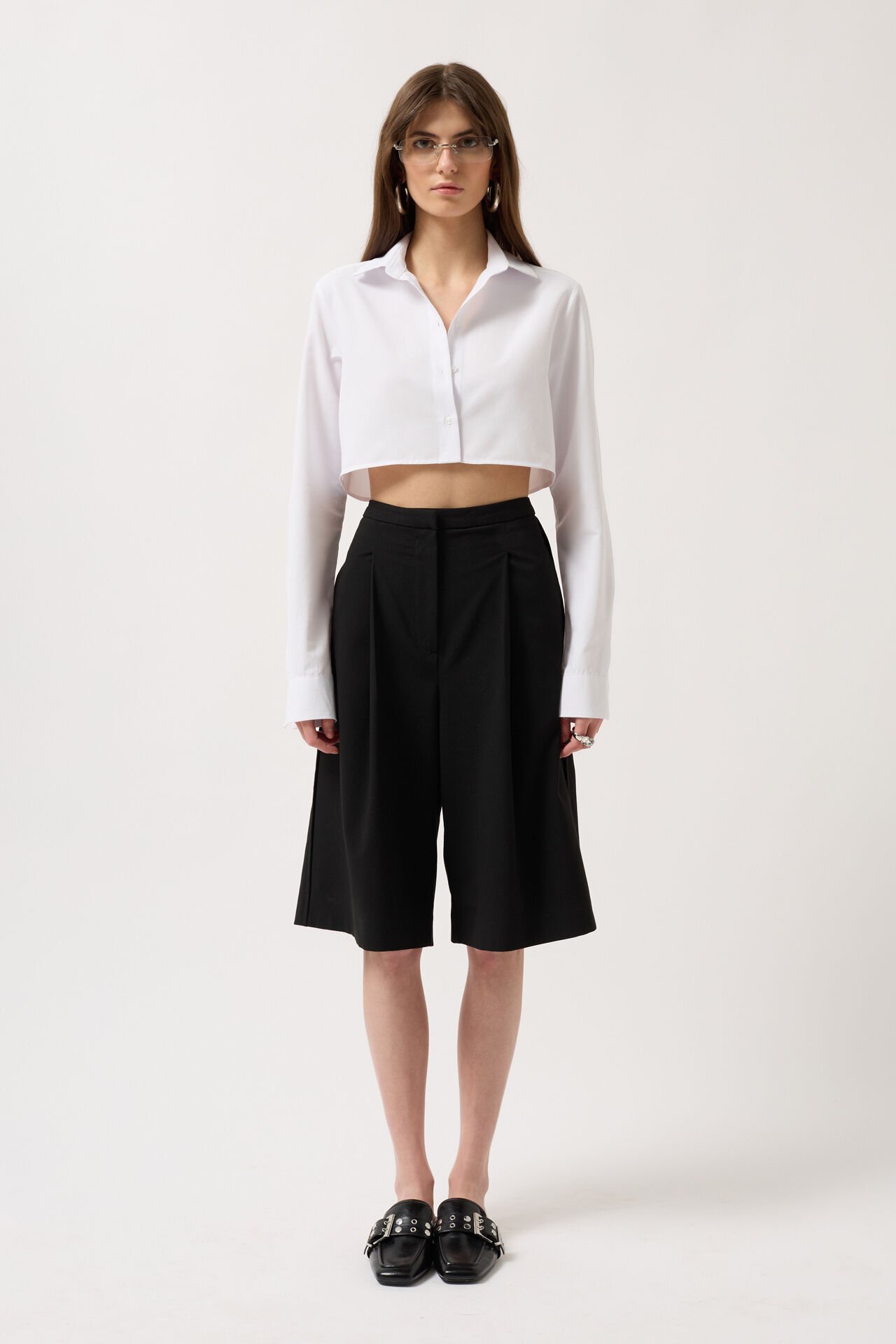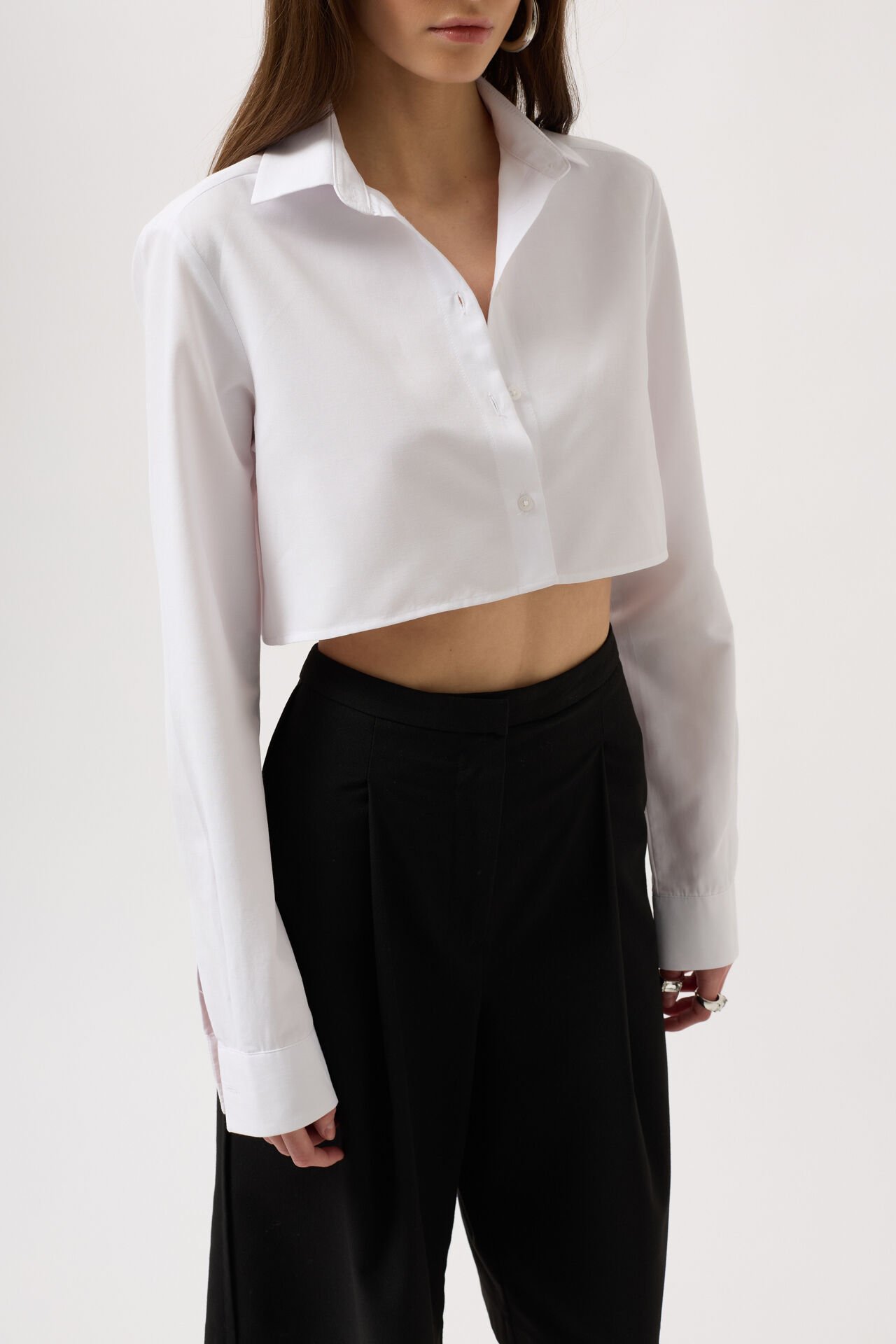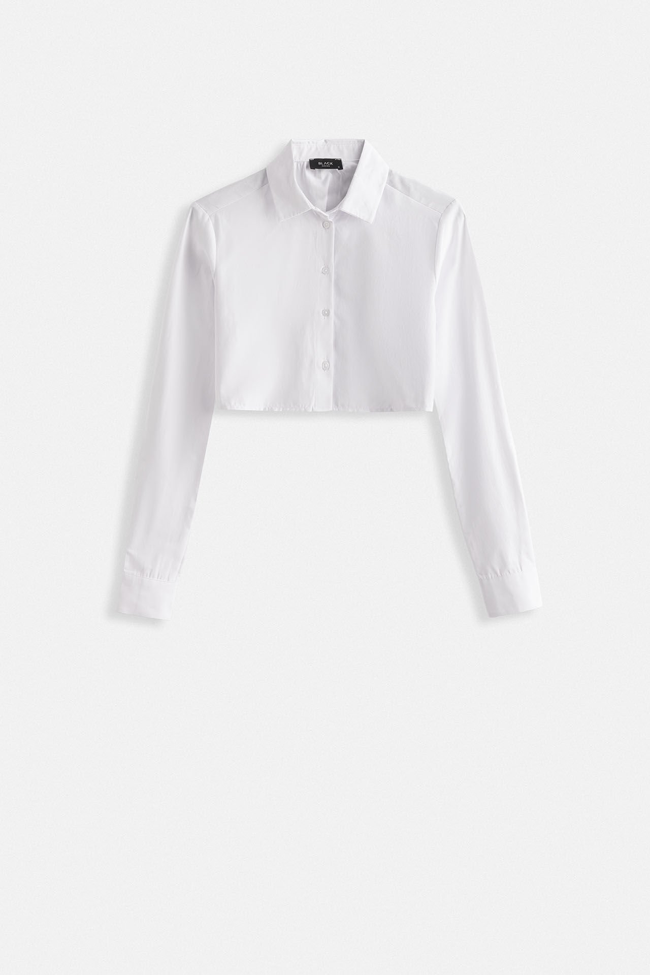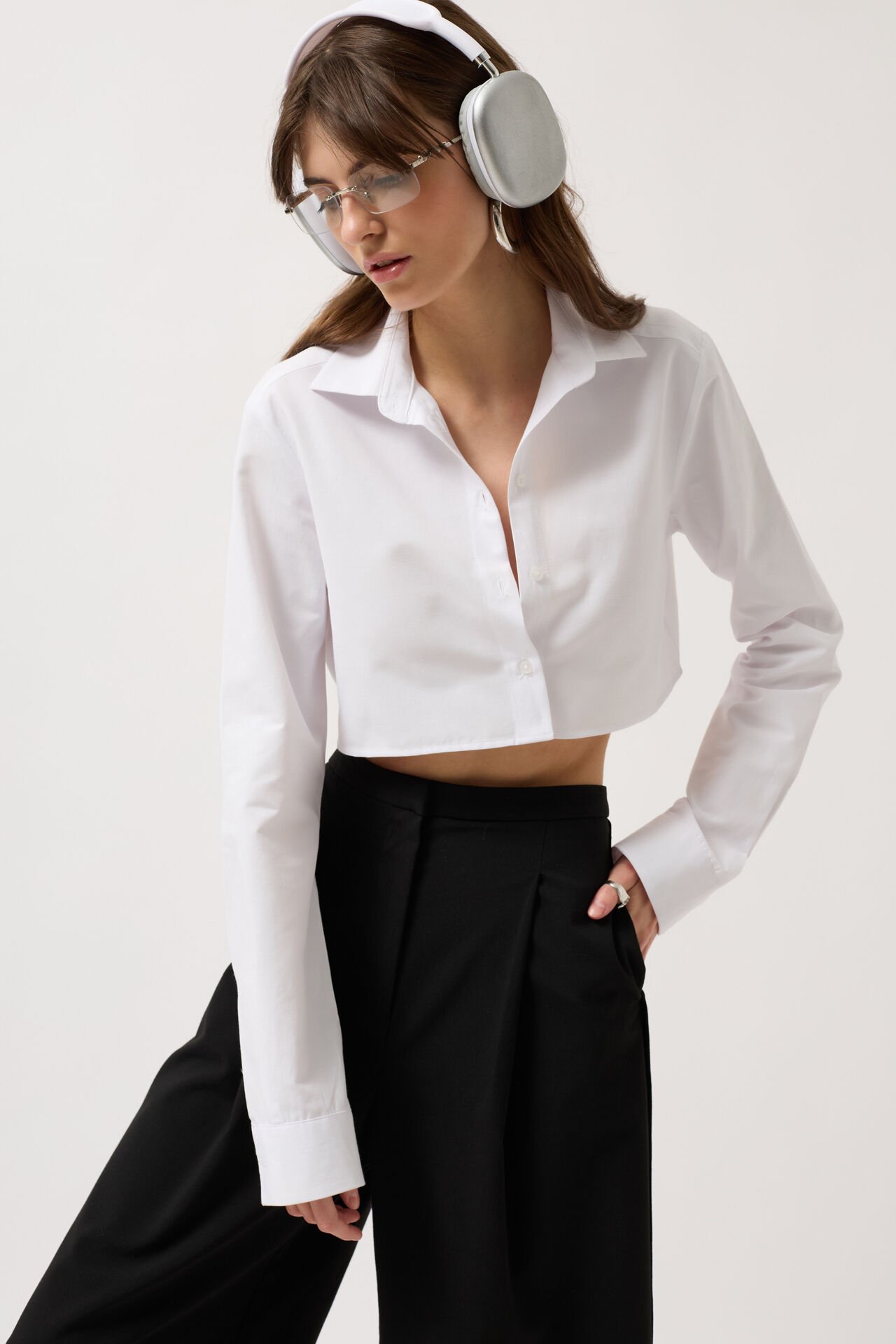 Manşeti Tek Düğmeli, Poplin Kumaş Crop Gömlek