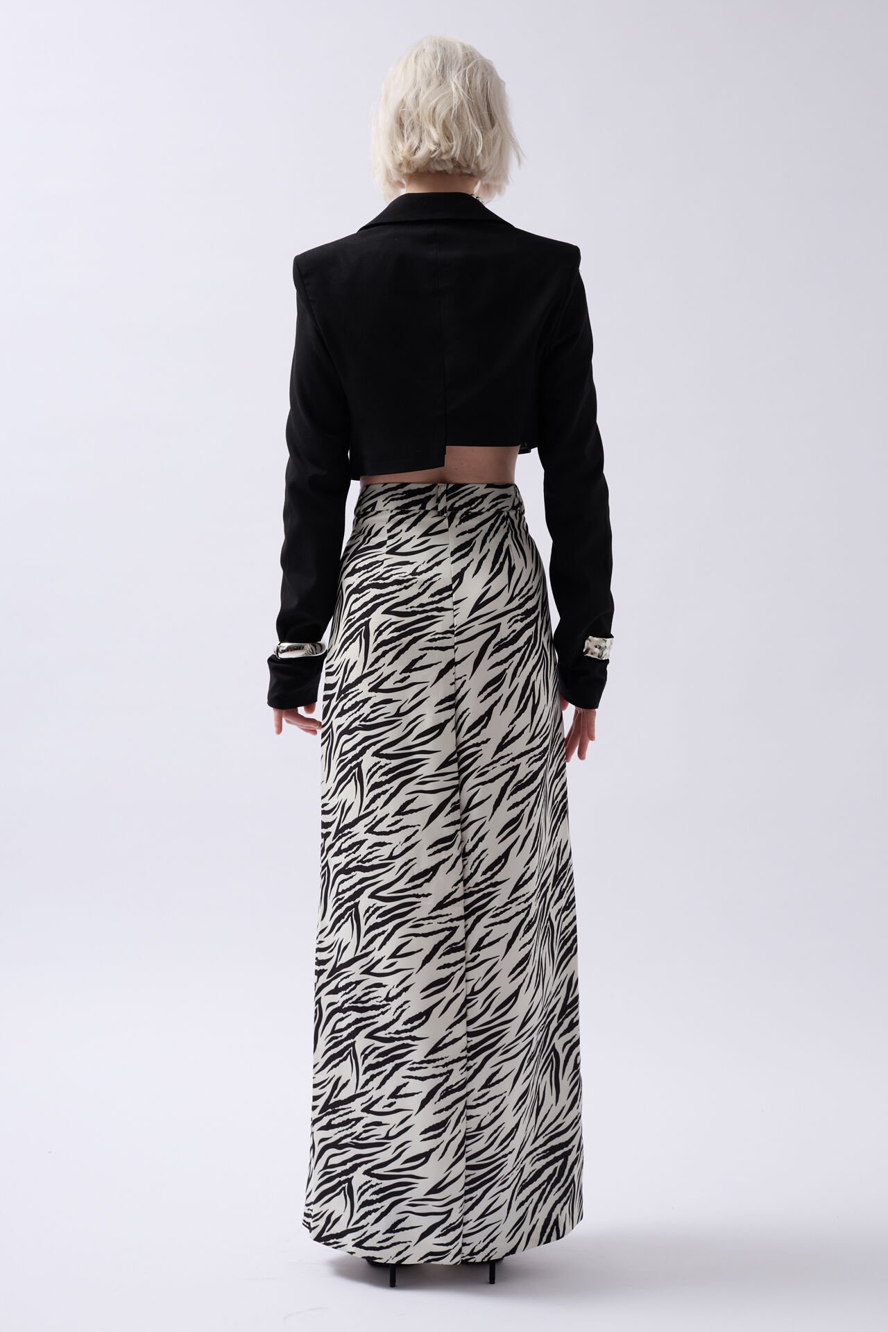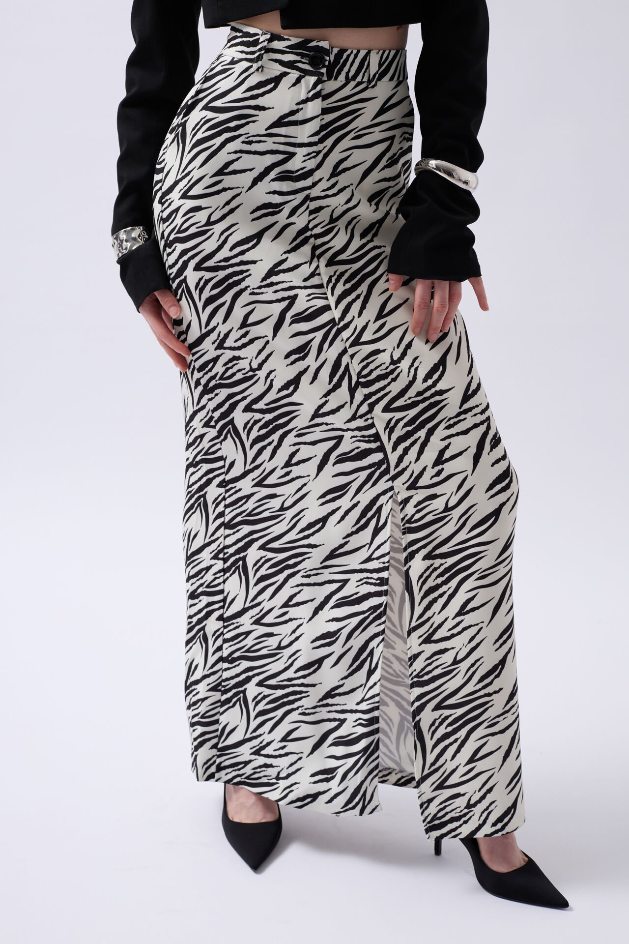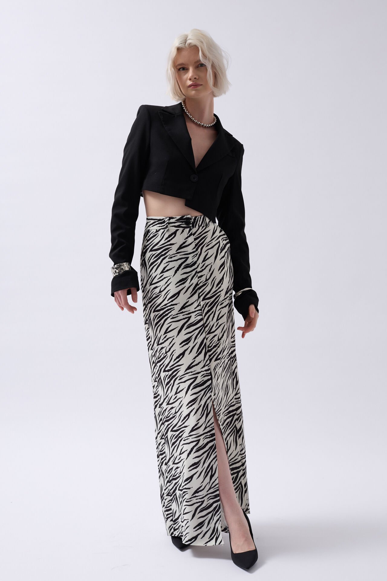 Toptan Baskılı Önü Yırtmaçlı Siyah Etek
