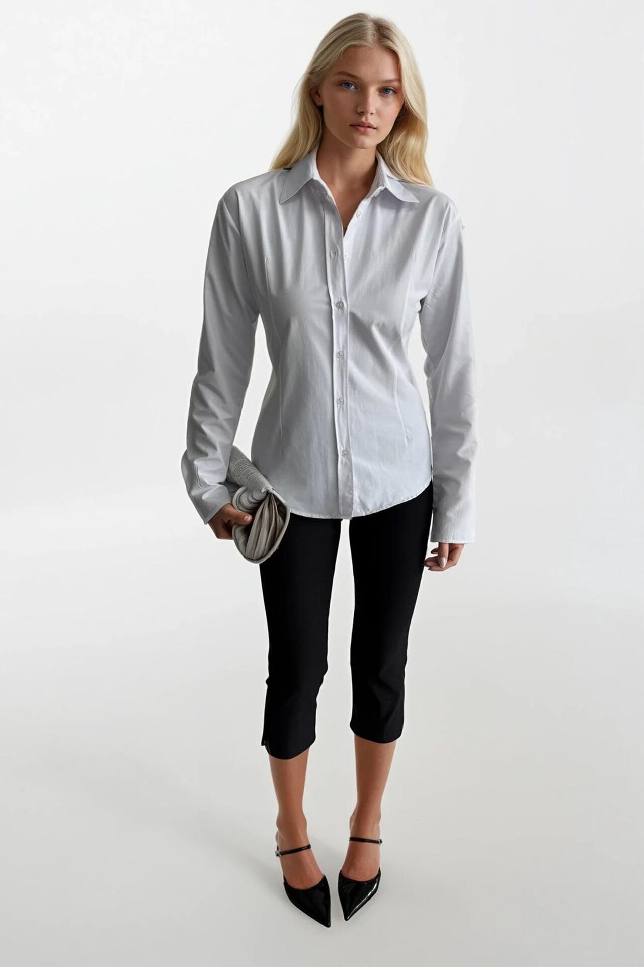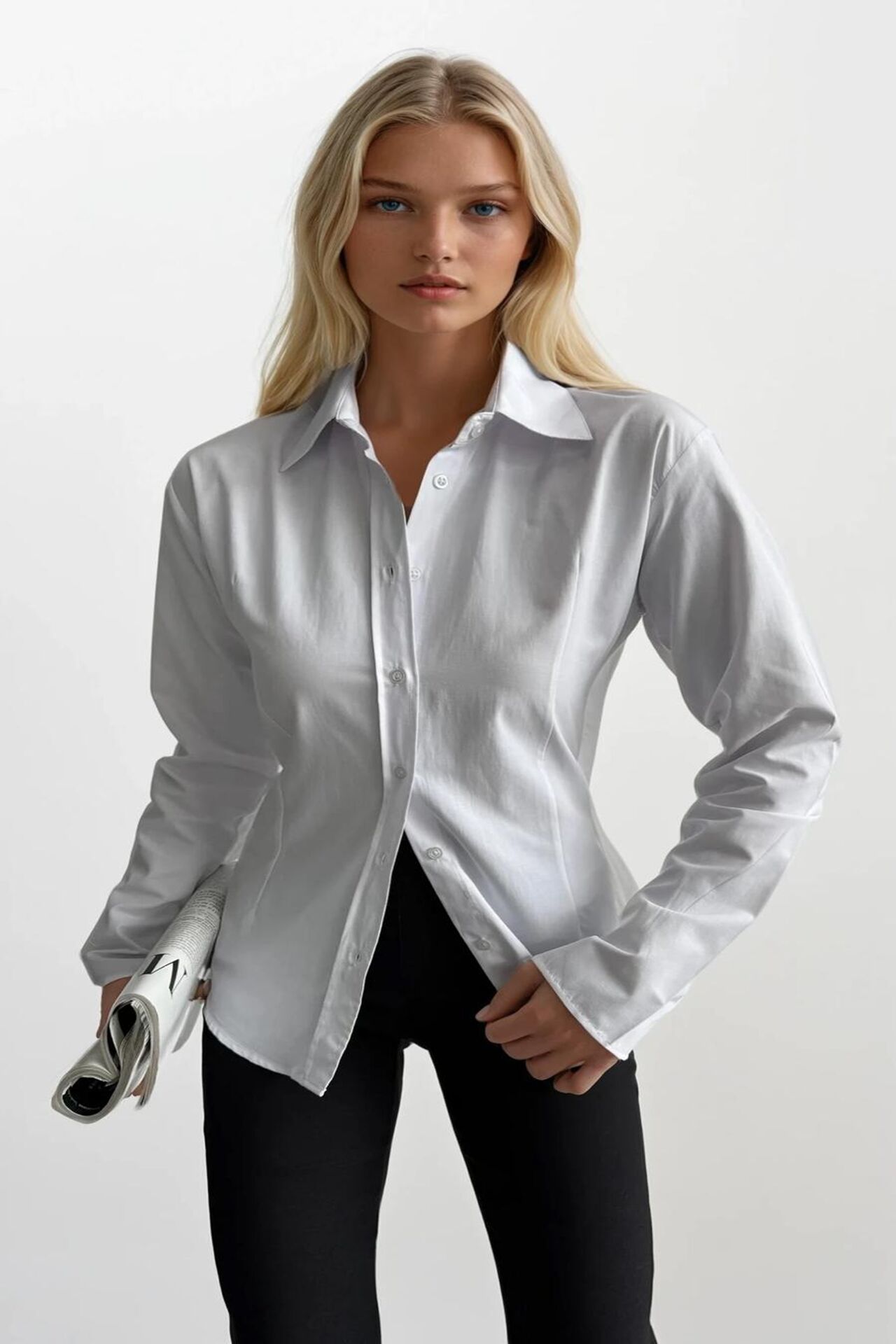 Toptan Bel Oturtmalı Ekru Basic Gömlek