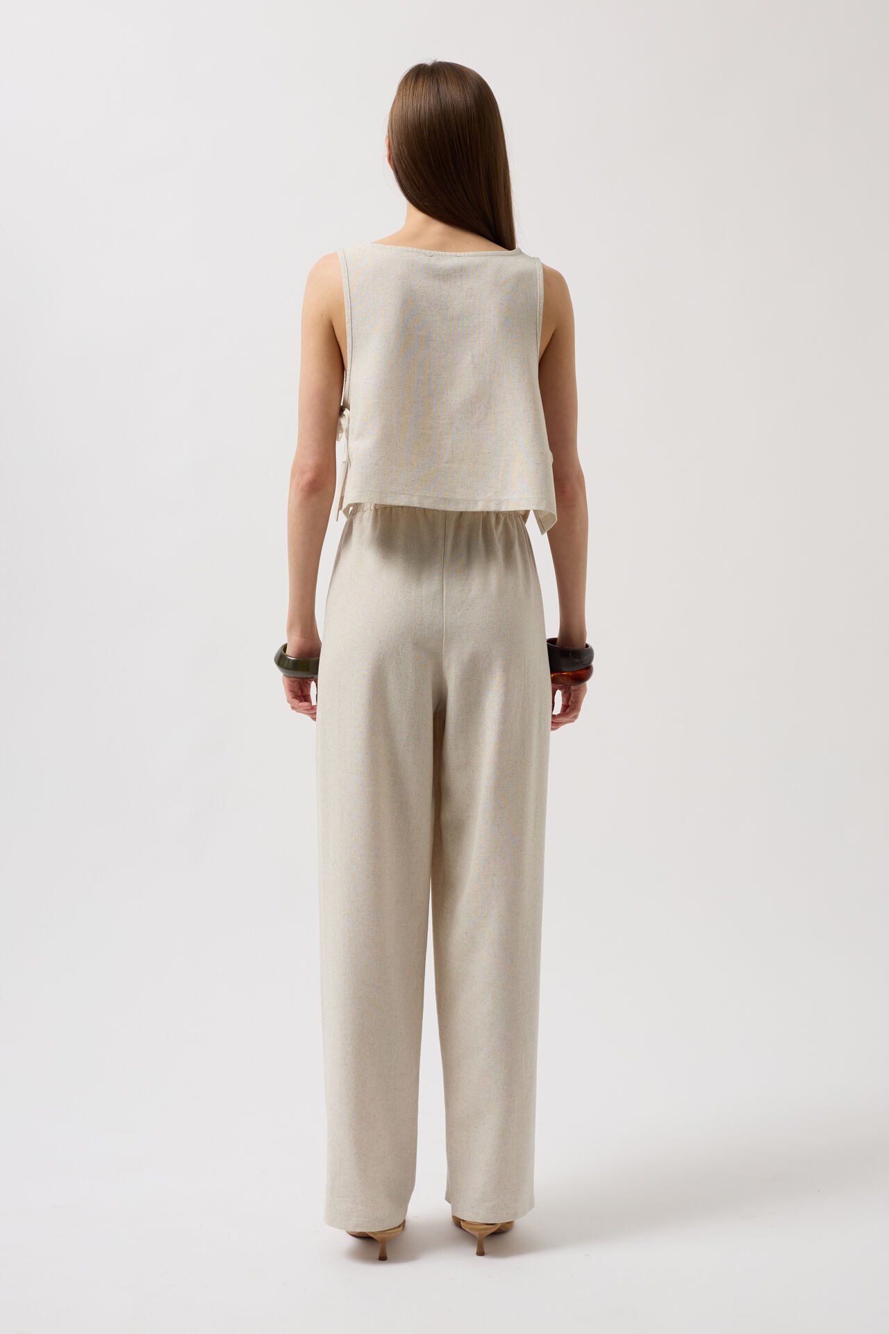 Beli Lastikli, Bağcık Aksesuar Detaylı, Rahat Kesim, Keten Pantolon