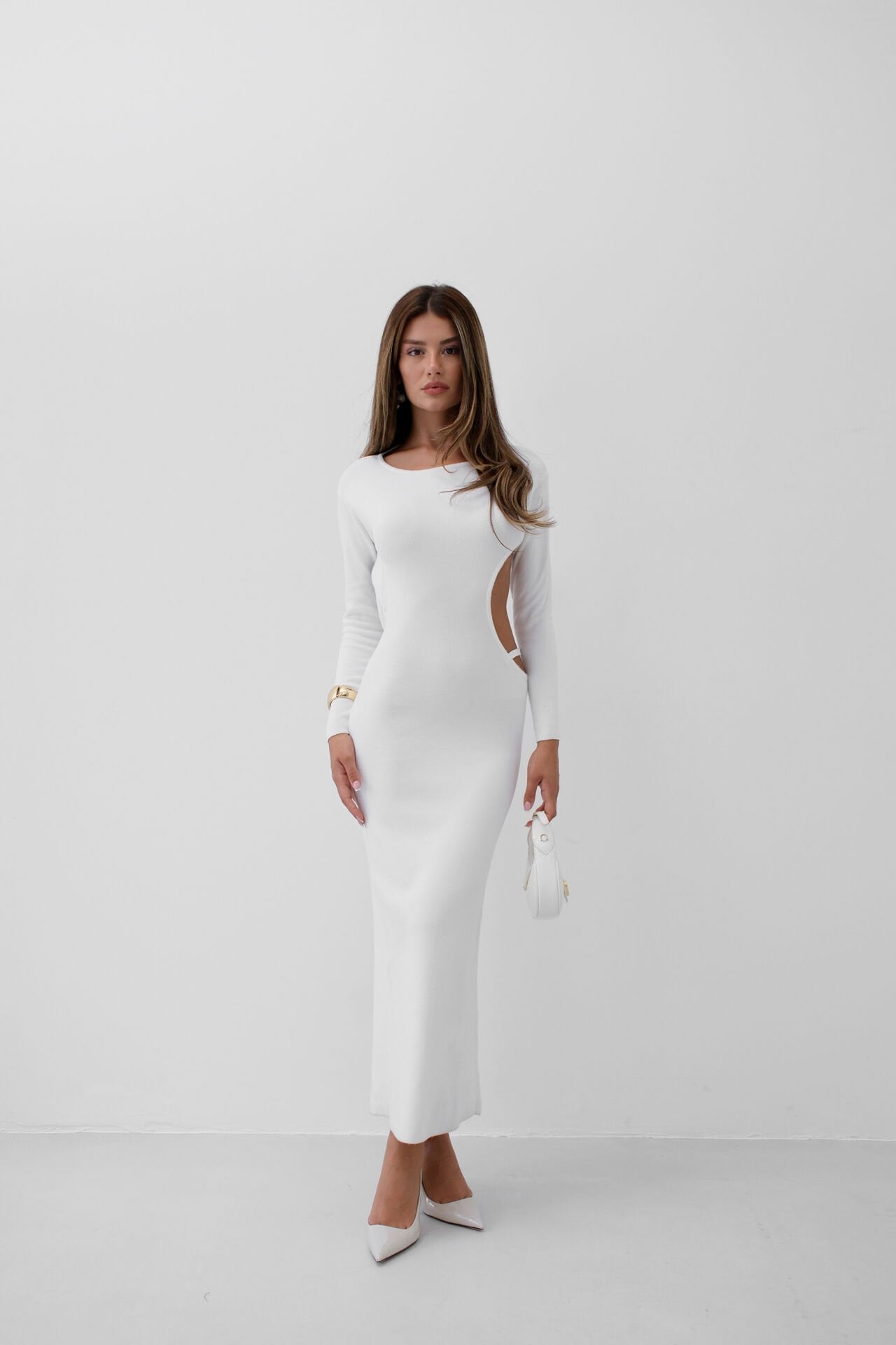 Toptan Bisiklet Yaka Sırt Dekolteli Beyaz Elbise