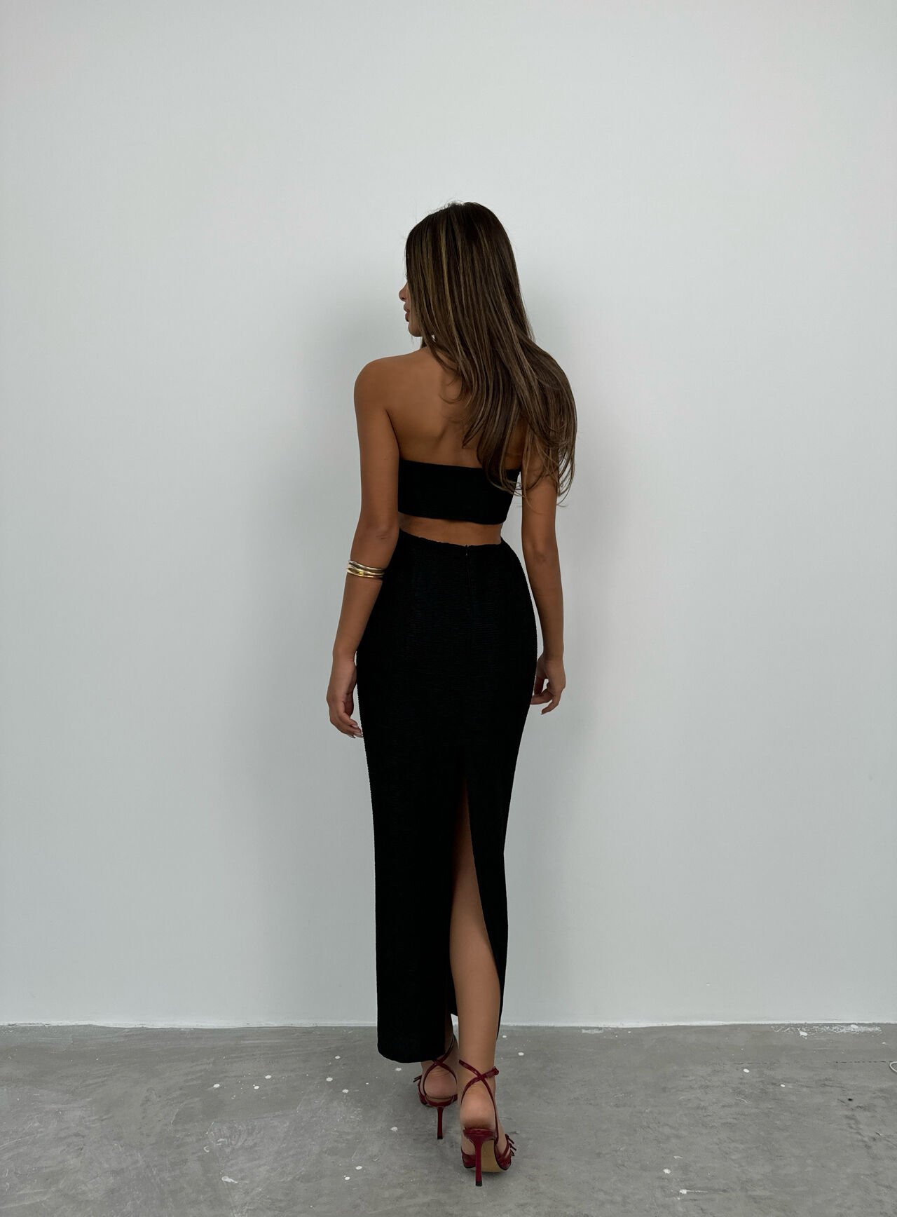 Toptan Boyun Bağlamalı Siyah Maxi Elbise