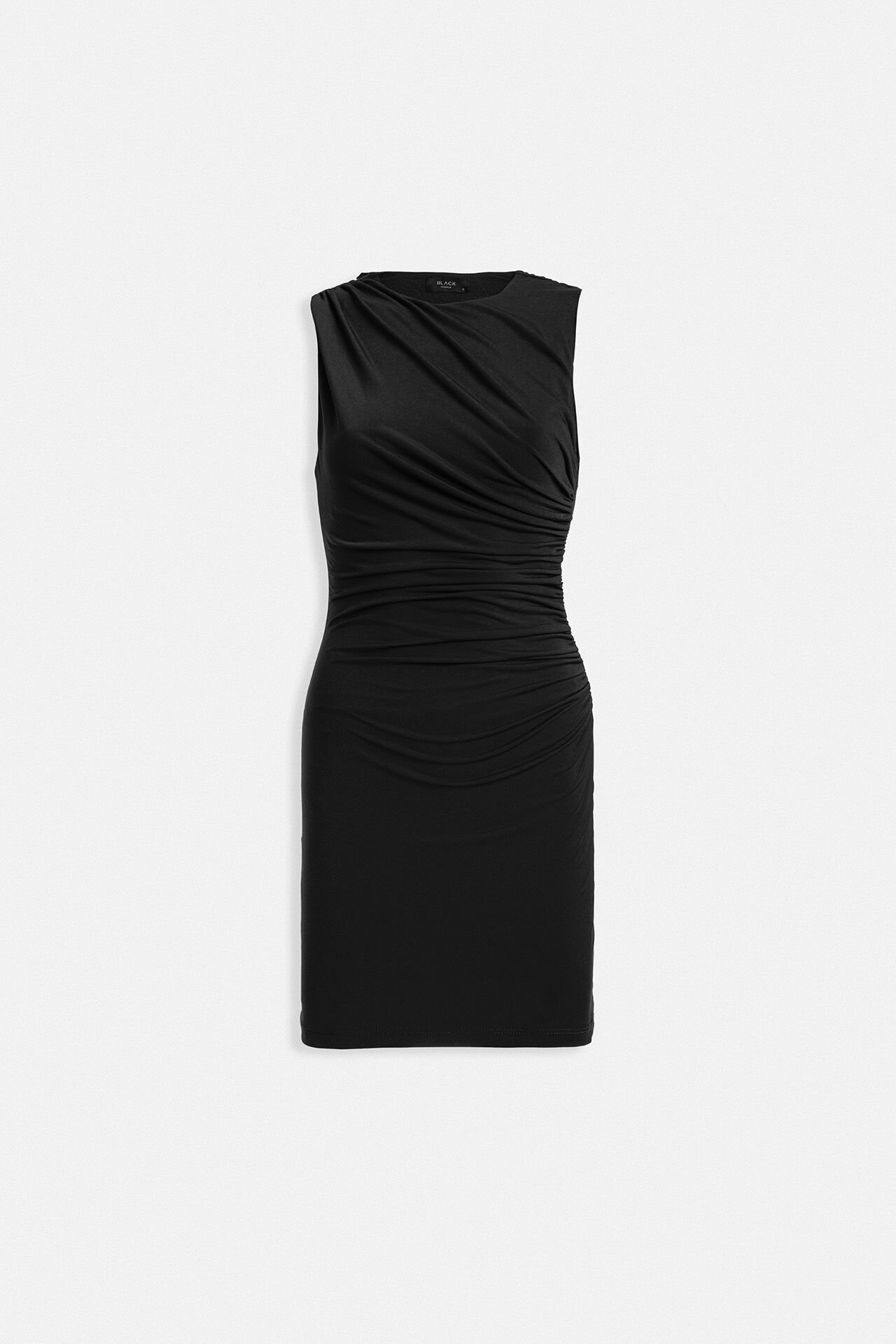 Toptan Büzgülü Mini Siyah Elbise