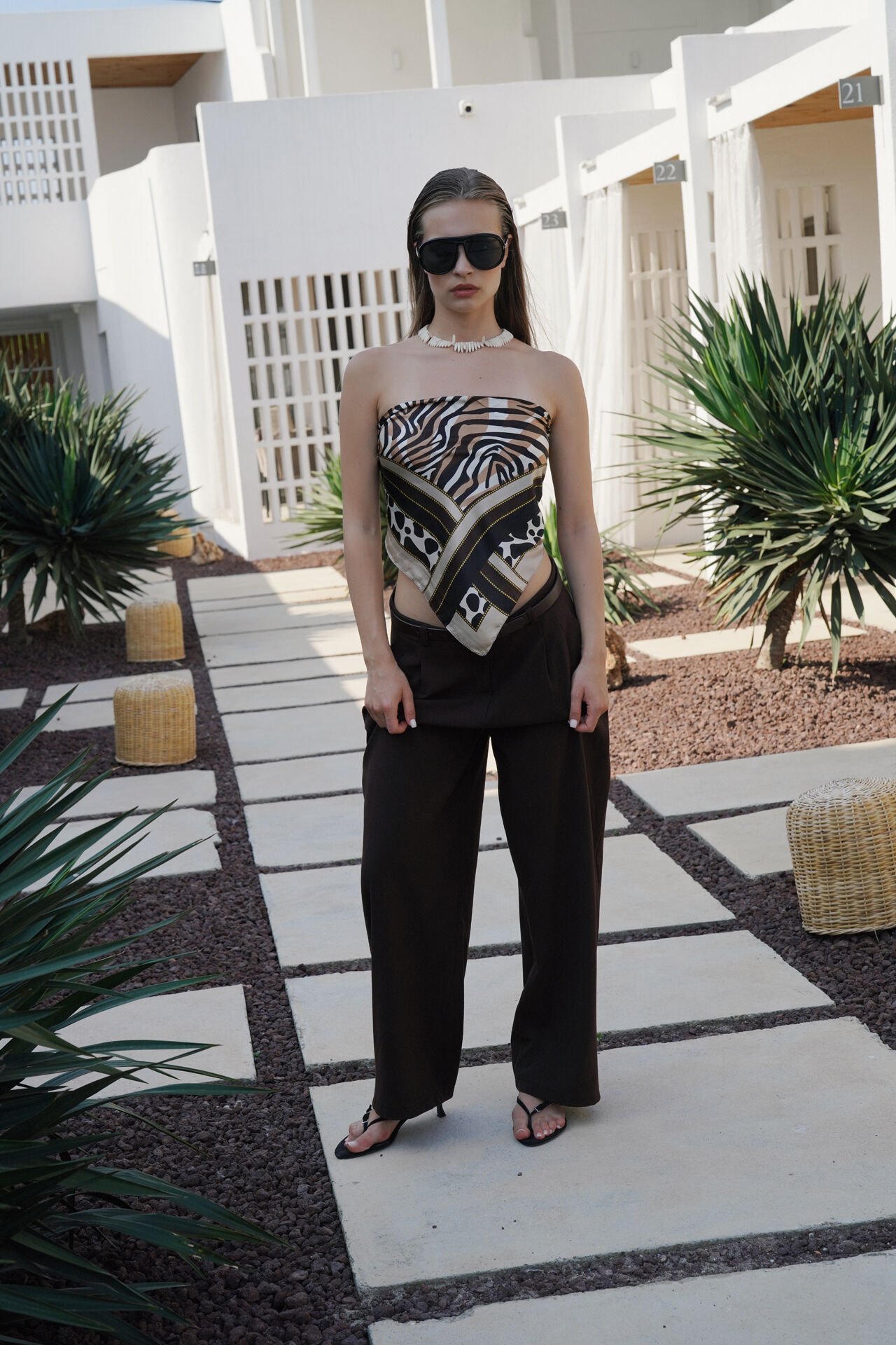 Toptan Çift Pileli Bol Paça Kahverengi Pantolon