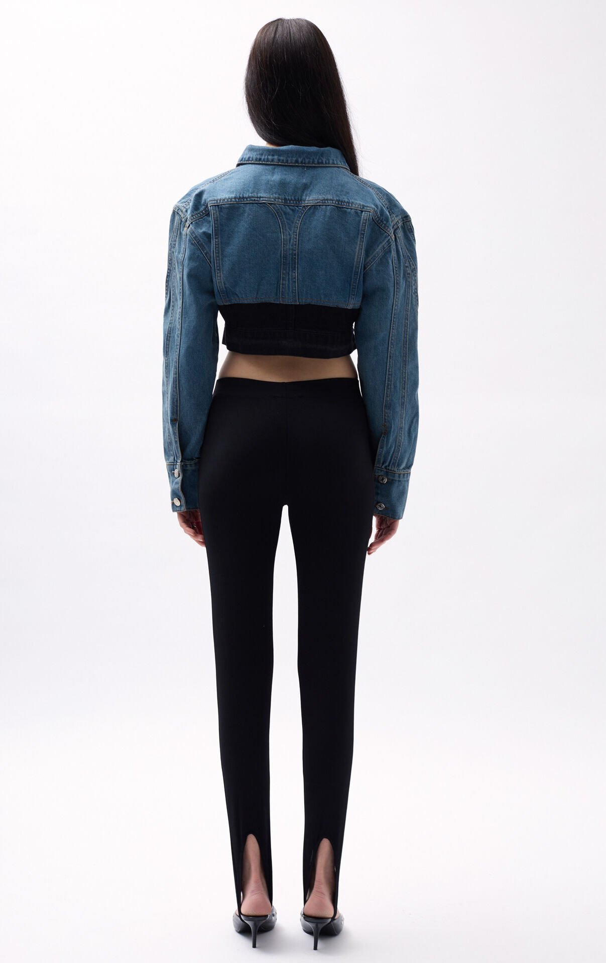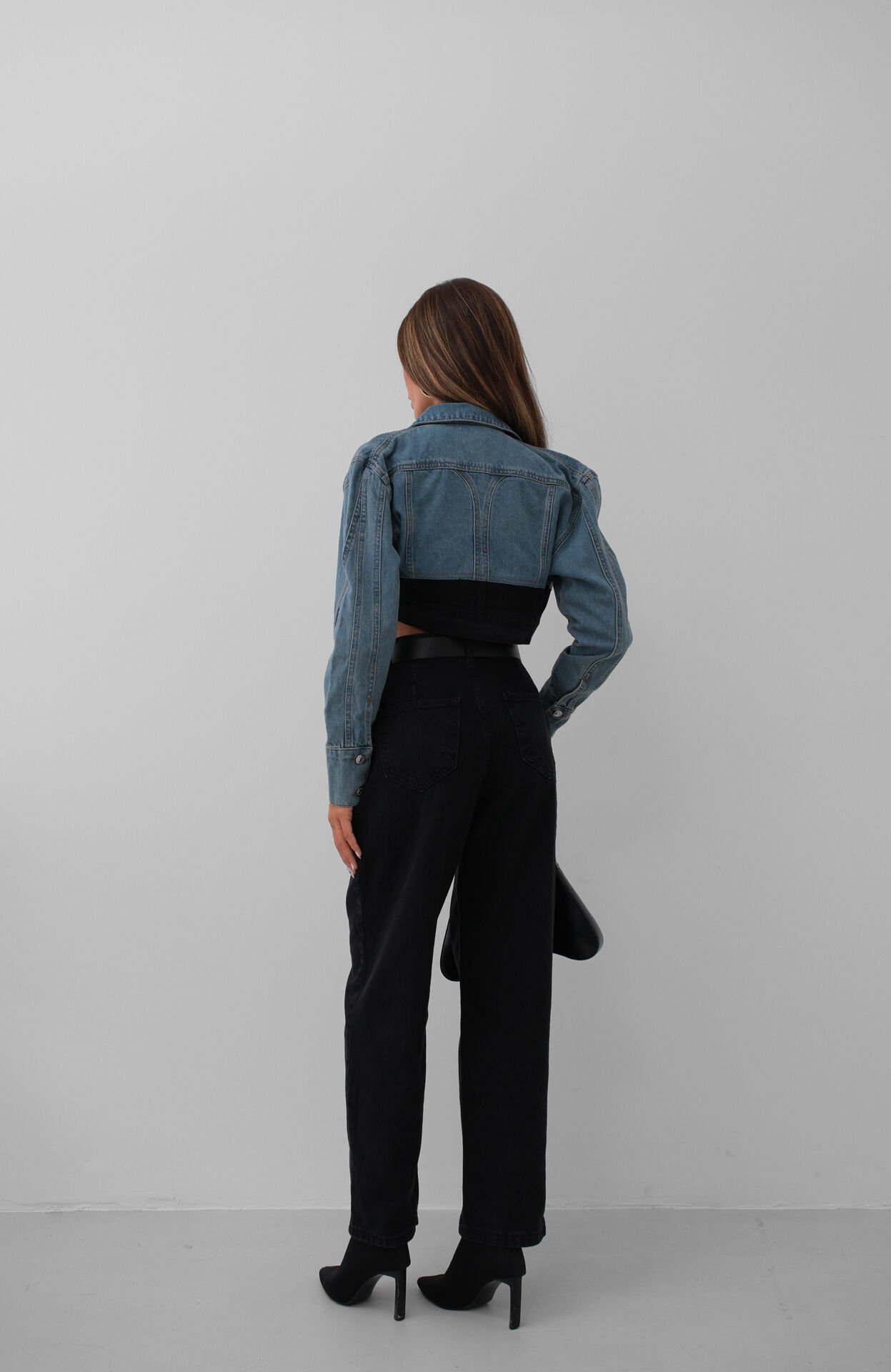 Toptan Çift Renkli Crop Mavi Siyah Kot Ceket