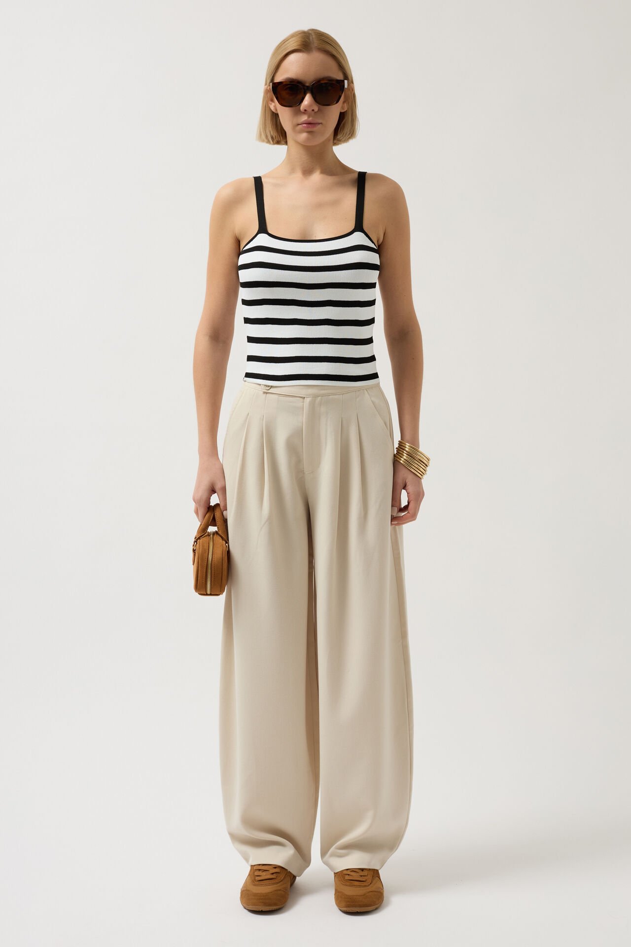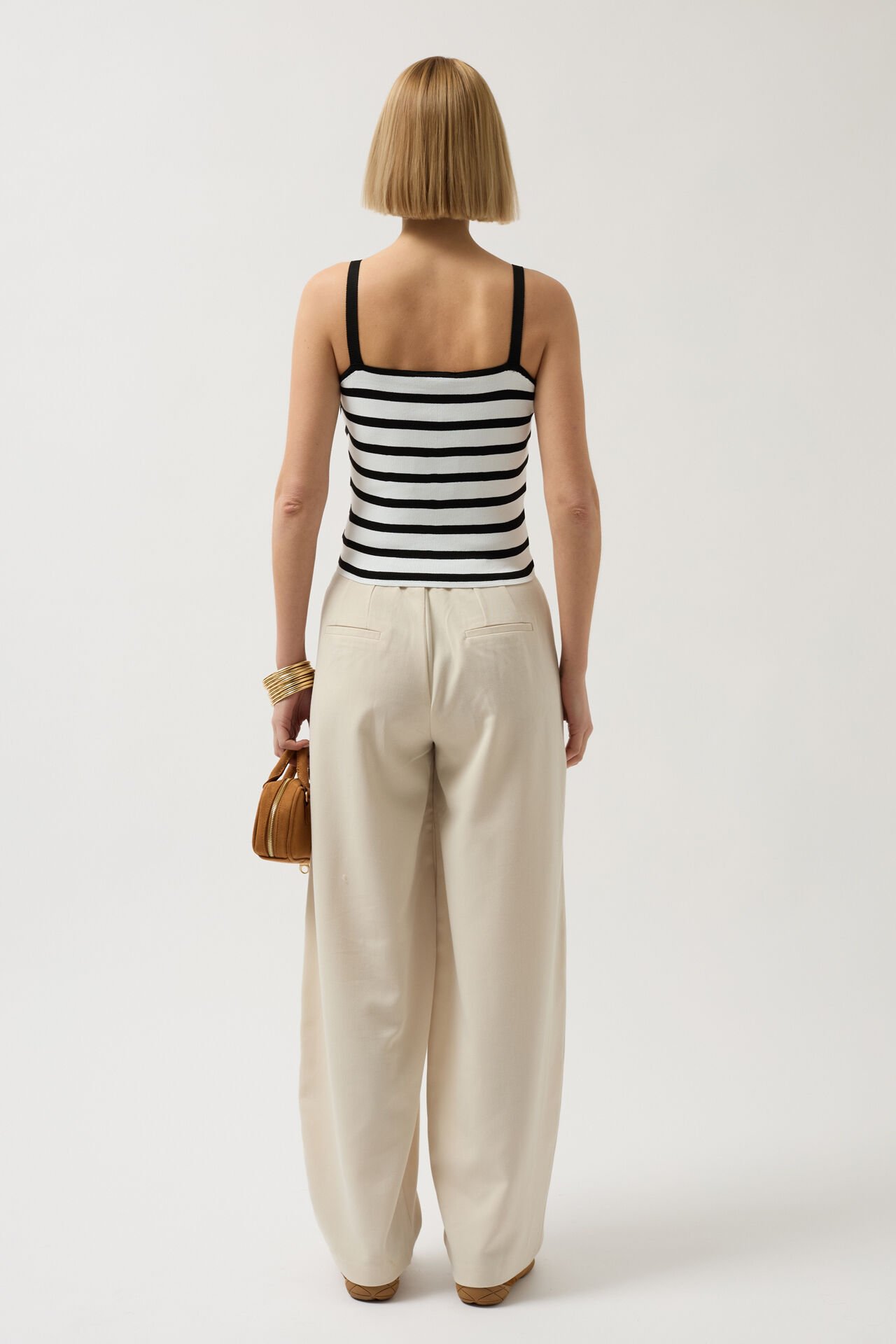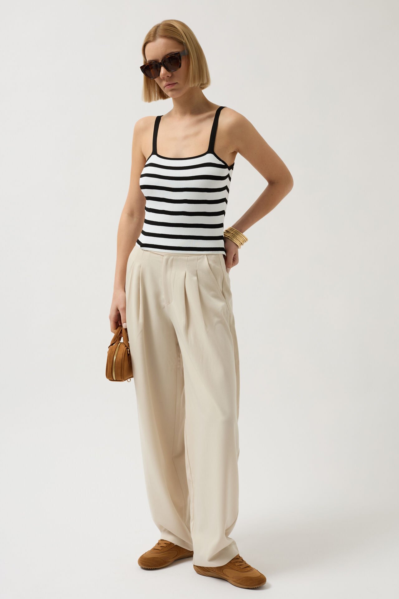 Toptan Çizgili Askılı Beyaz Siyah Bluz