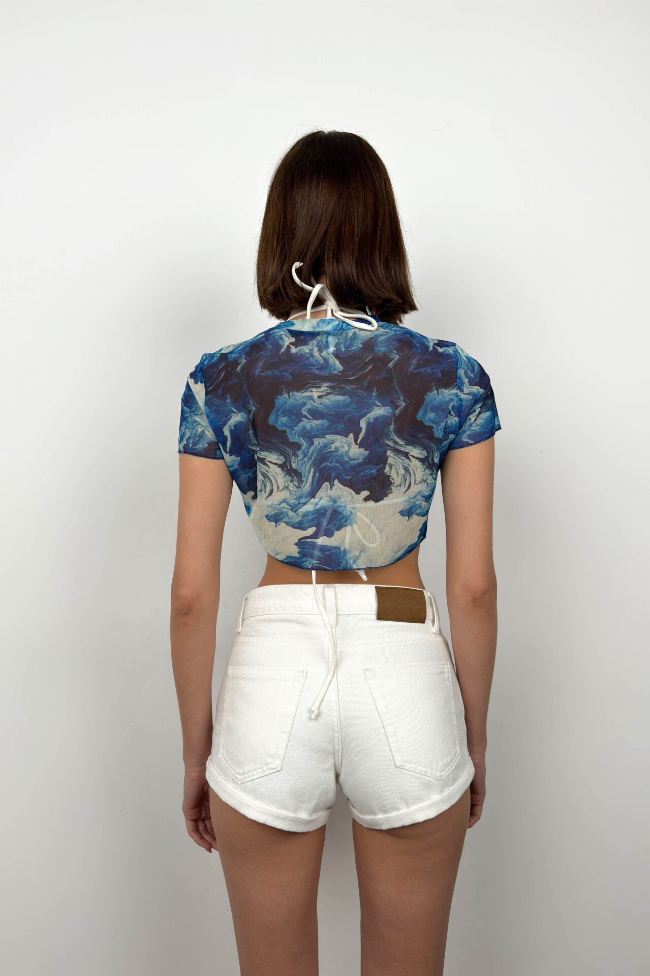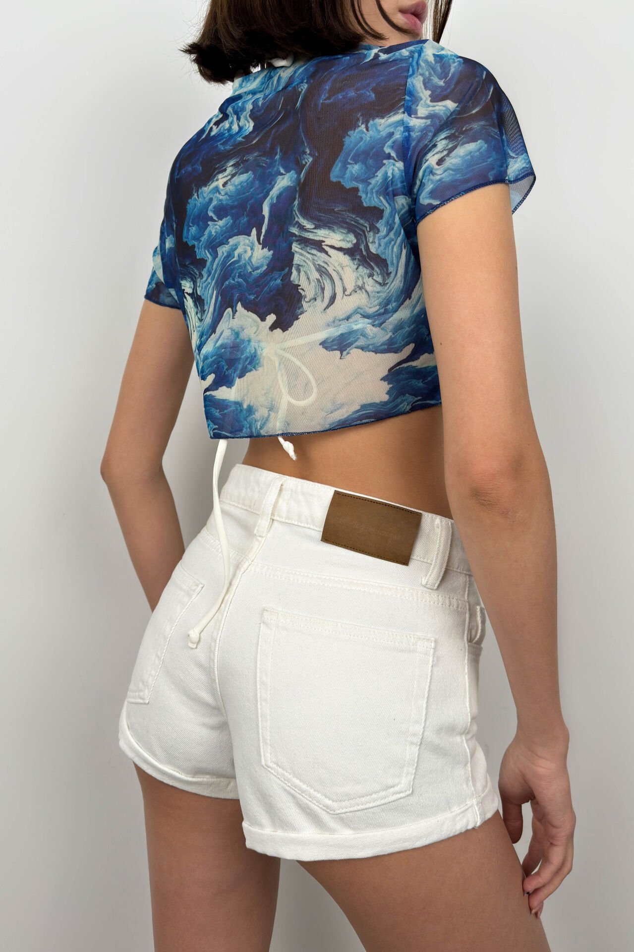 Desenli, Elastanlı, Likralı, Tül, Crop Bluz