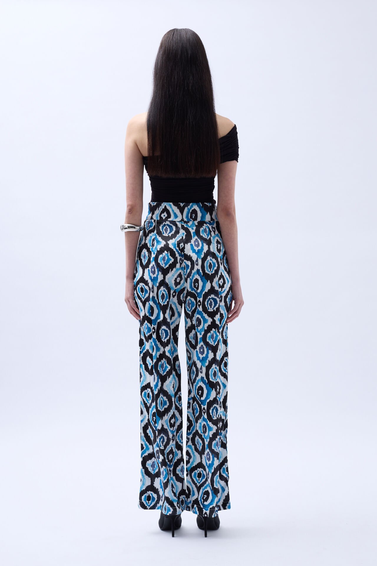 Yüksek Bel, Bol Paça, Geometrik Desenli, Saten Pantolon