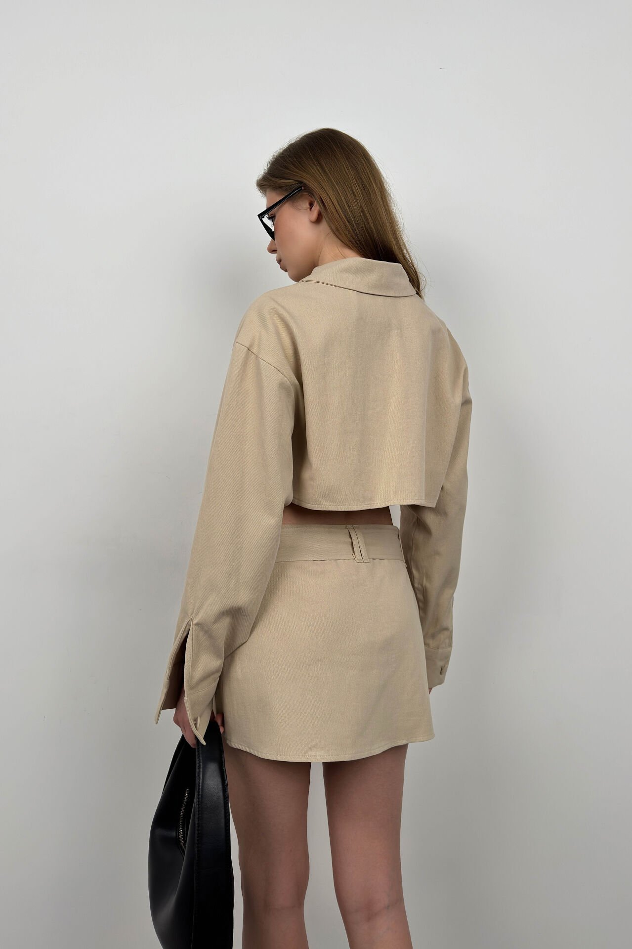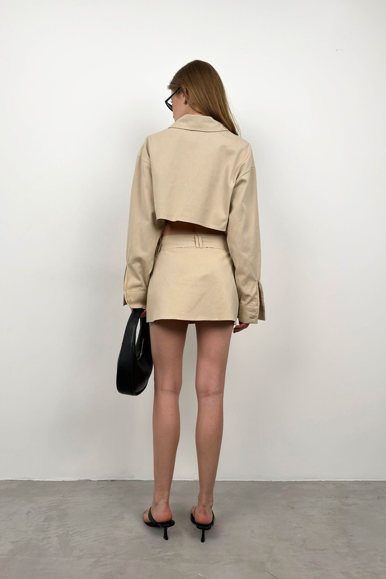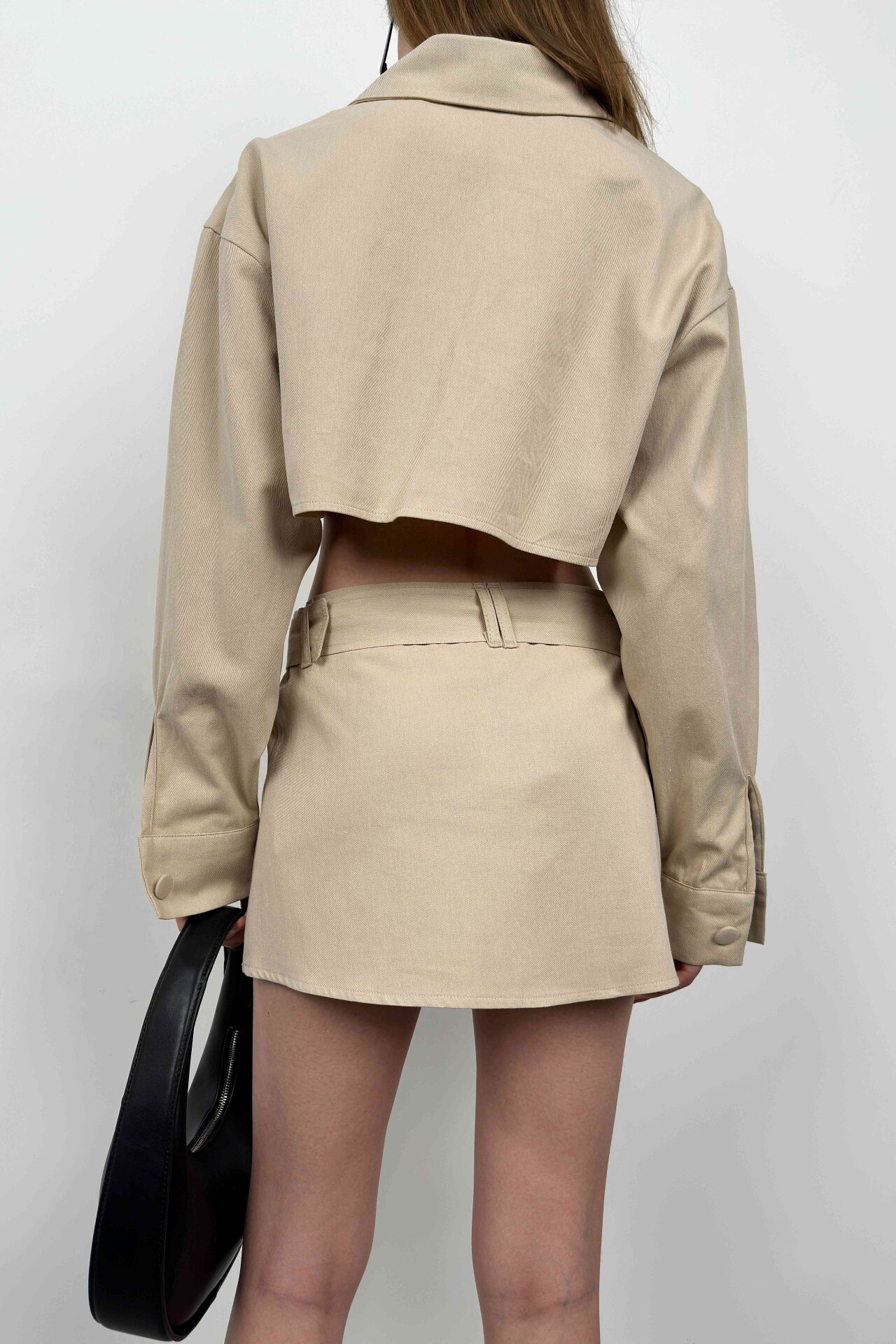 Düğme Detay, Uzun Kollu, Katlamalı Yaka, Tek Düğmeli, Ultra Crop Trençkot Ceket
