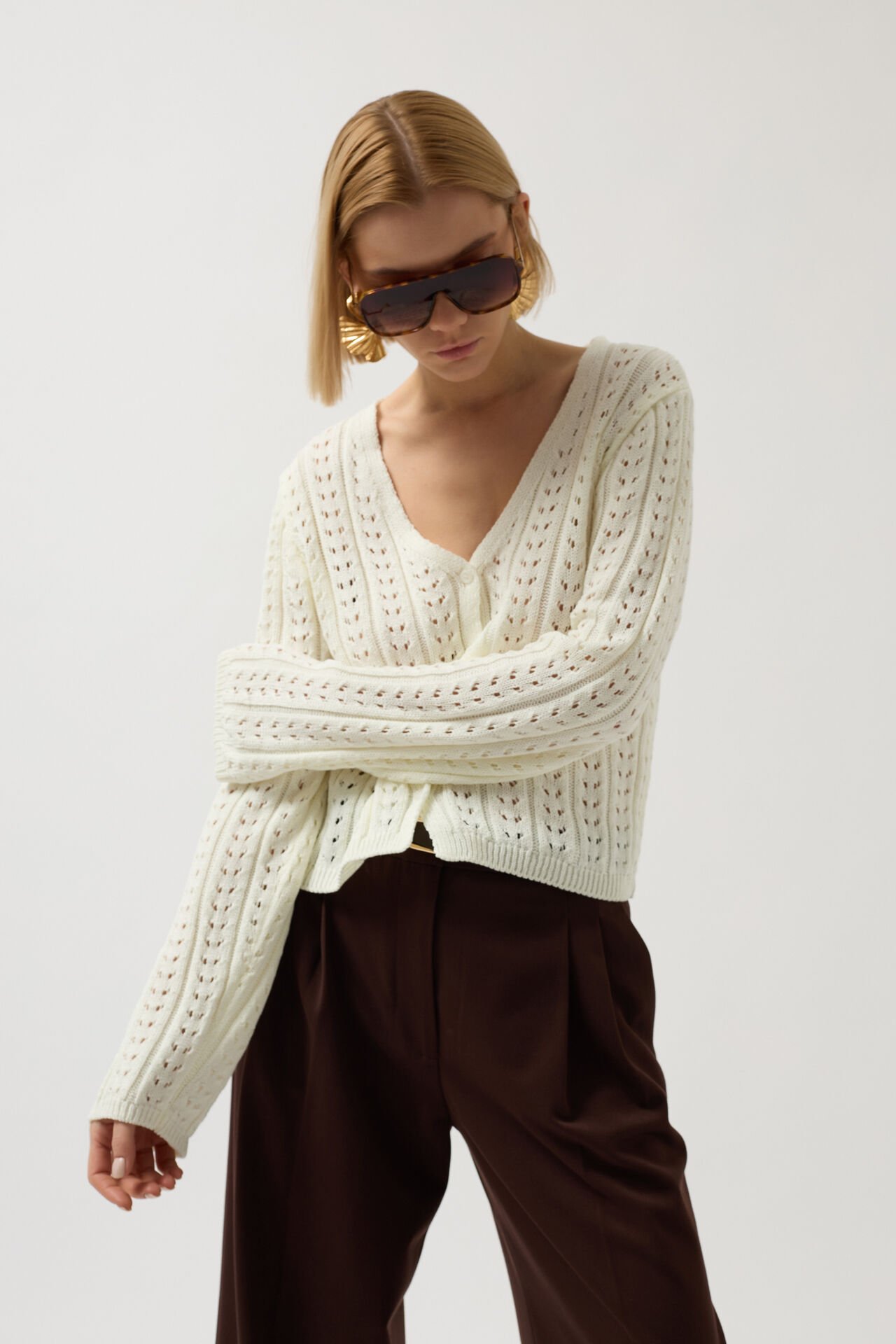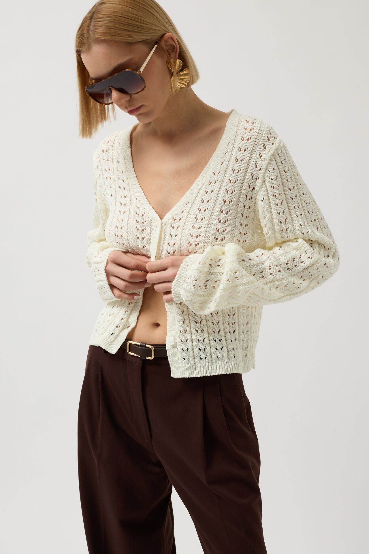 Düğmeli, Triko Örgü, Uzun Kollu, V Yaka, Salaş Triko Hırka