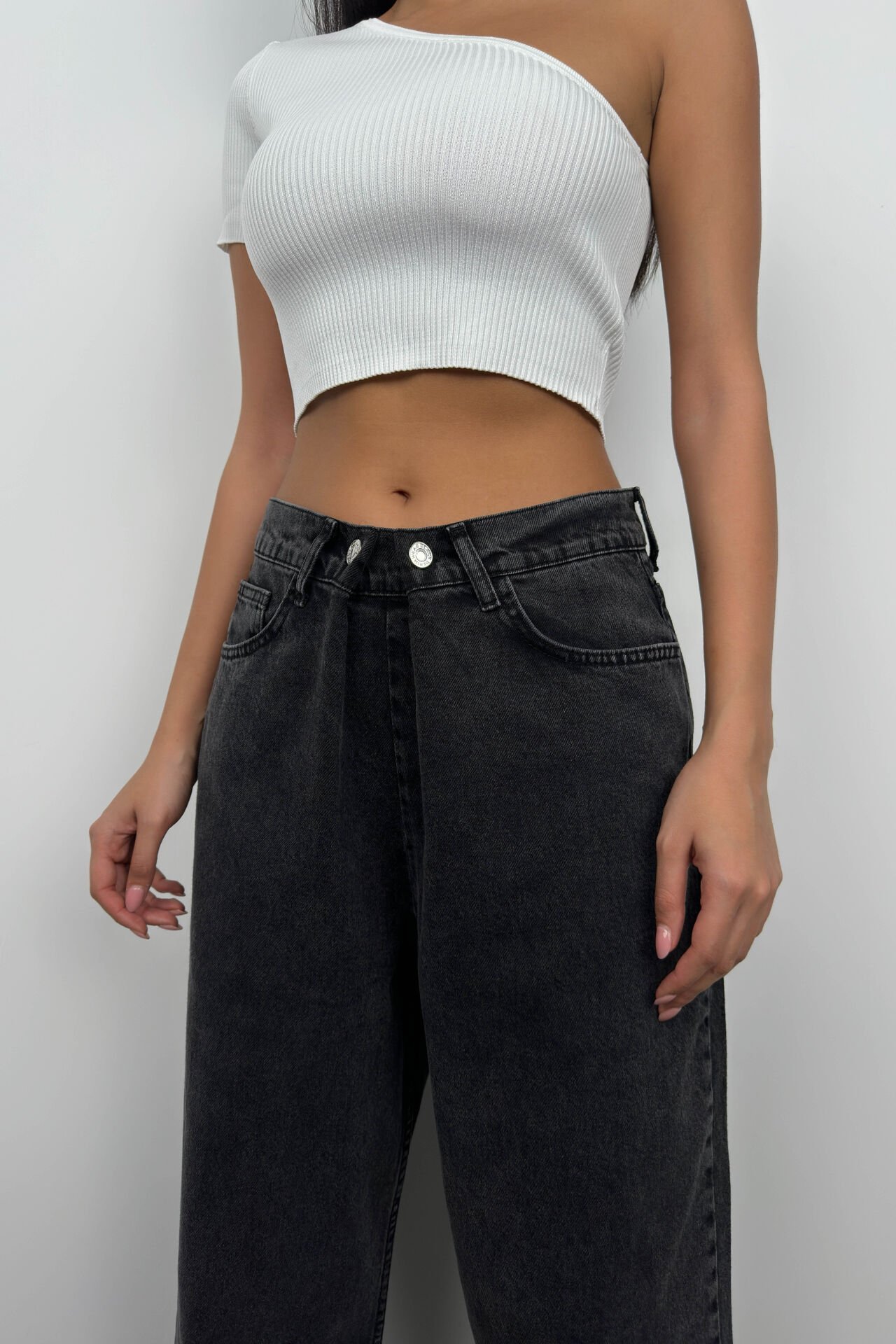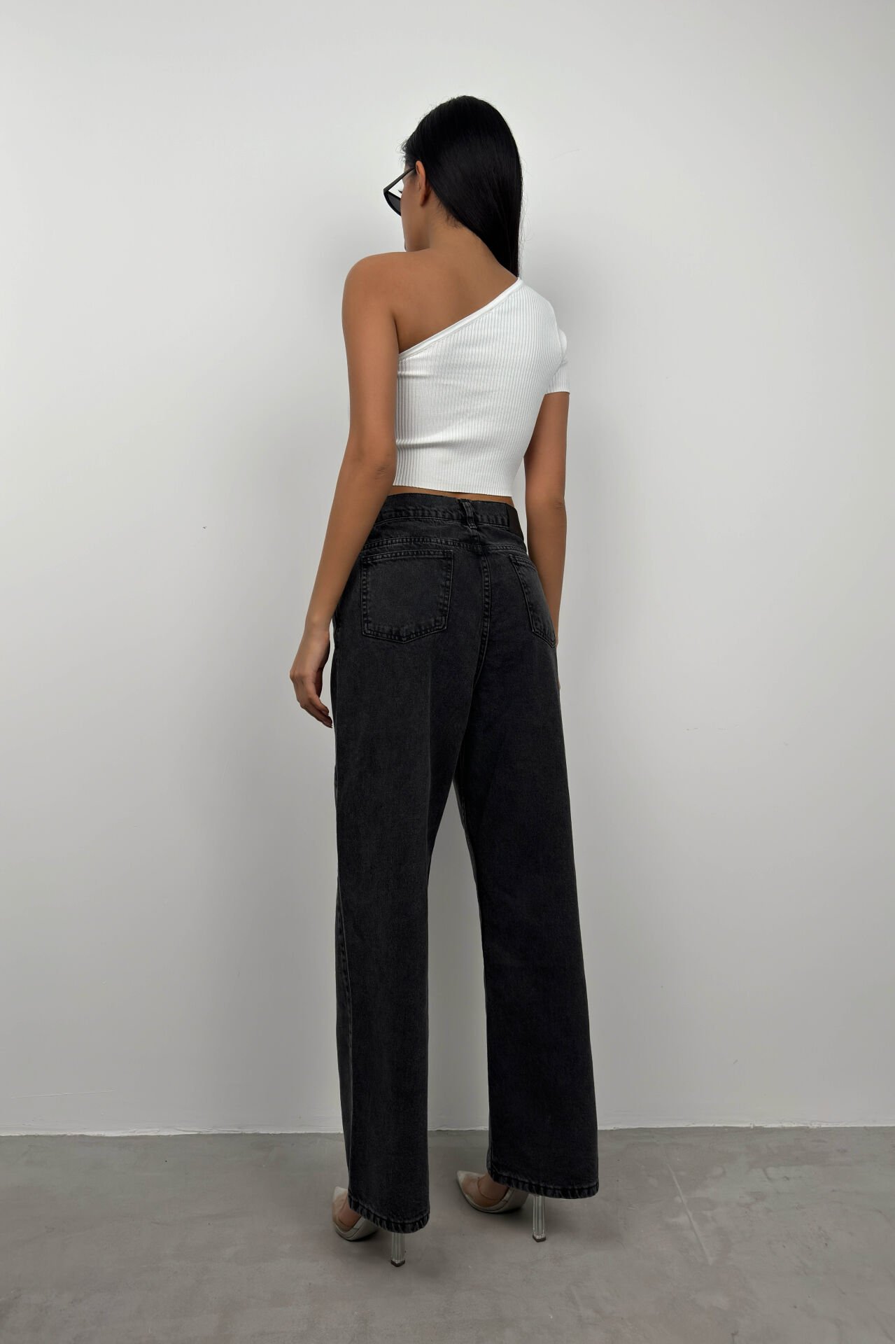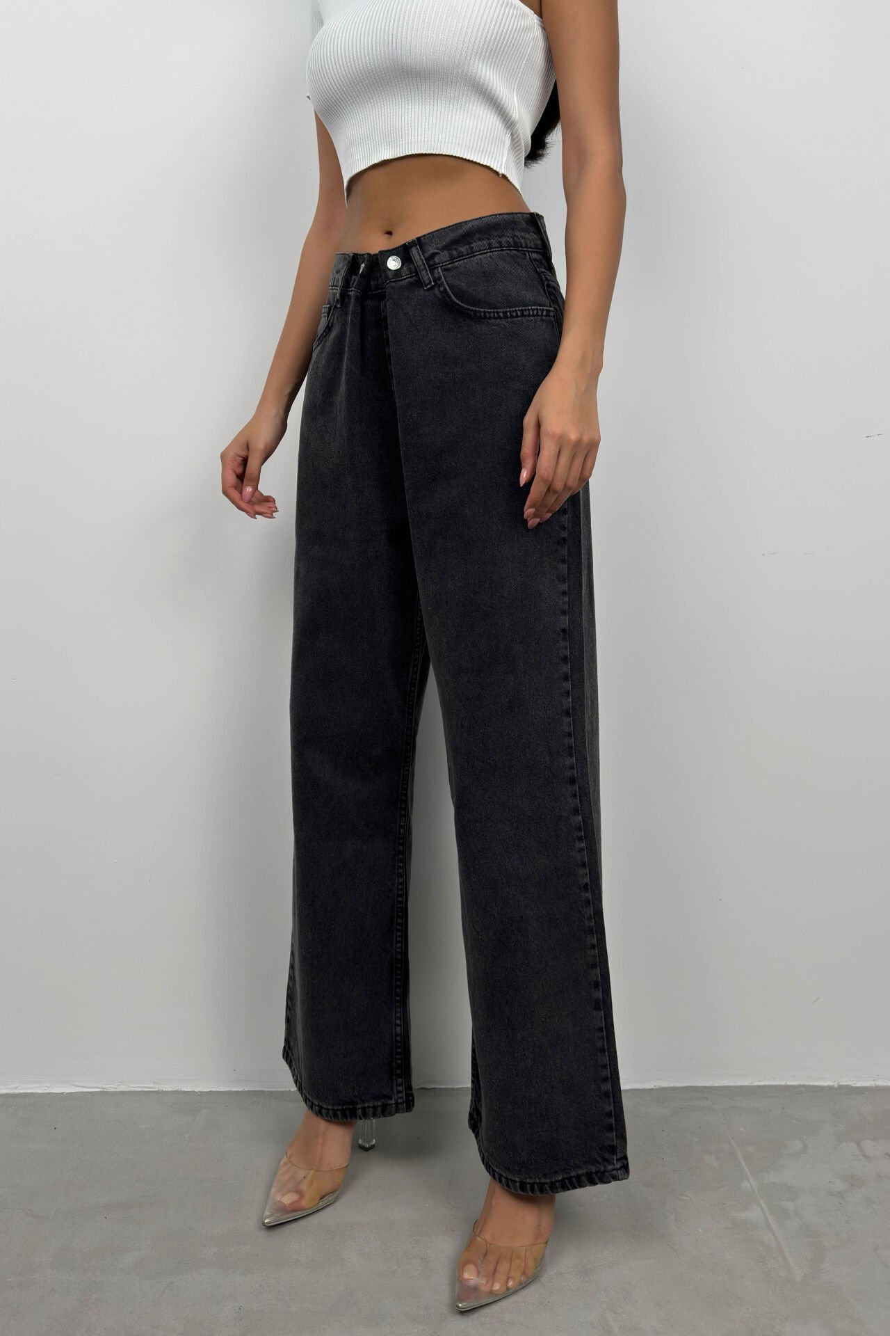 Toptan Düşük Bel Çift Düğmeli Gri Wide Leg Jean