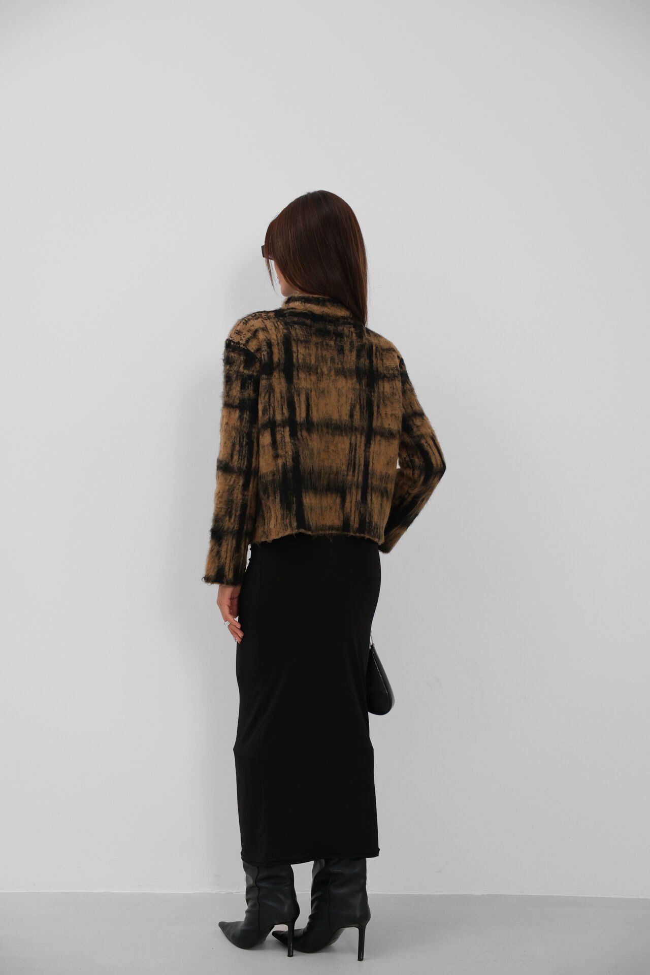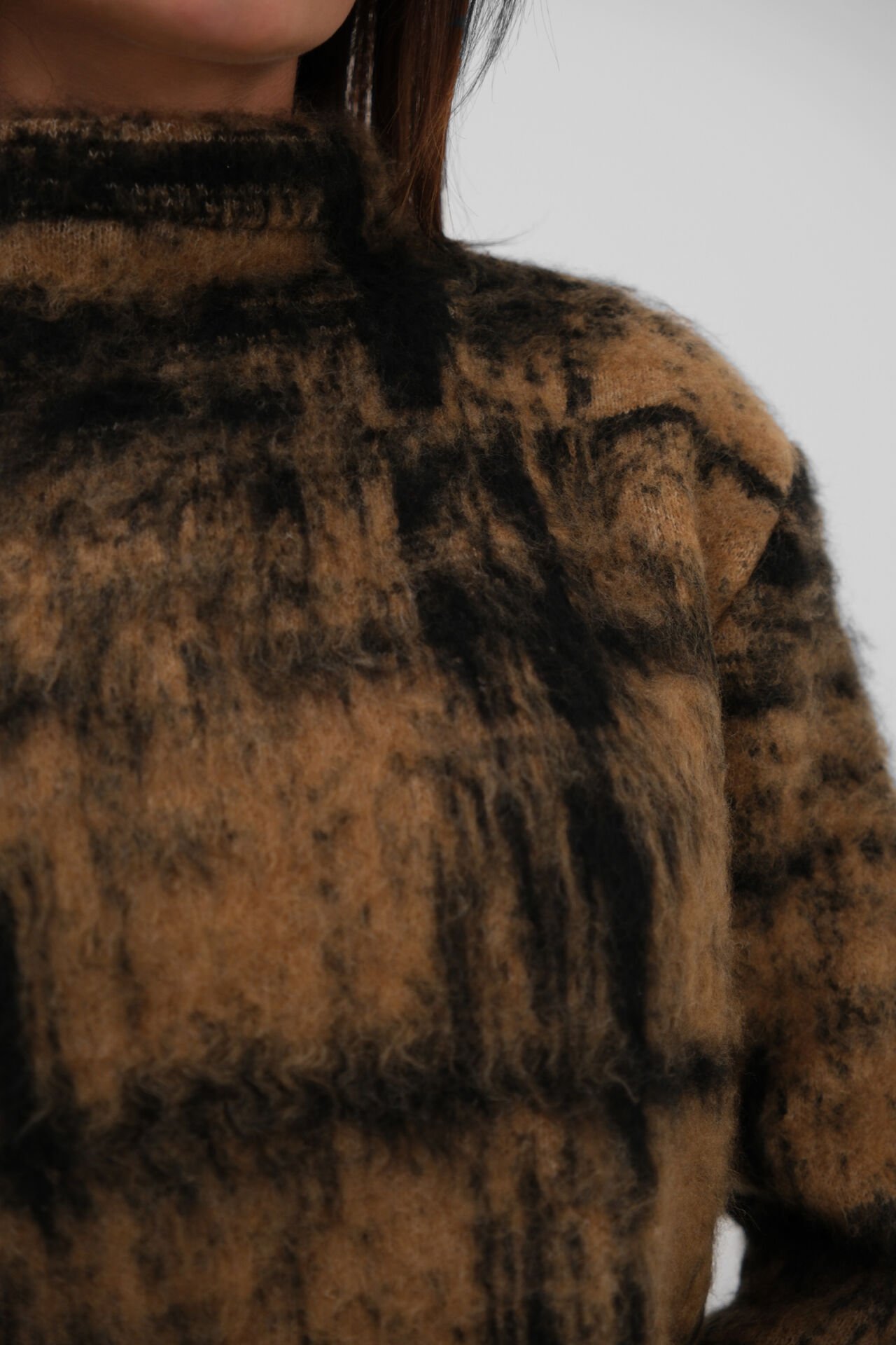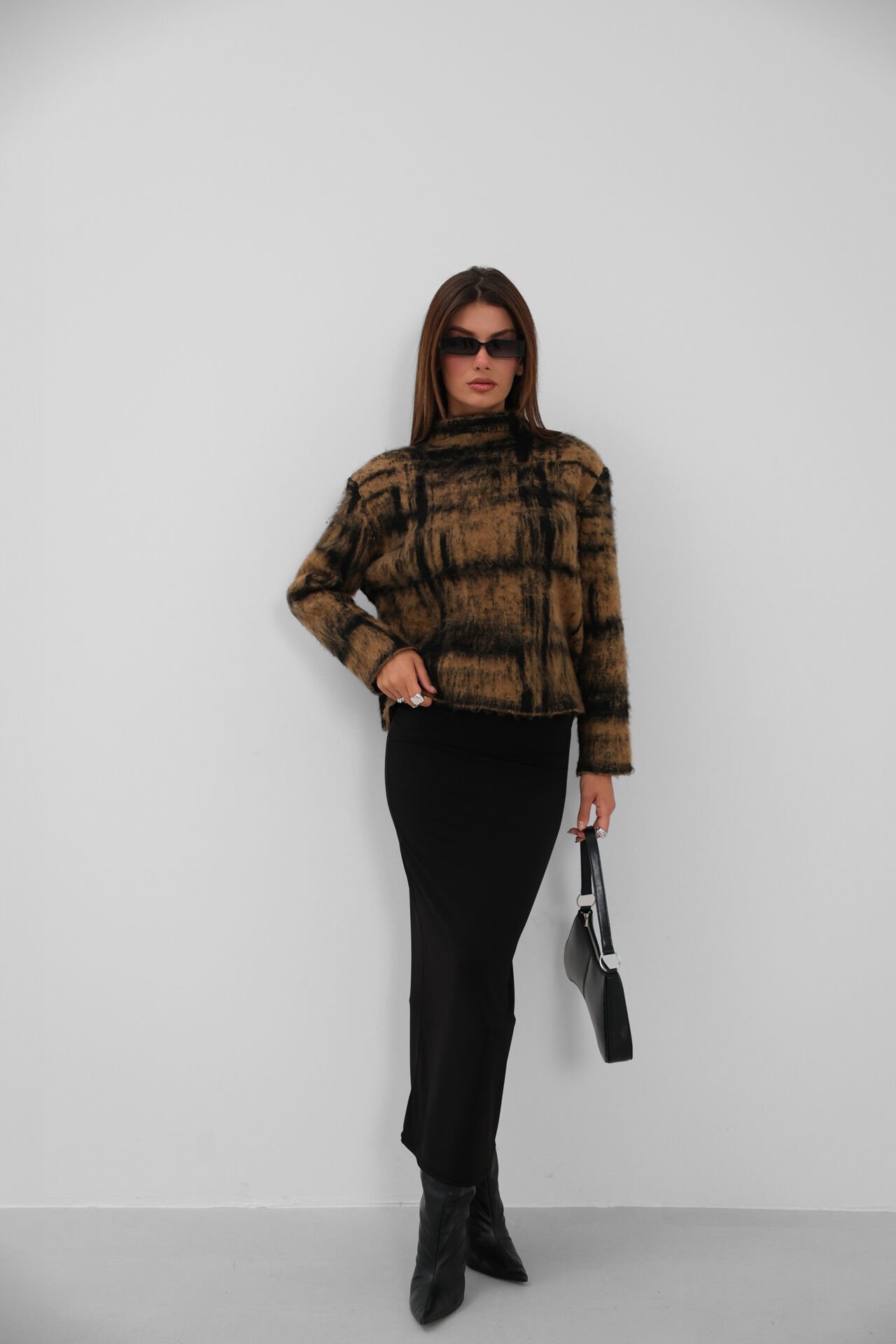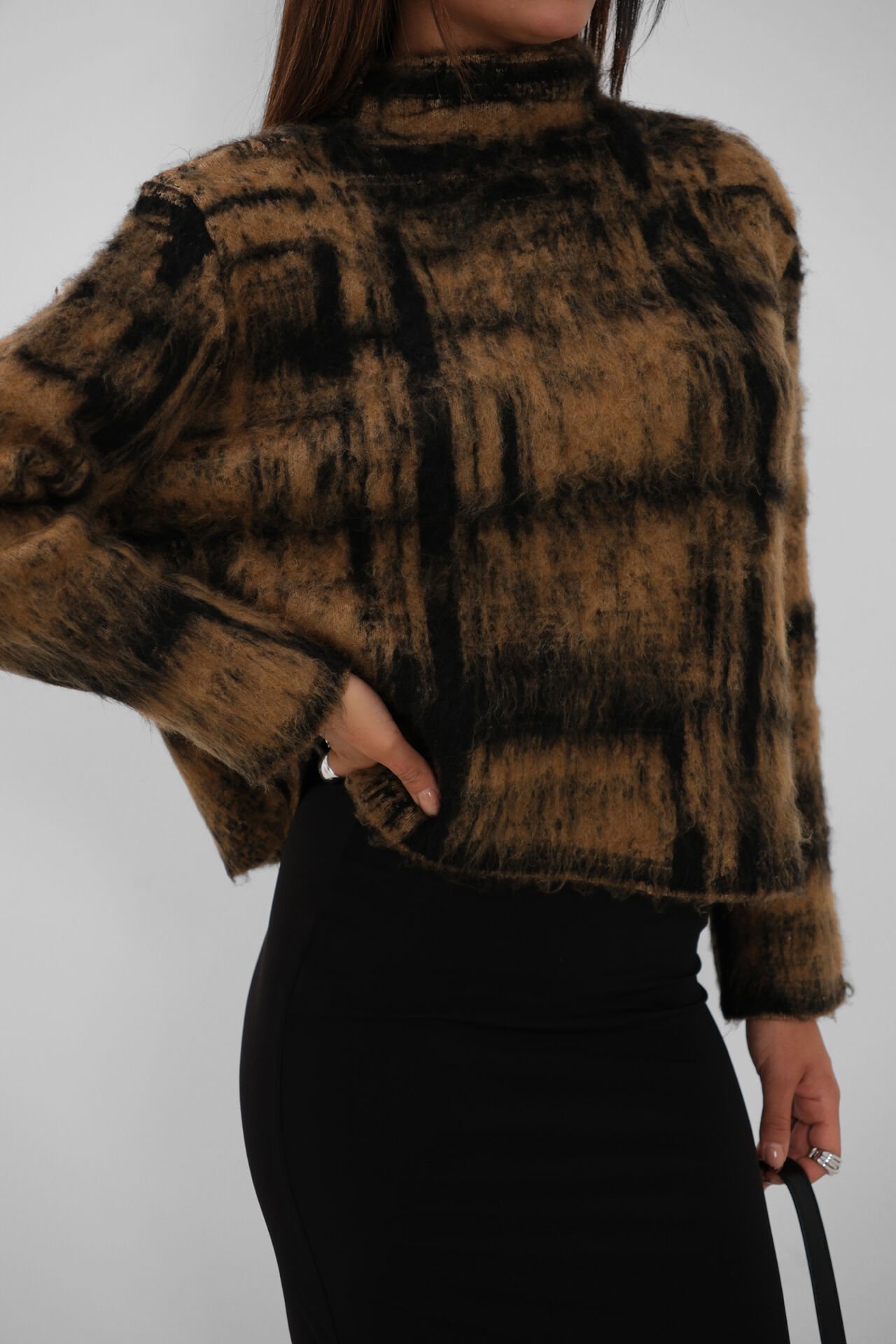 Toptan Ekose Desen Sakallı Kahverengi Kazak