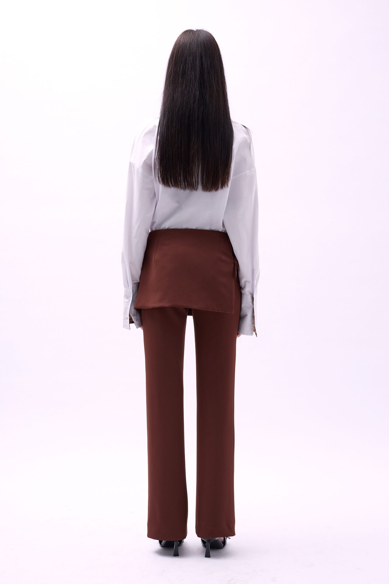 Toptan Etek Detaylı Kemerli Kahverengi Pantolon