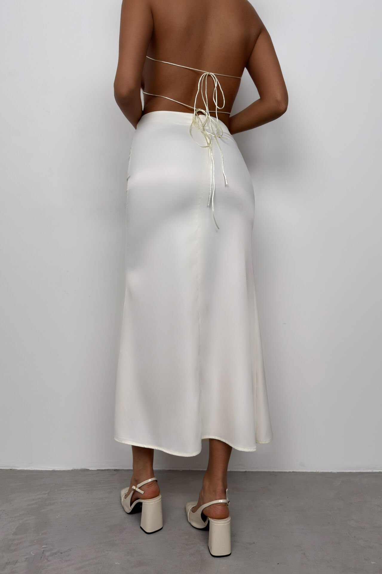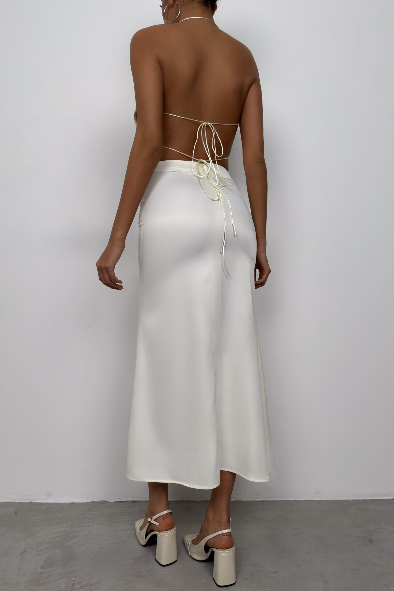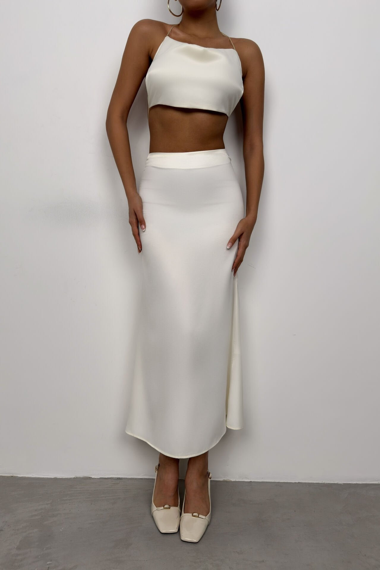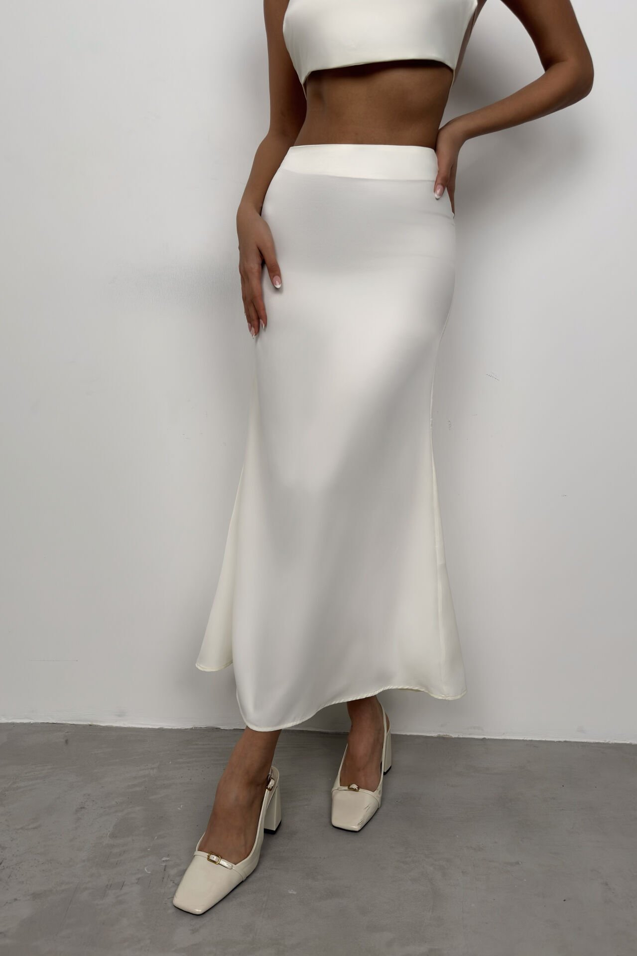 Yüksek Bel, Maxi Boy, Gizli Fermuarlı, Evaze Saten Etek