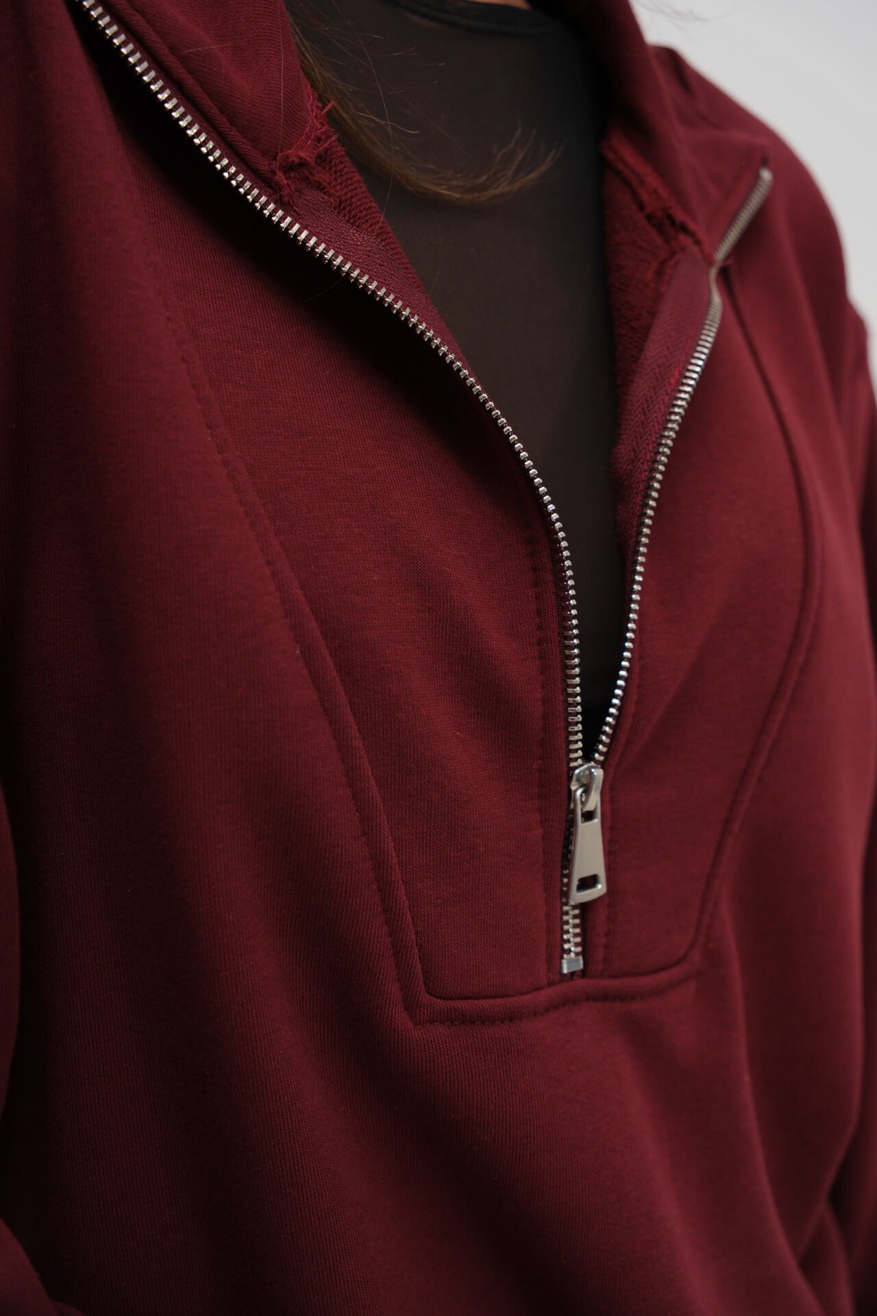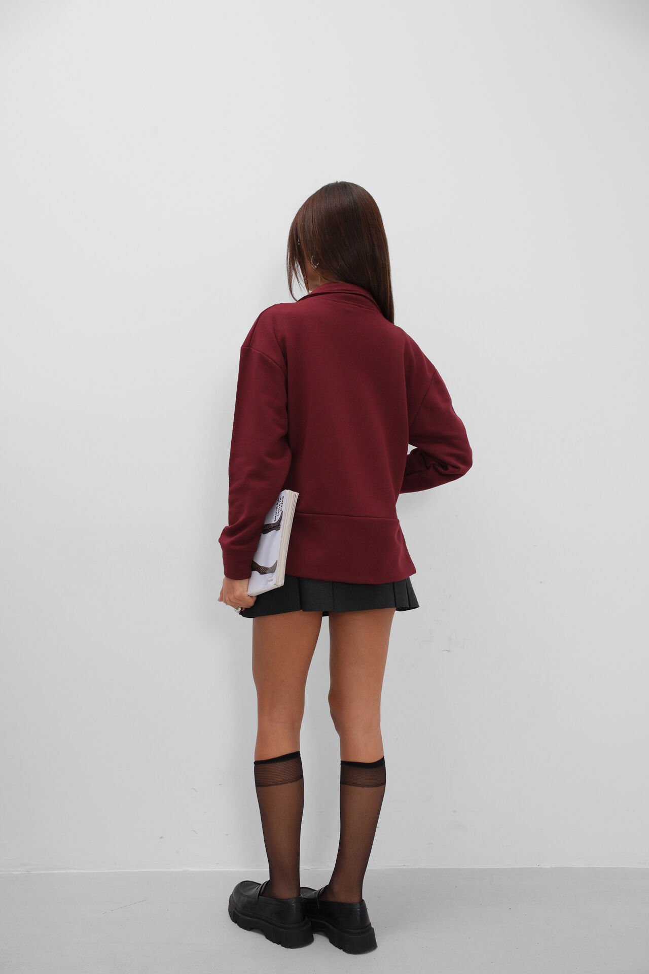 Toptan Fermuar ve Dikiş Detaylı Bordo Sweatshirt